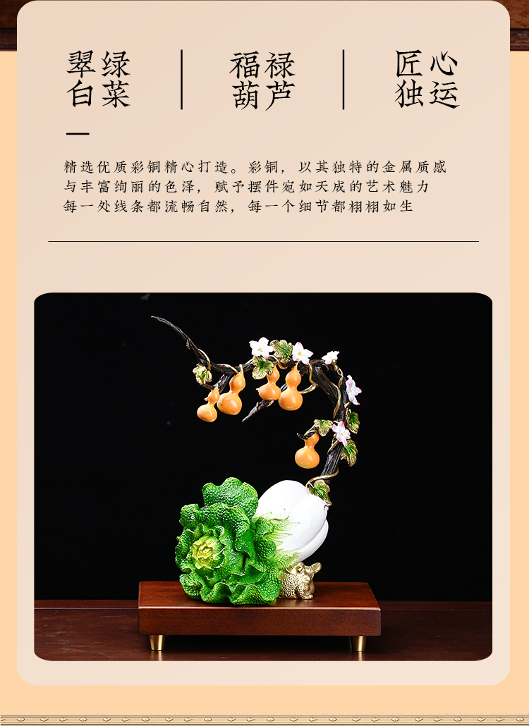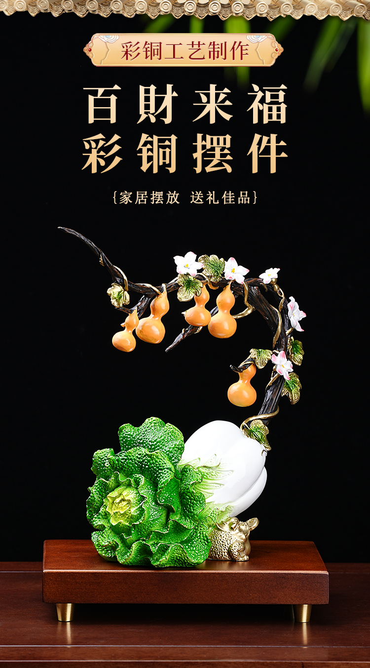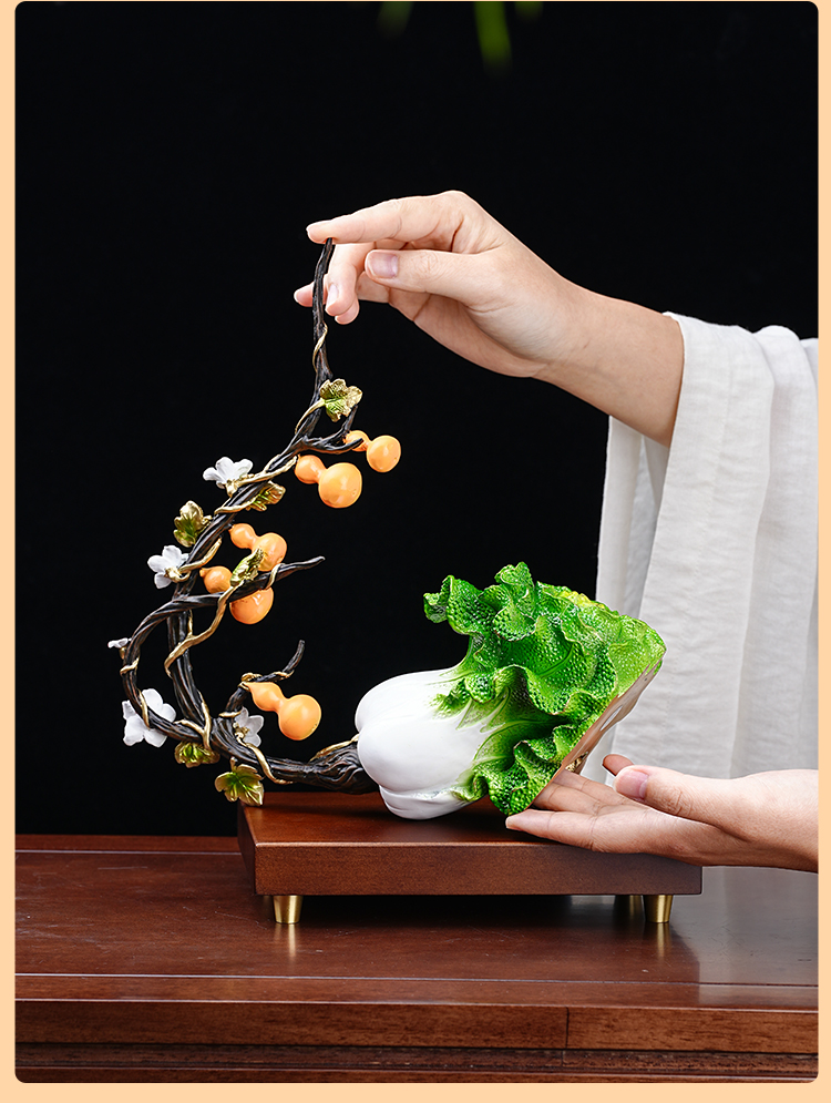 上善若水《纳财五福》白菜摆件葫芦百cai客厅家居装饰品