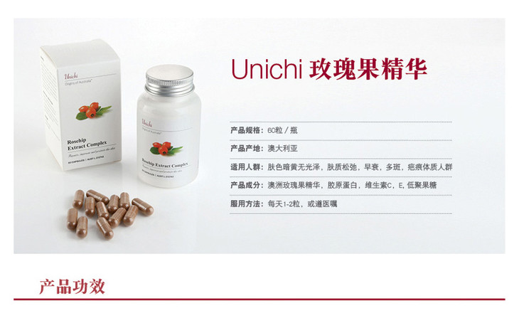 【保税仓】澳洲unichi玫瑰果精华胶囊 补充胶原蛋白 玫瑰果精华60粒 1瓶