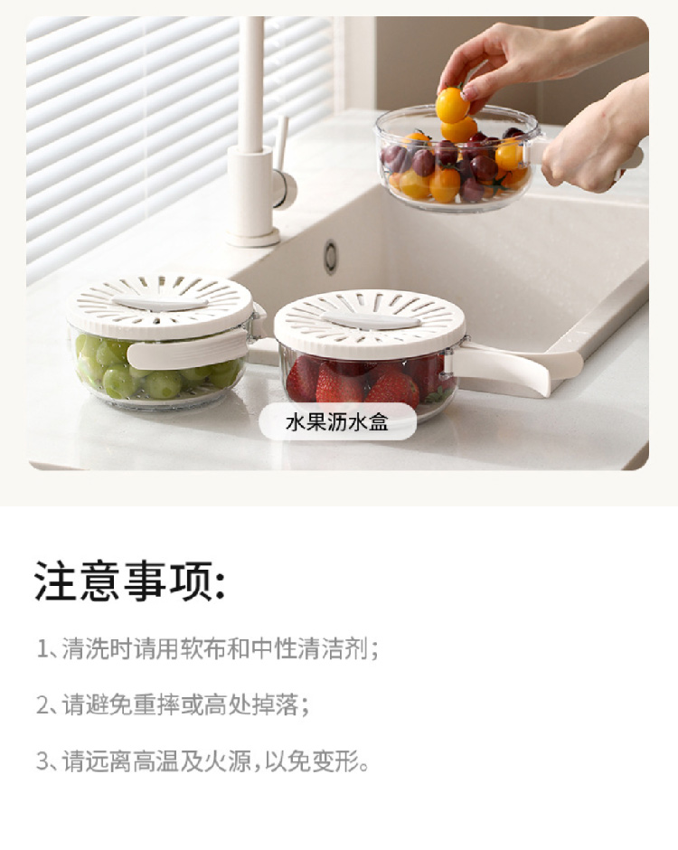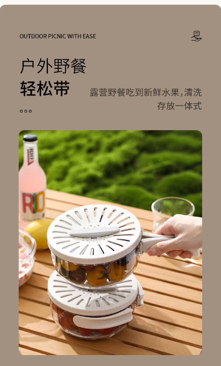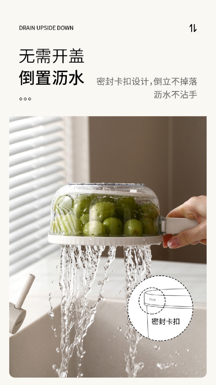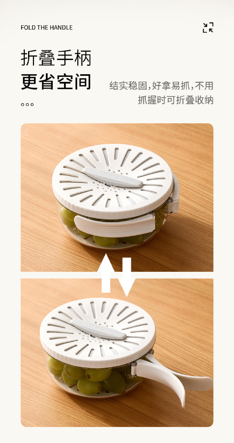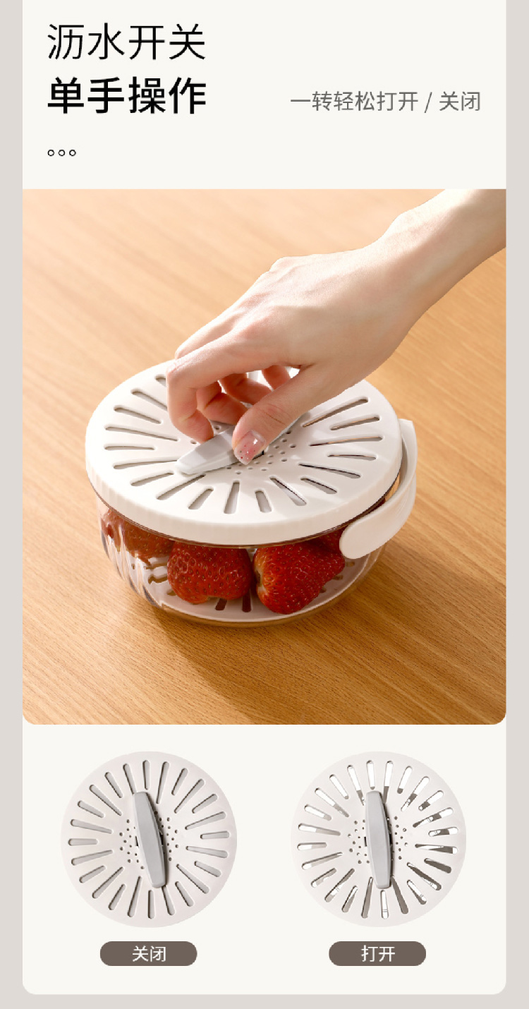 脱水洗菜篮折叠手柄带盖沥水可开关洗水果蔬菜保鲜盒沥水碗