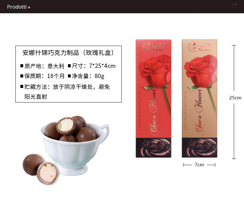 意大利安娜什锦巧克力金色玫瑰/红色玫瑰礼盒80g 一盒6颗两种口味搭配独立包装 044147/044146