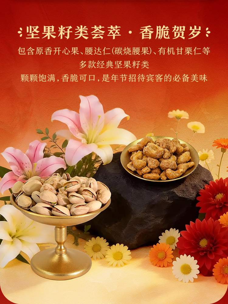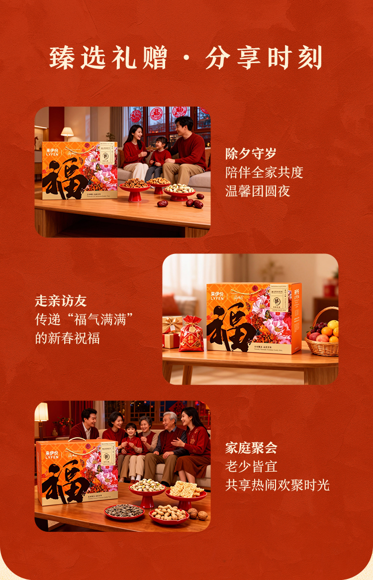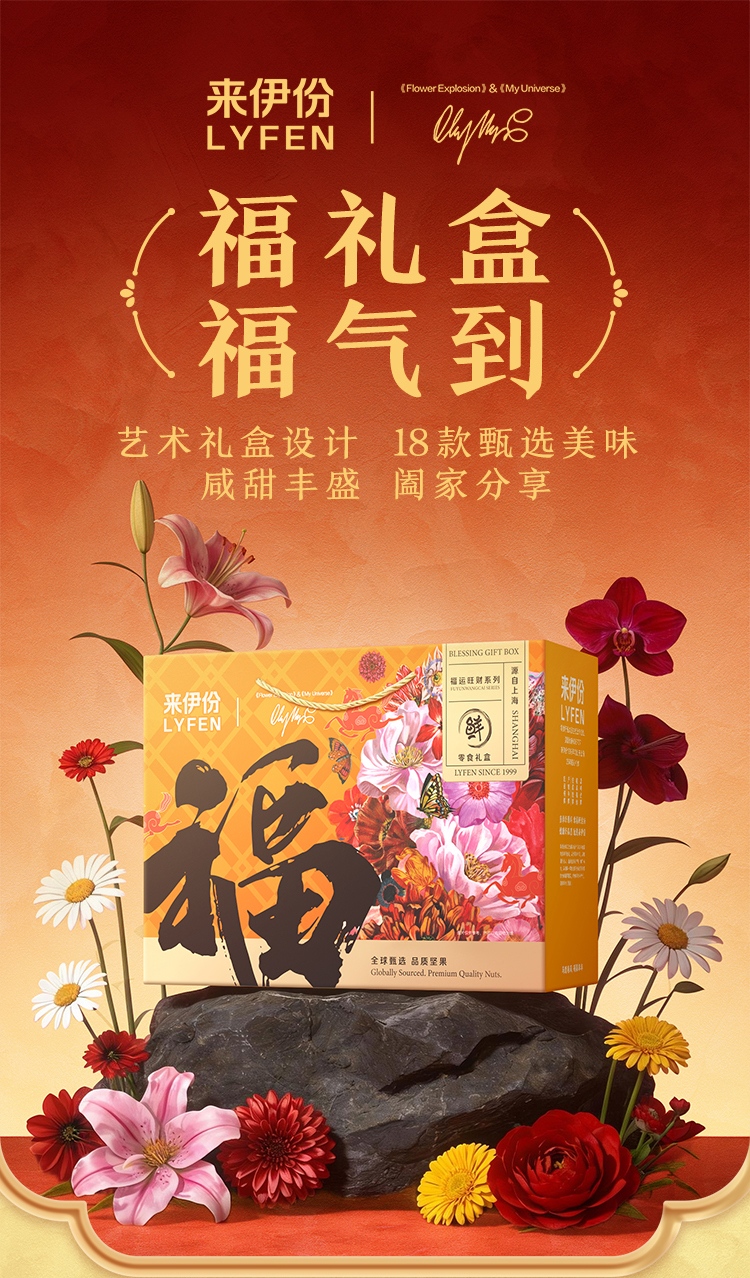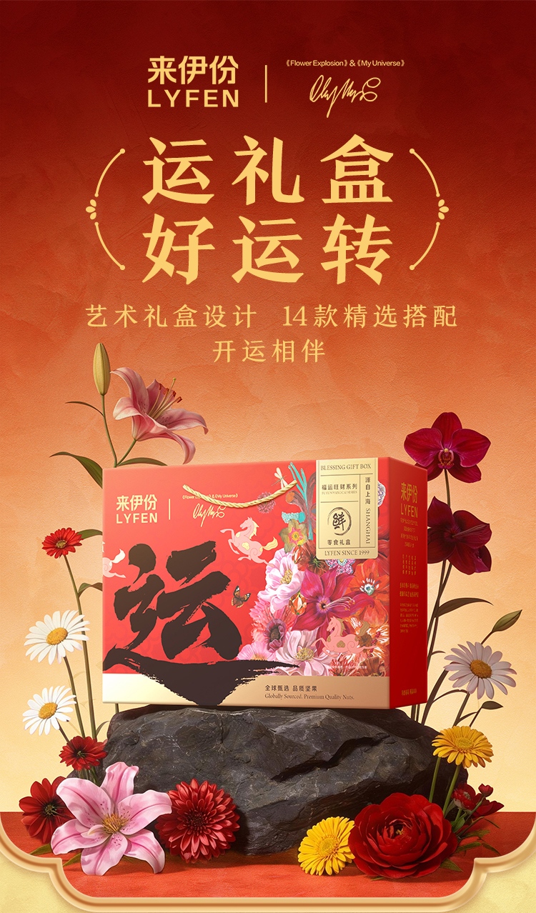 【来伊份 福运零食礼盒】 红金艺术礼盒+马年专属设计 坚果肉脯果干全cover 从脆到糯从咸到甜