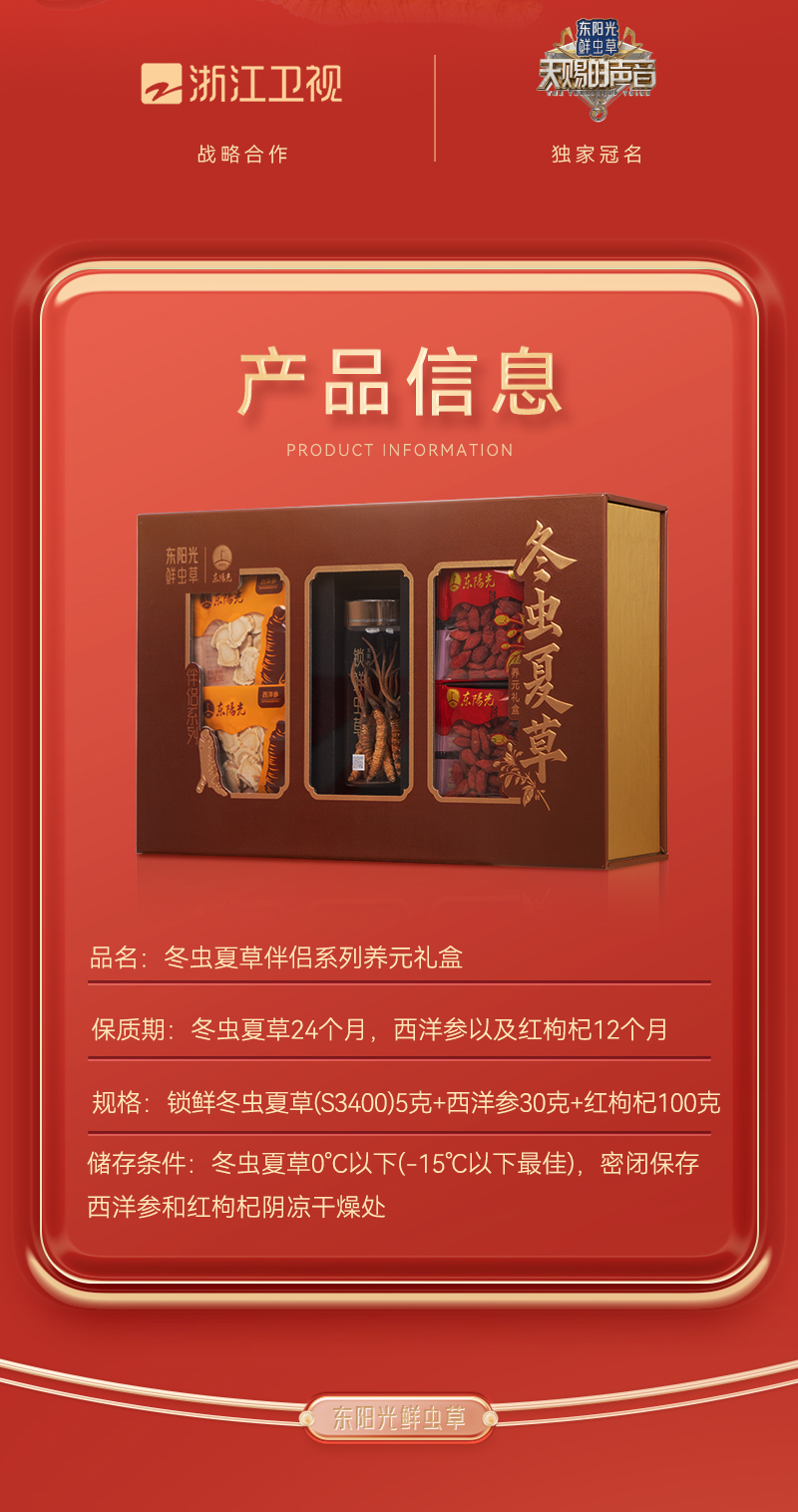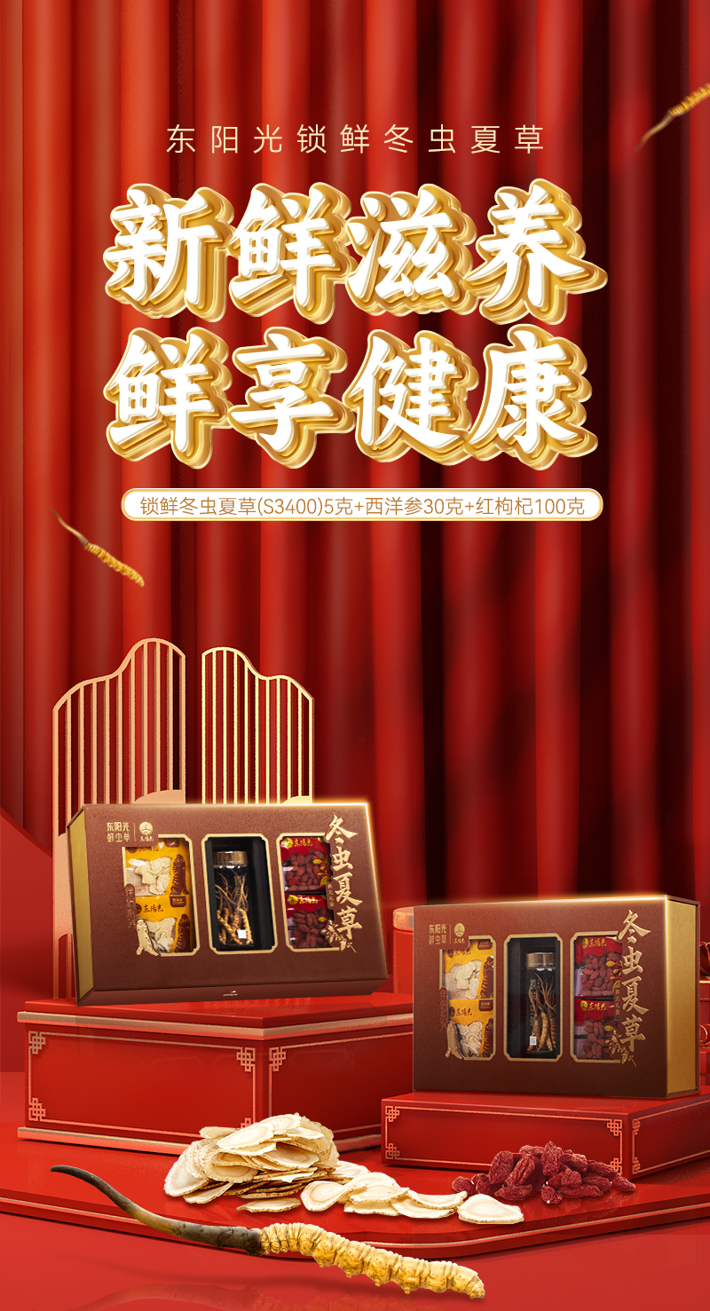【养元礼盒】东阳光冬虫夏草 锁鲜虫草 (S3400)5克+西洋参30克+红枸杞100克【锁鲜虫草 滋补礼盒】
