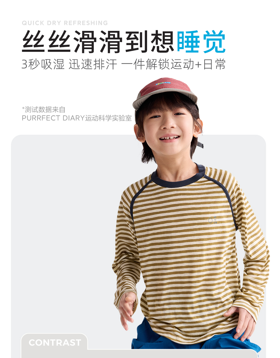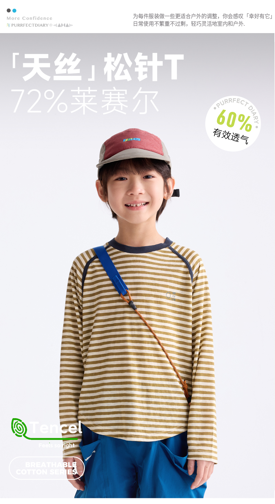 fx-咕噜日记儿童【松针天丝T恤】撞色条纹T恤更透气丝滑PCTX2640