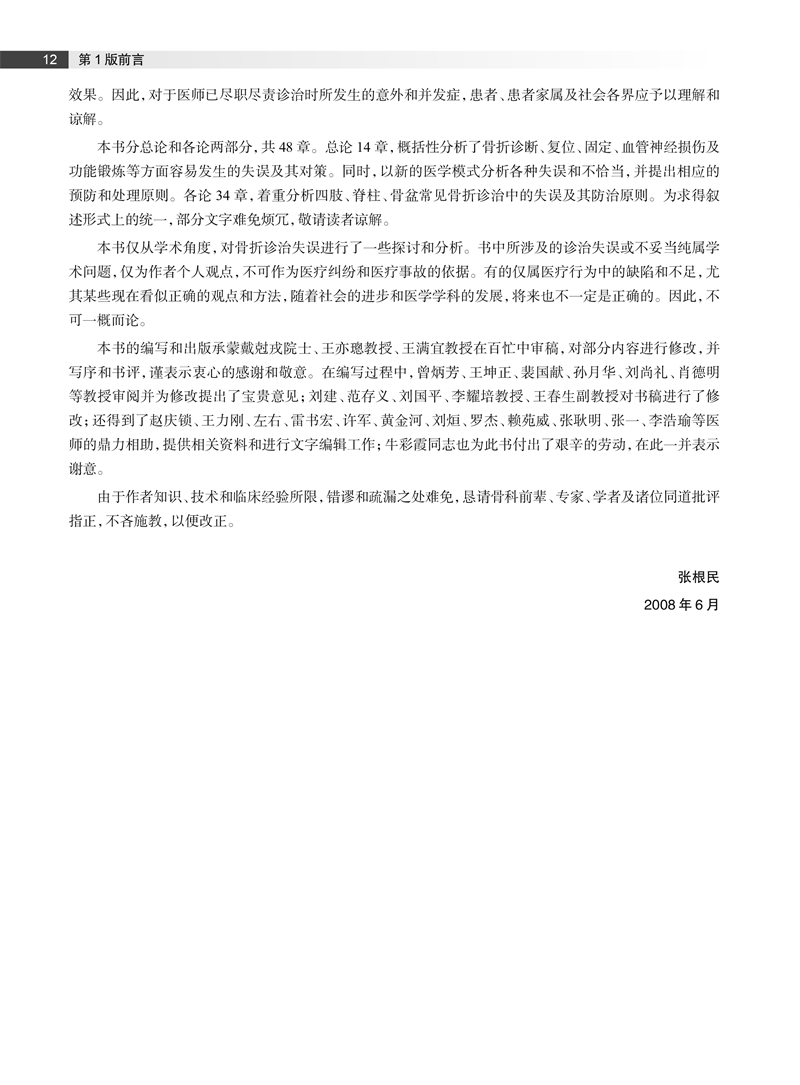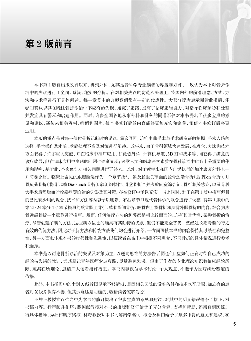 本书第2版对近年来骨科领域在一些新理念、新方法和新技术等方面的许多重大突破,如微创外科、计算机导航、3D打印技术等,在临床应用中出现的问题进行补充,以体现本书修订后的时代性和先进性。使读者能够明确认识其在既往诊治骨折中不应有的失误,拓宽思路,提高临床思维能力,起到了警示和启迪,对临床处理并发症具有积极的指导作用。因临床医学的探索性、发展的局限性和疾病的复杂性,任何疾病的诊治过程中都有可能出现误诊误治,给患者造成身心伤害。本书作者张根民教授工作几十年来收集了大量的骨折诊治失误病例和资料,并结合临床经验和长期参加医疗纠纷鉴定工作的经验,参阅大量国内外文献编写本书,结合骨科最新进展进行修订,可加强医师对诊治失误的重视,提高青年骨科医师的骨折诊疗水平。