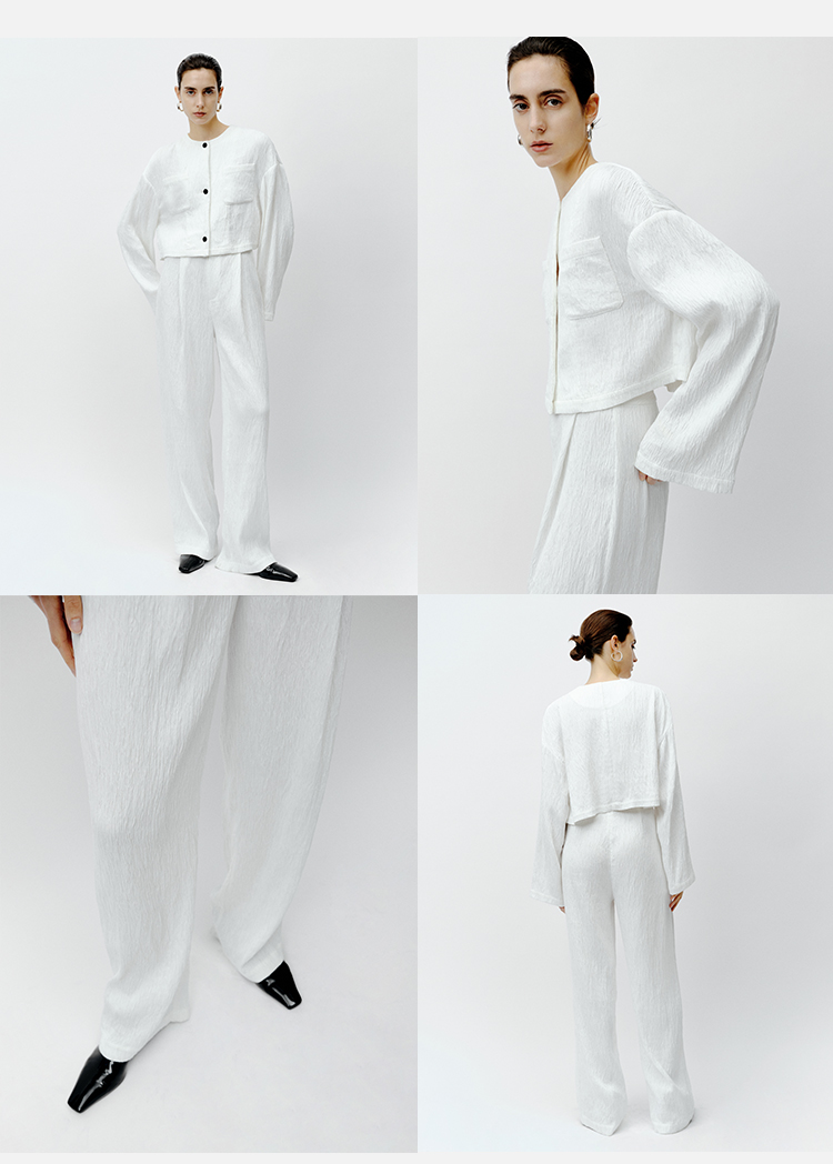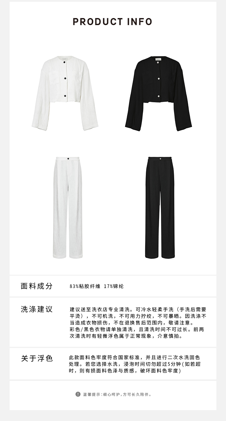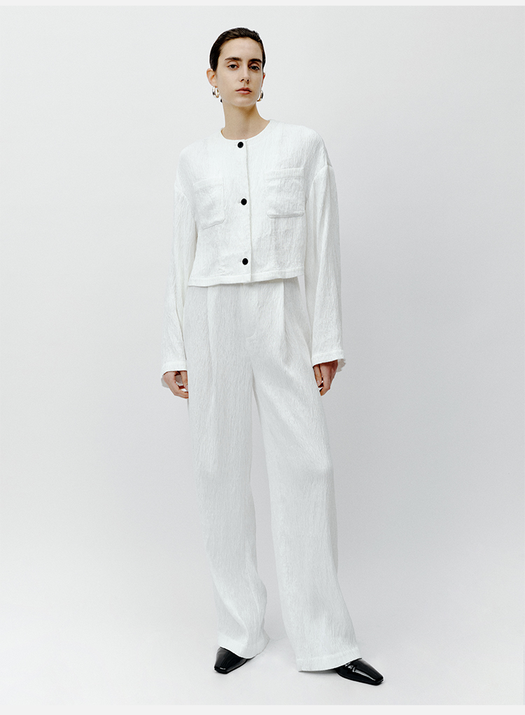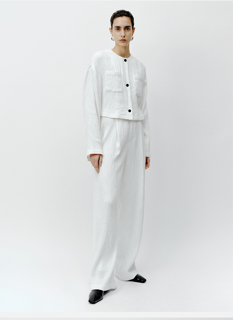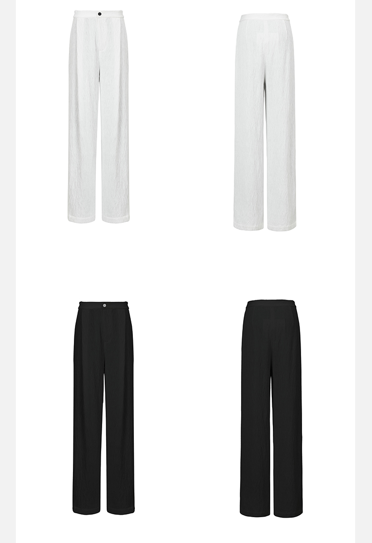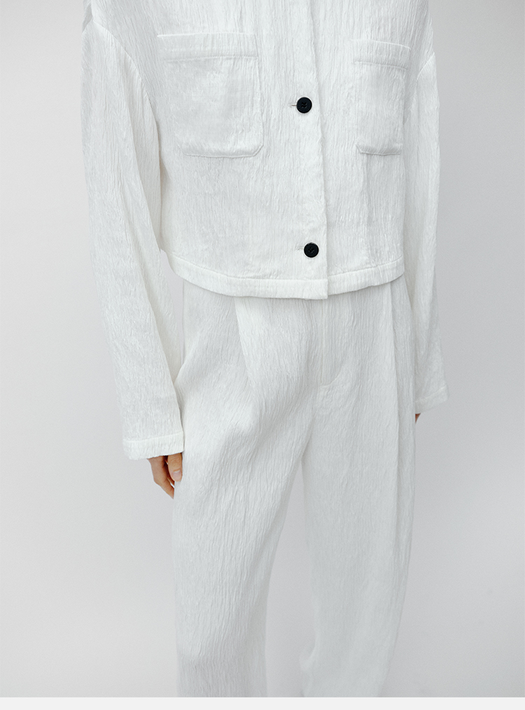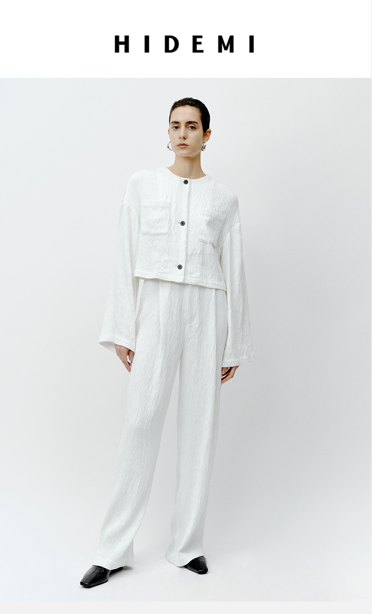 HIDEMI 极简褶皱垂顺感纽扣口袋外套/长裤套装 黑色/白色