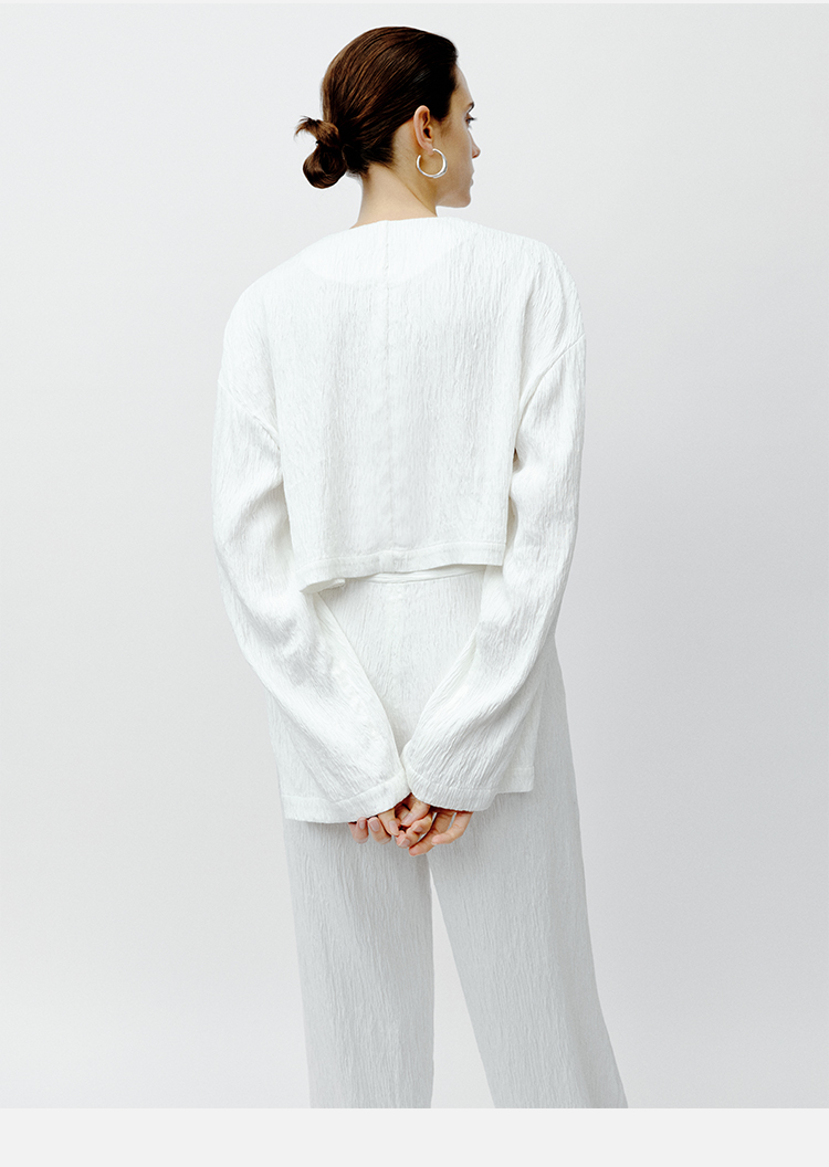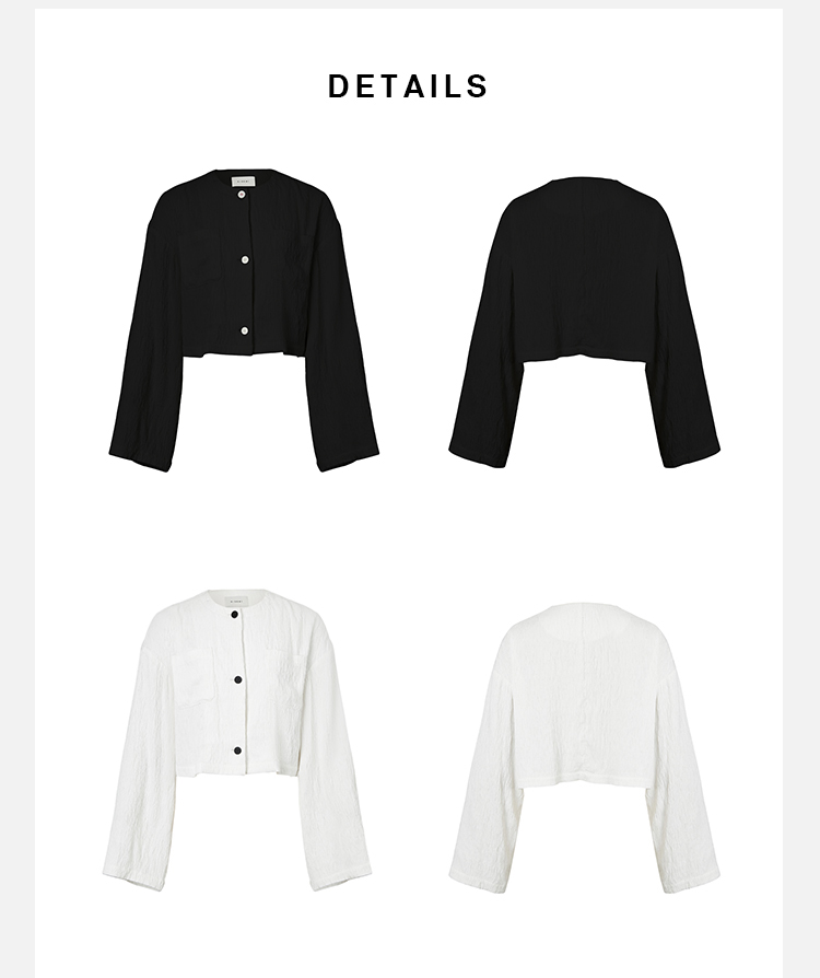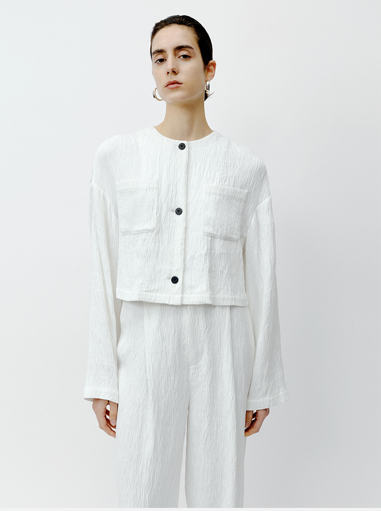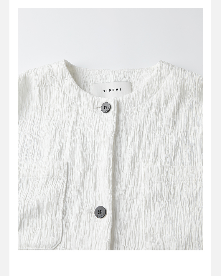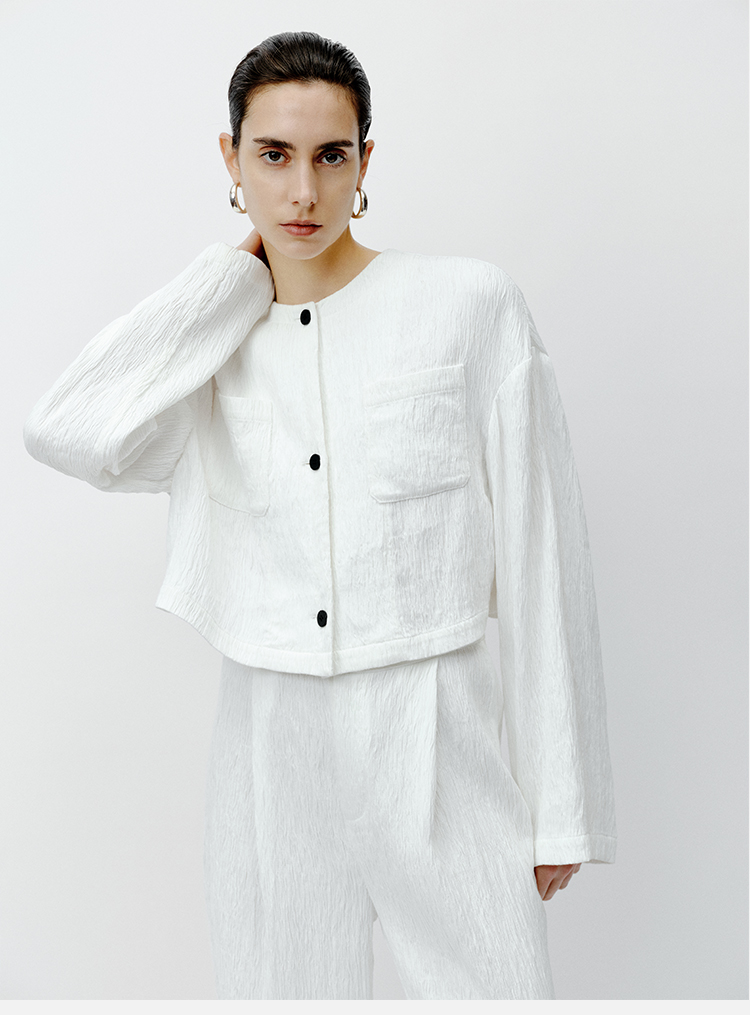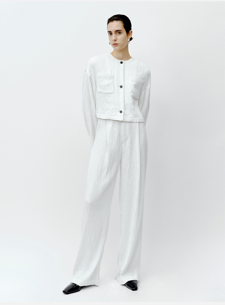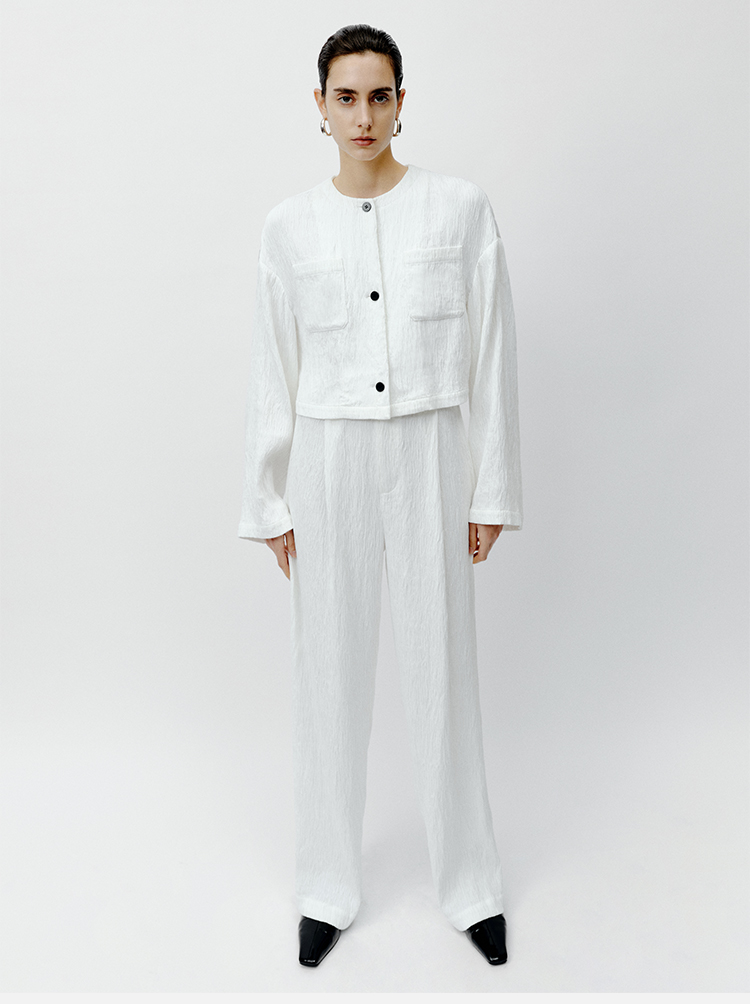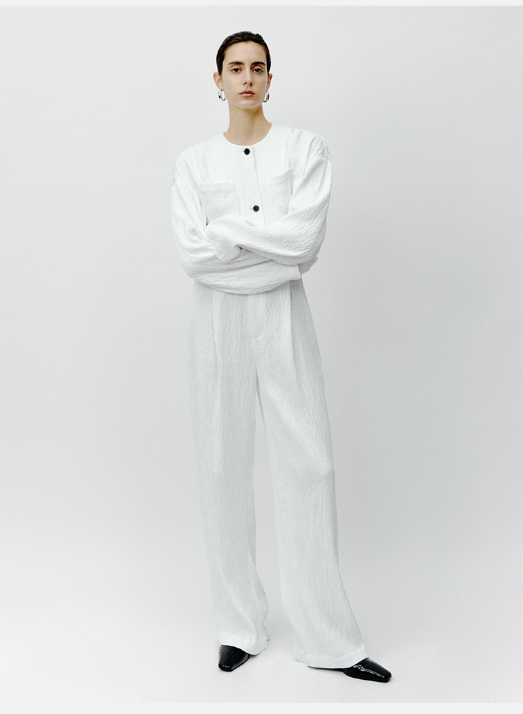 HIDEMI 极简褶皱垂顺感纽扣口袋外套/长裤套装 黑色/白色