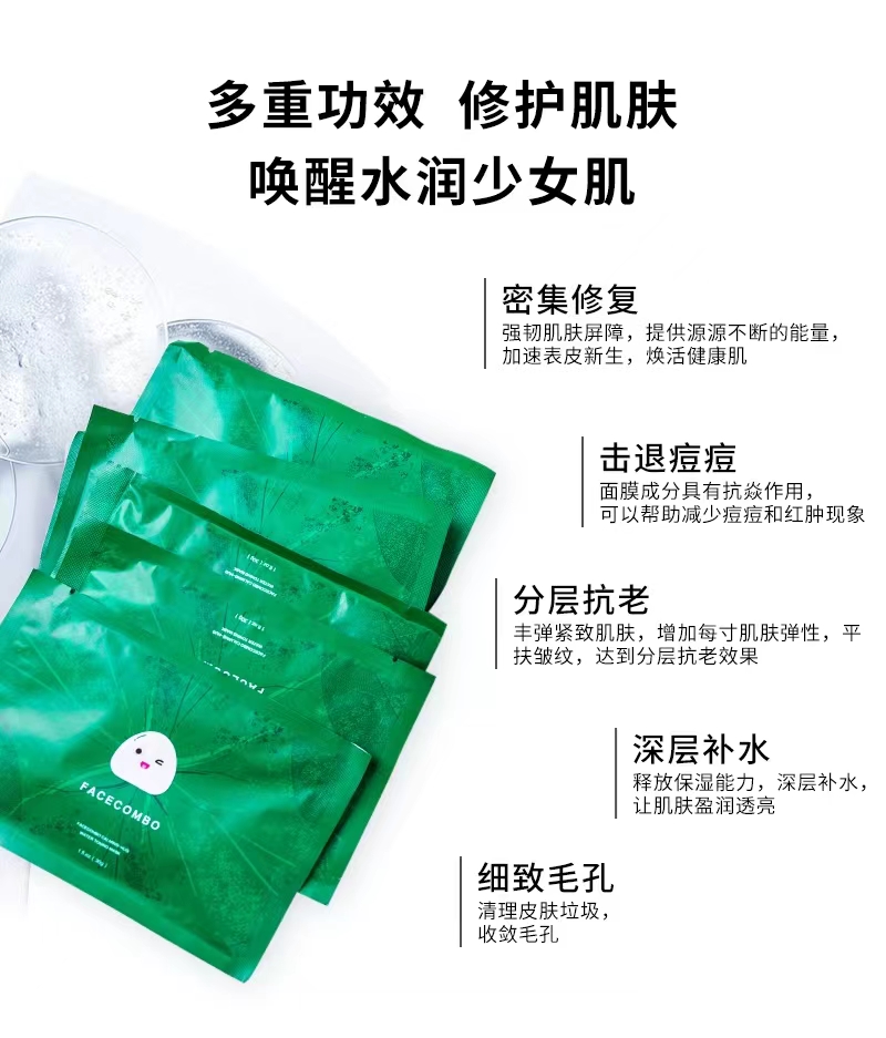 【YZ】50片facecombo面膜绿补水修复干燥肌敏感肌 50片装