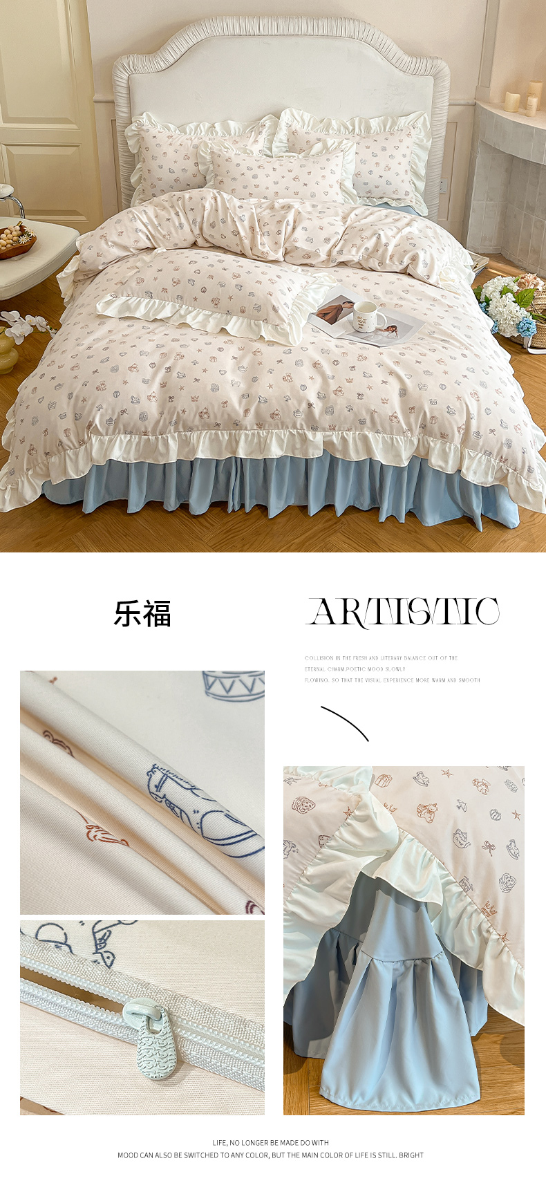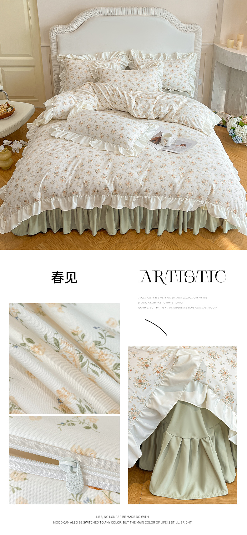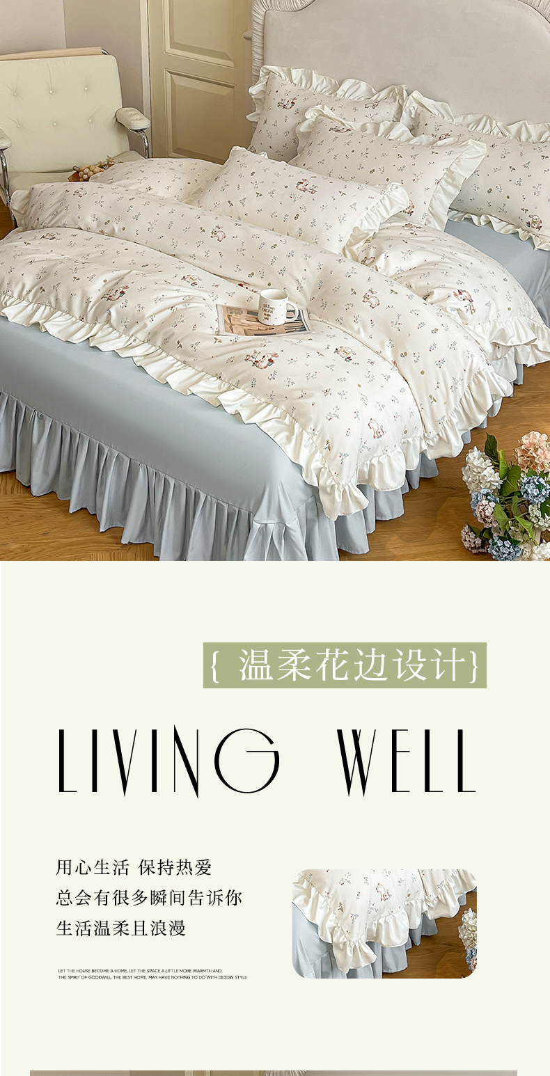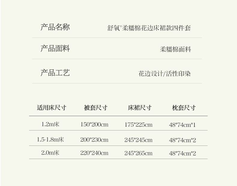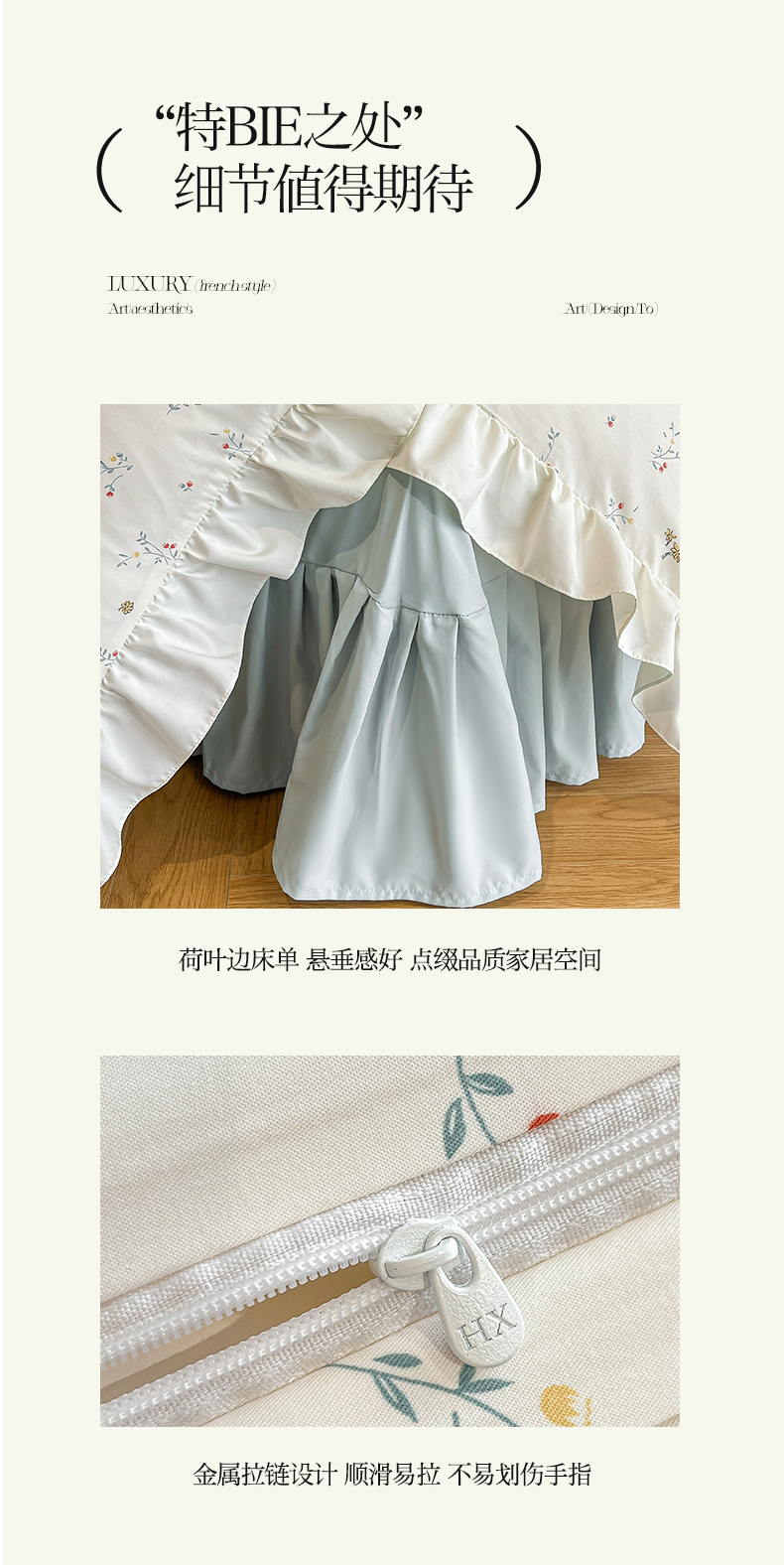 【5折购】舒氧°柔糯棉公主花边床裙款四件套 四季可用柔软透气套件