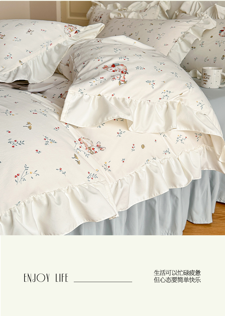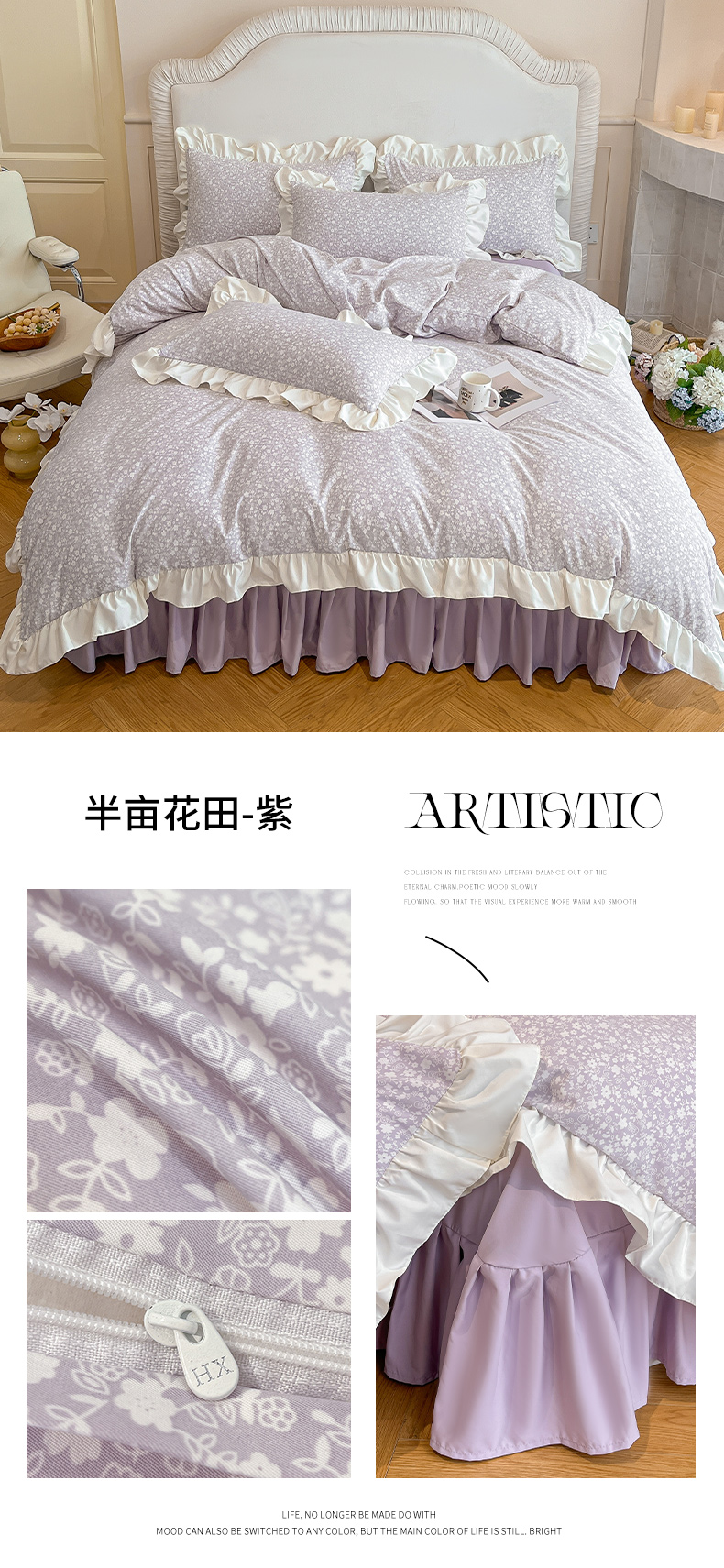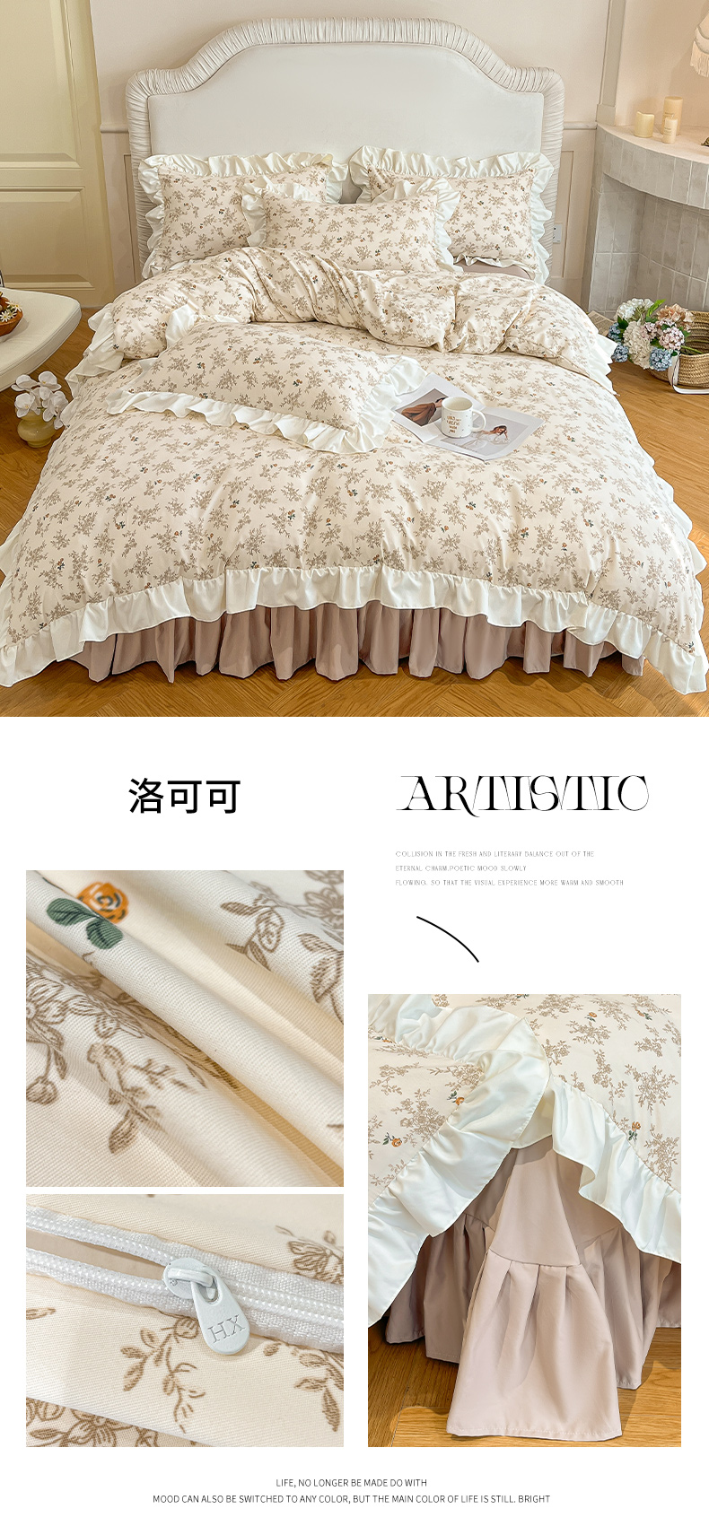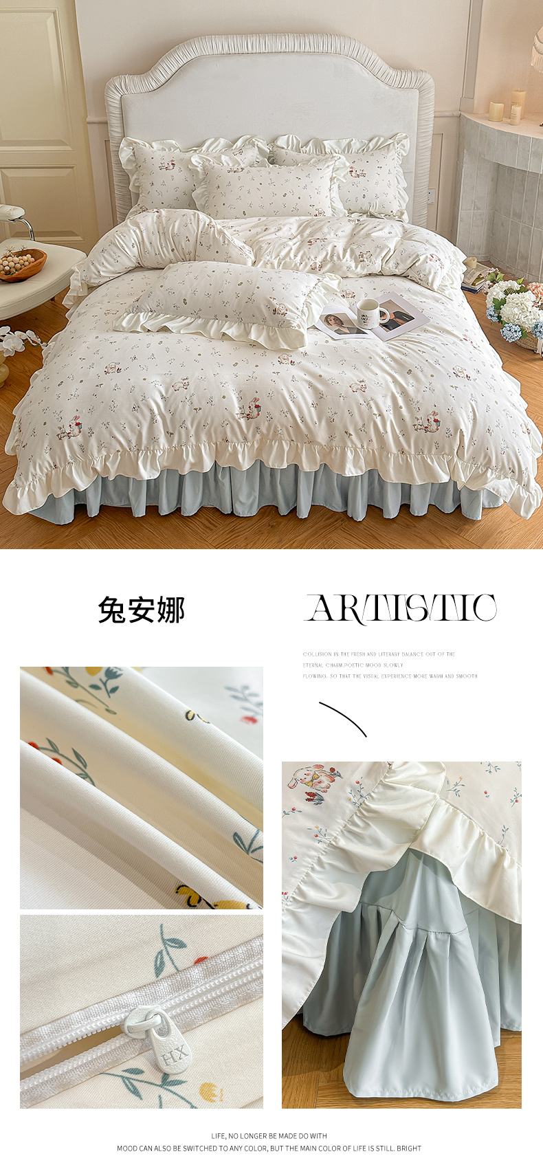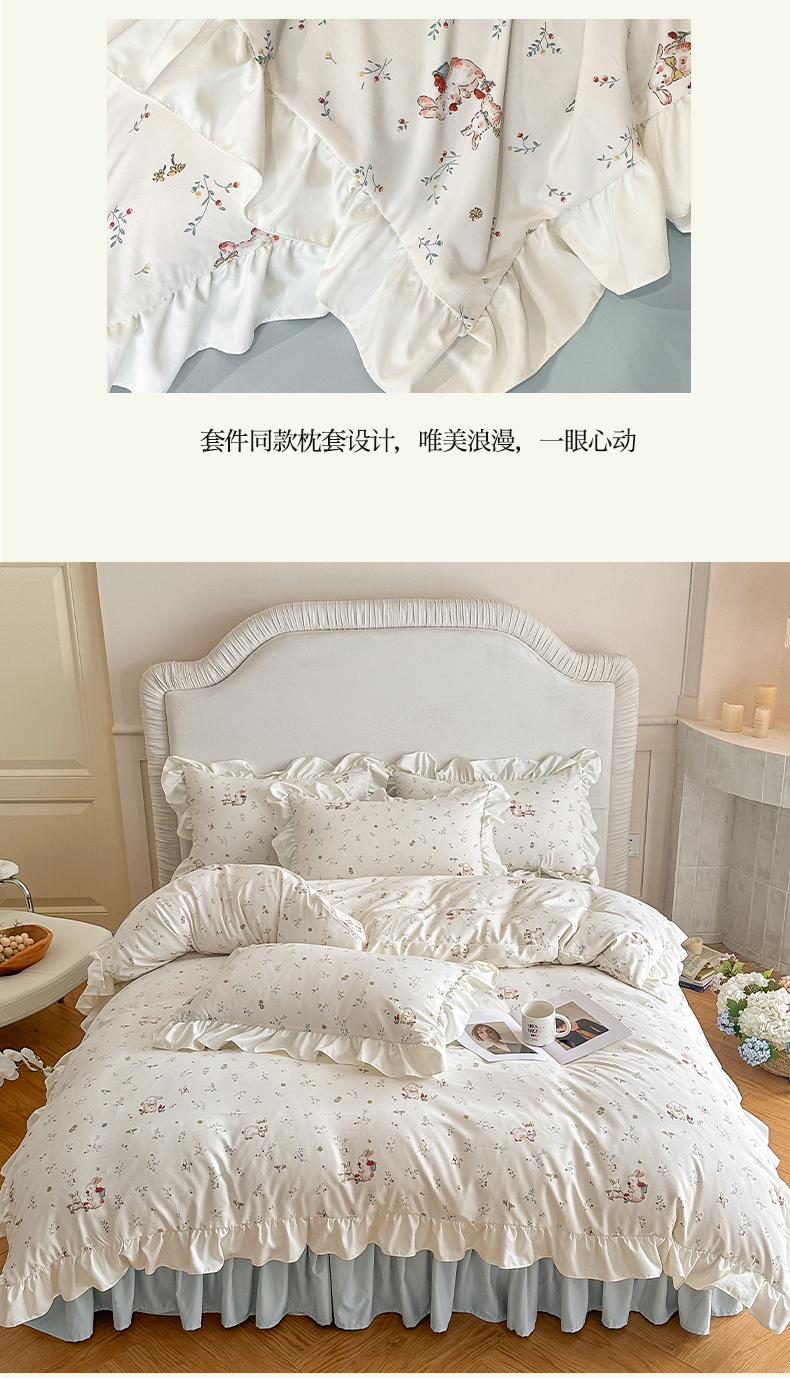 【5折购】舒氧°柔糯棉公主花边床裙款四件套 四季可用柔软透气套件
