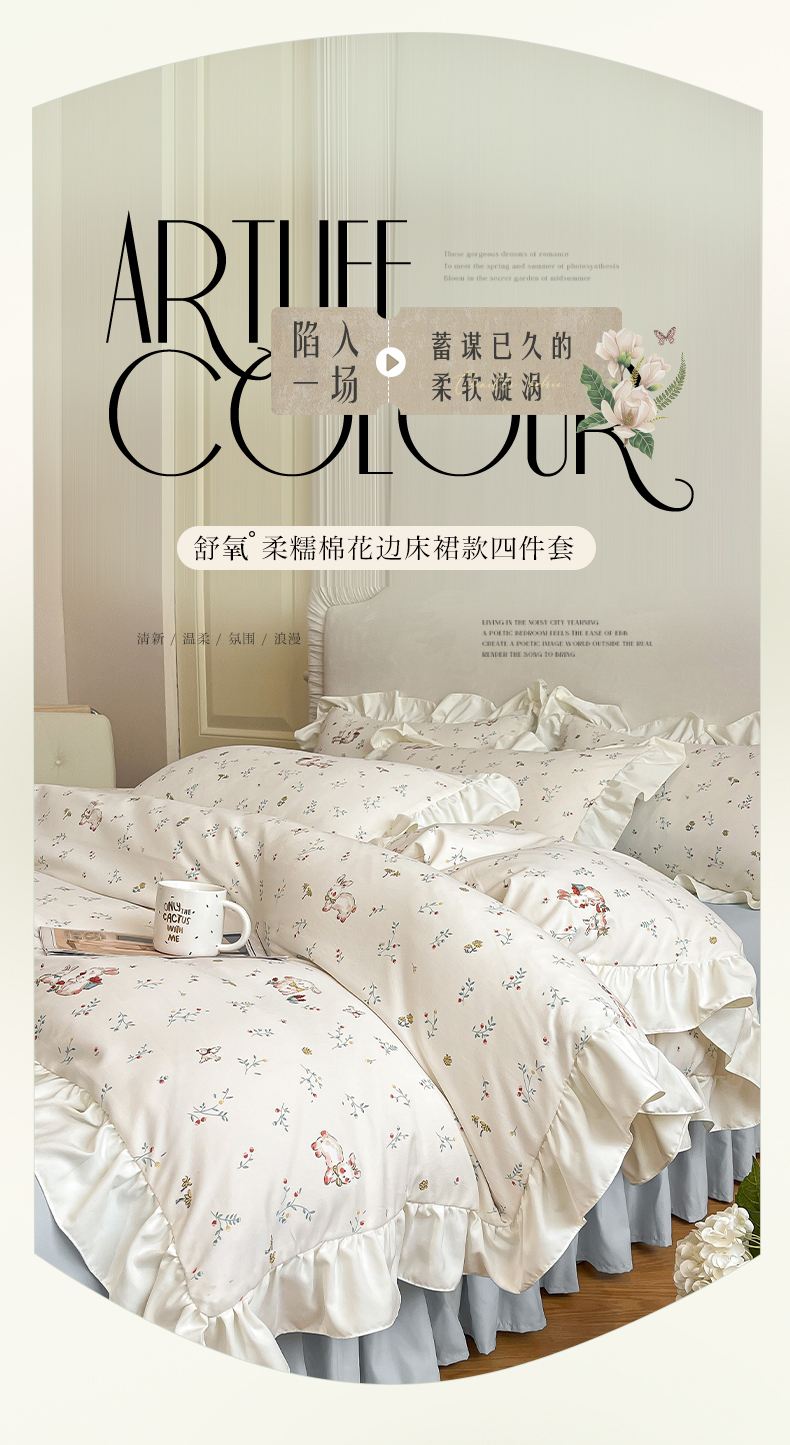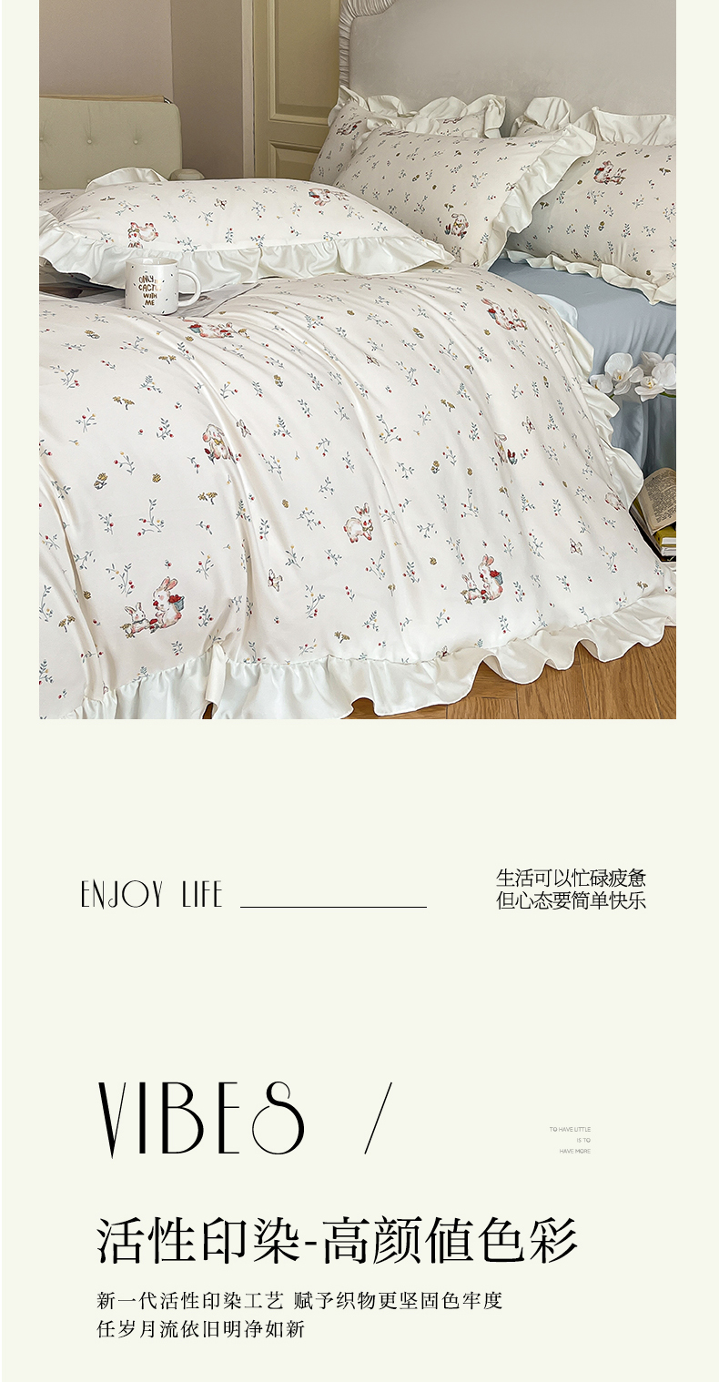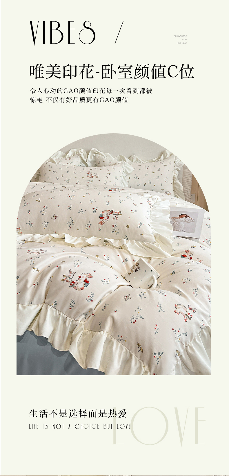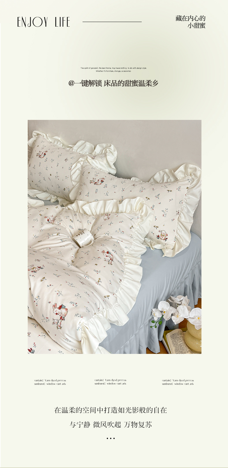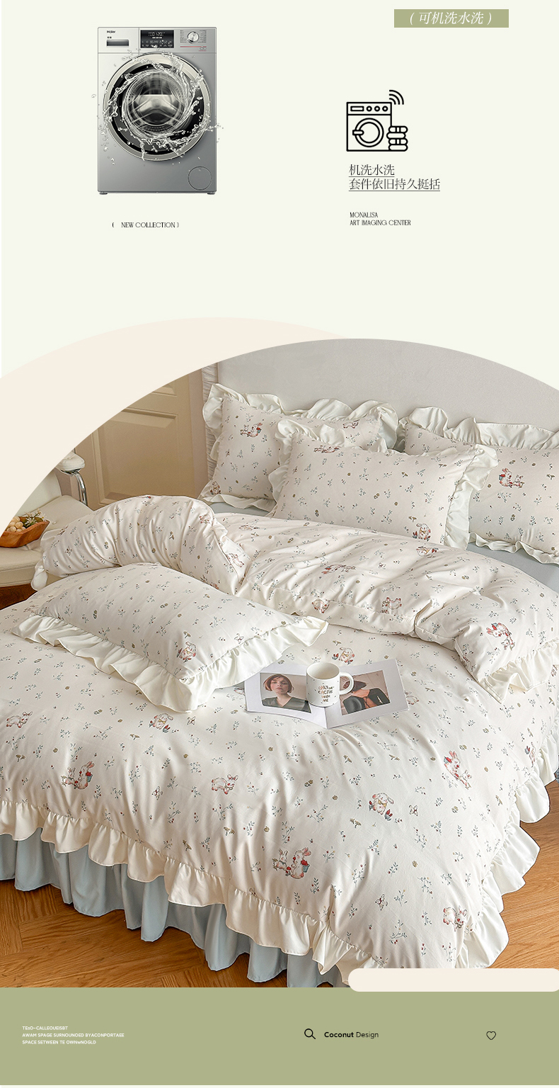 【5折购】舒氧°柔糯棉公主花边床裙款四件套 四季可用柔软透气套件