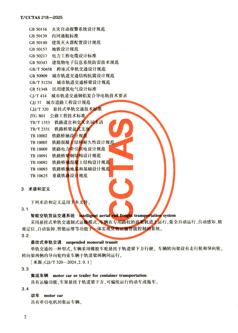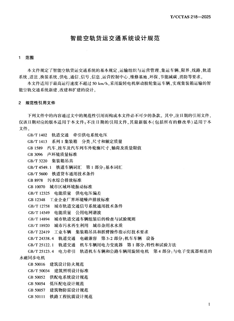 智能空轨货运交通系统设计规范T/CCTAS 218—2025