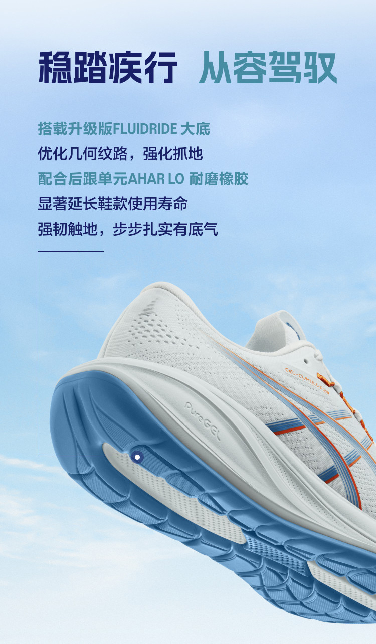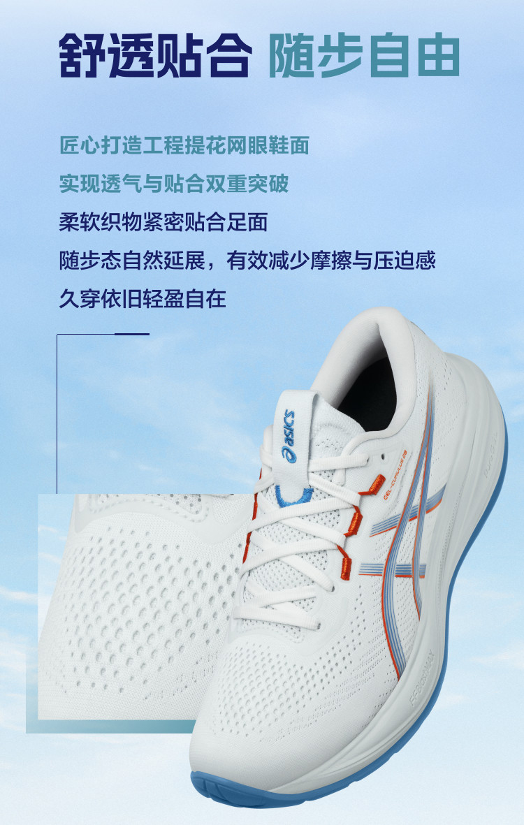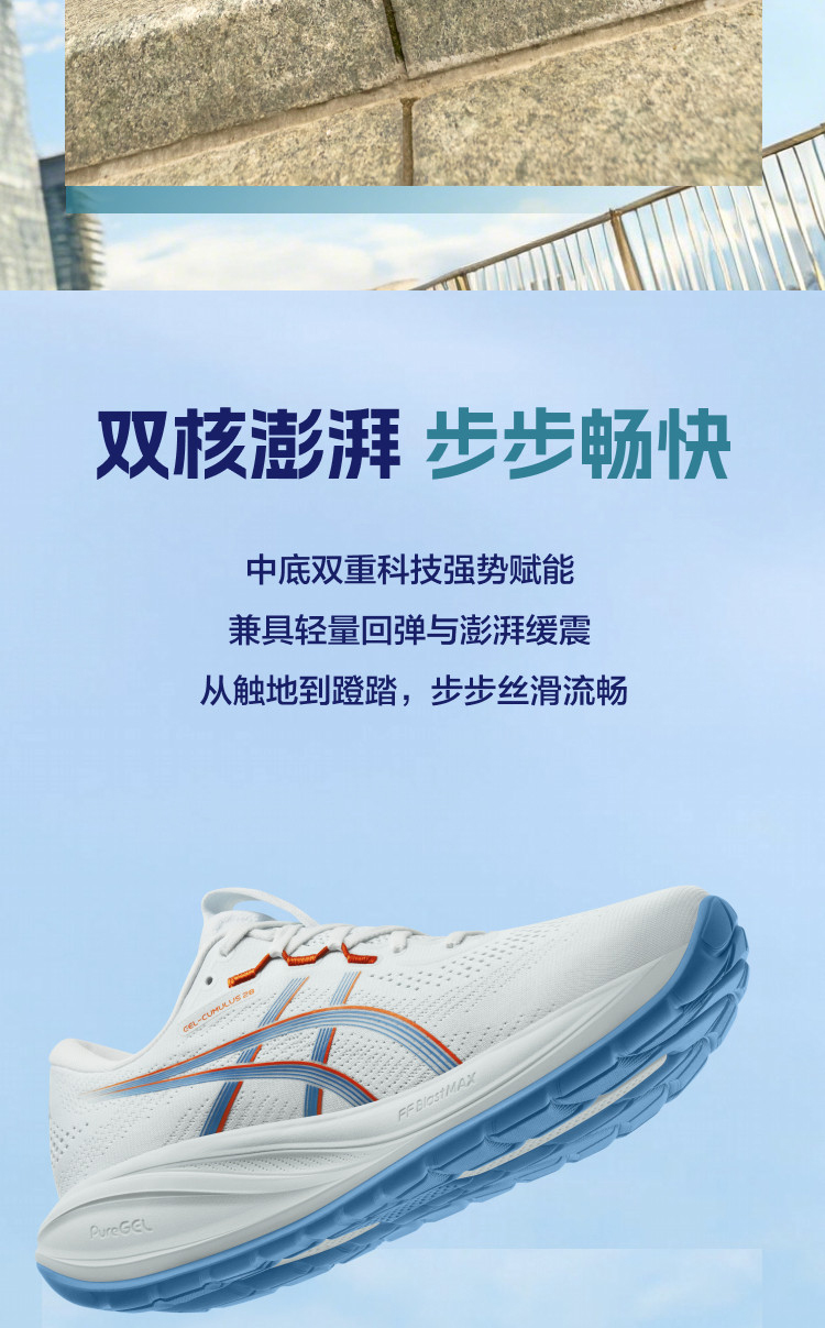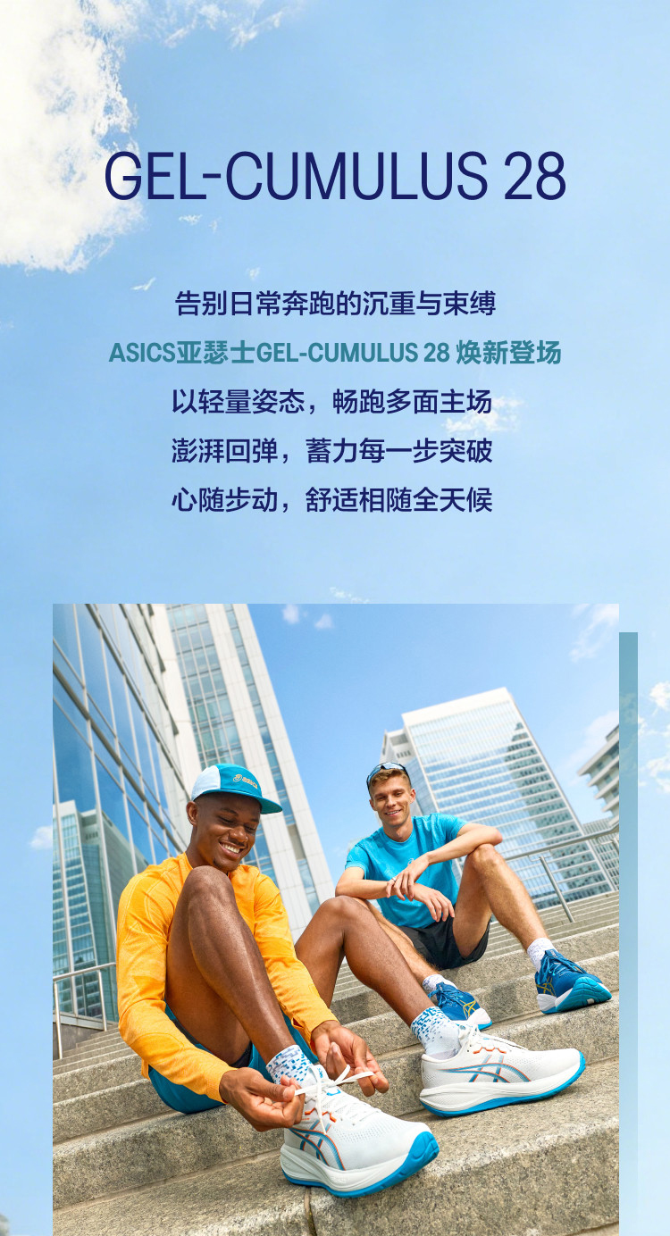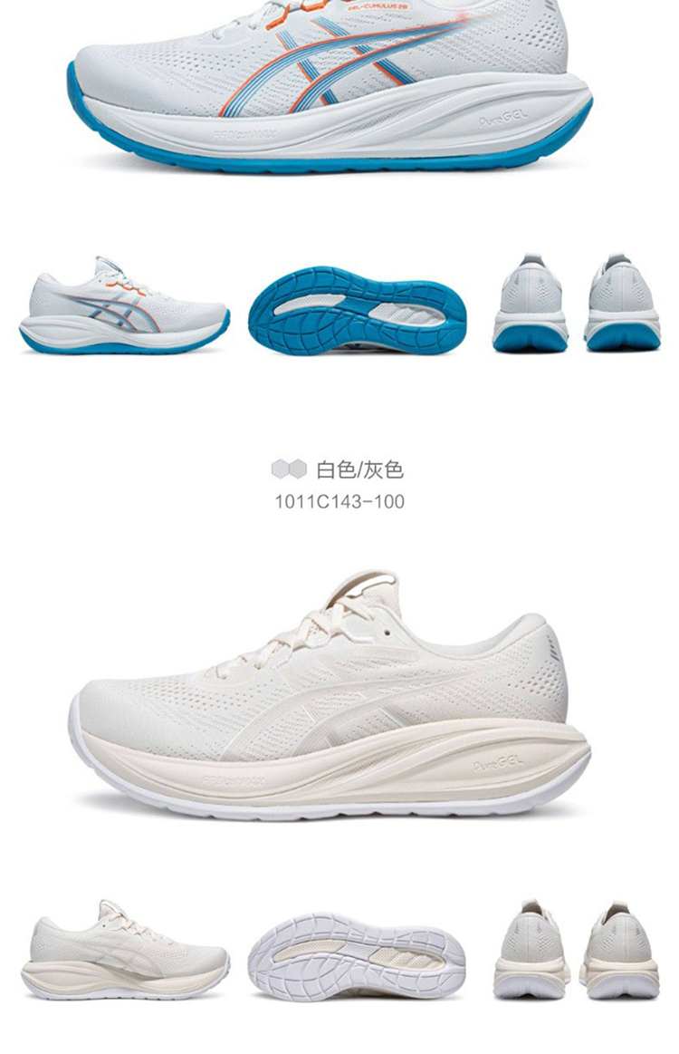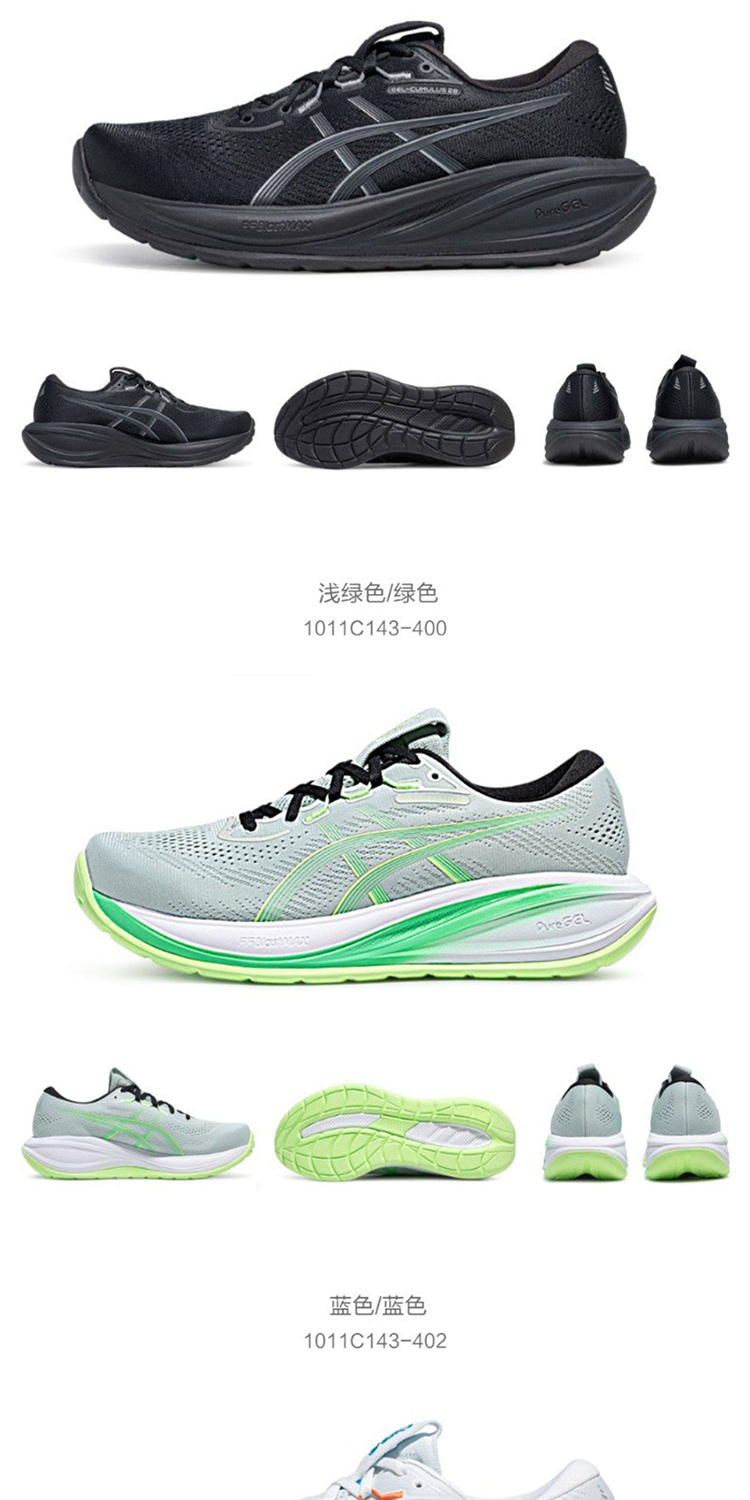 ASICS亚瑟士 CUMULUS 28 男款缓震回弹耐磨透气运动跑步鞋