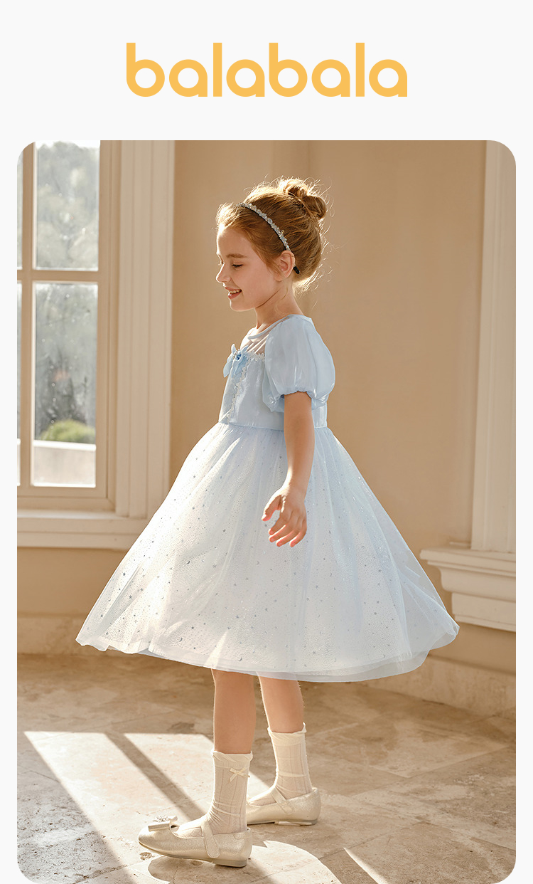 巴拉巴拉童装女童裙子儿童连衣裙中大童2026新款夏装网纱裙泡泡袖