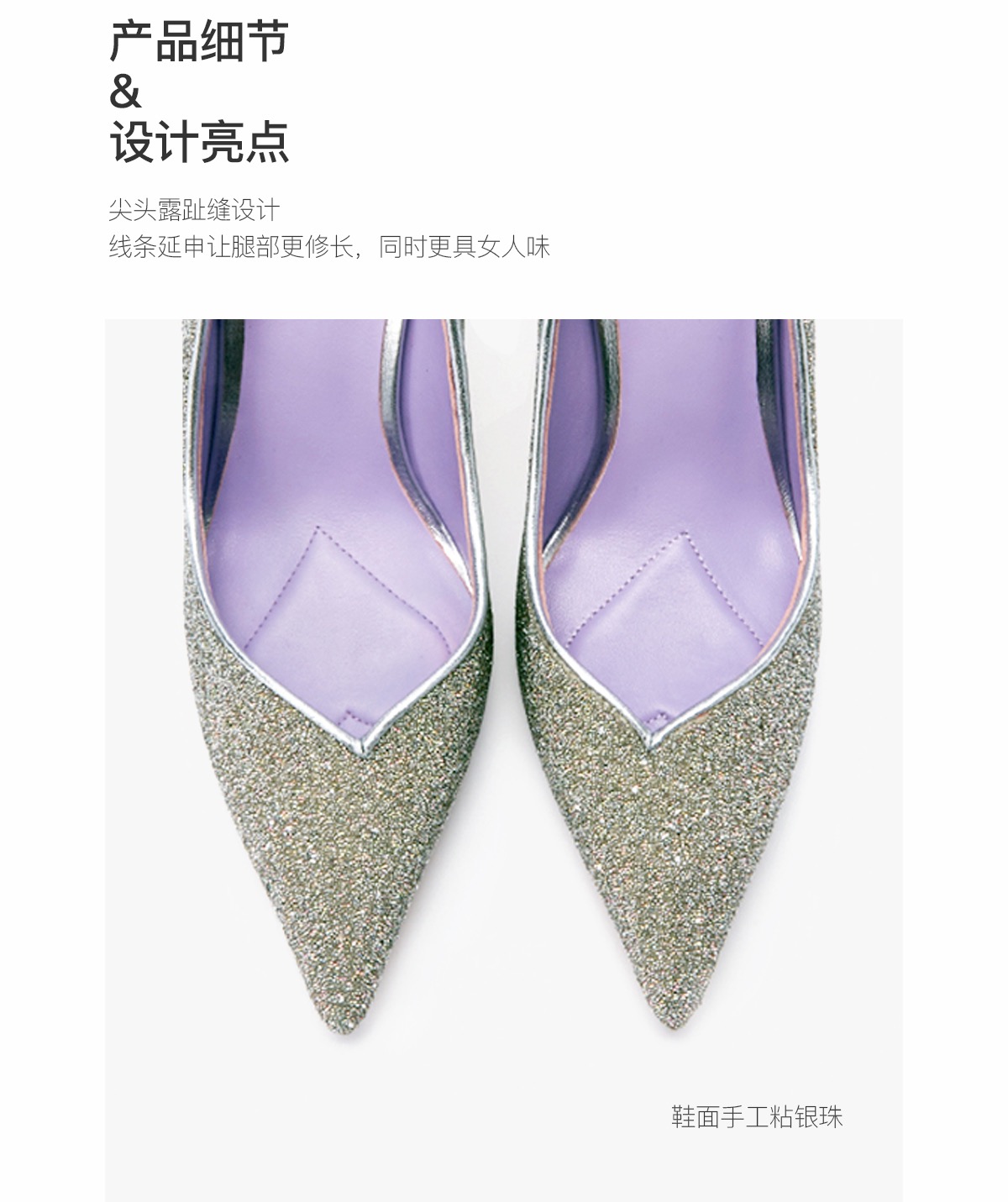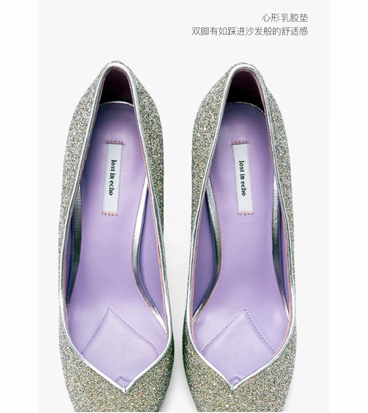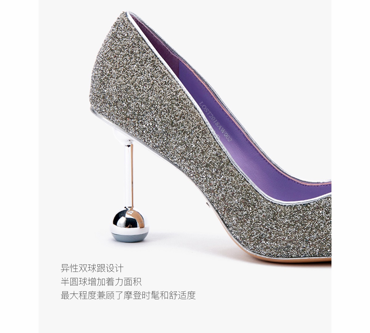 lost in echo浅口真丝双球跟高跟单鞋女 性感尖头银色双球跟女鞋