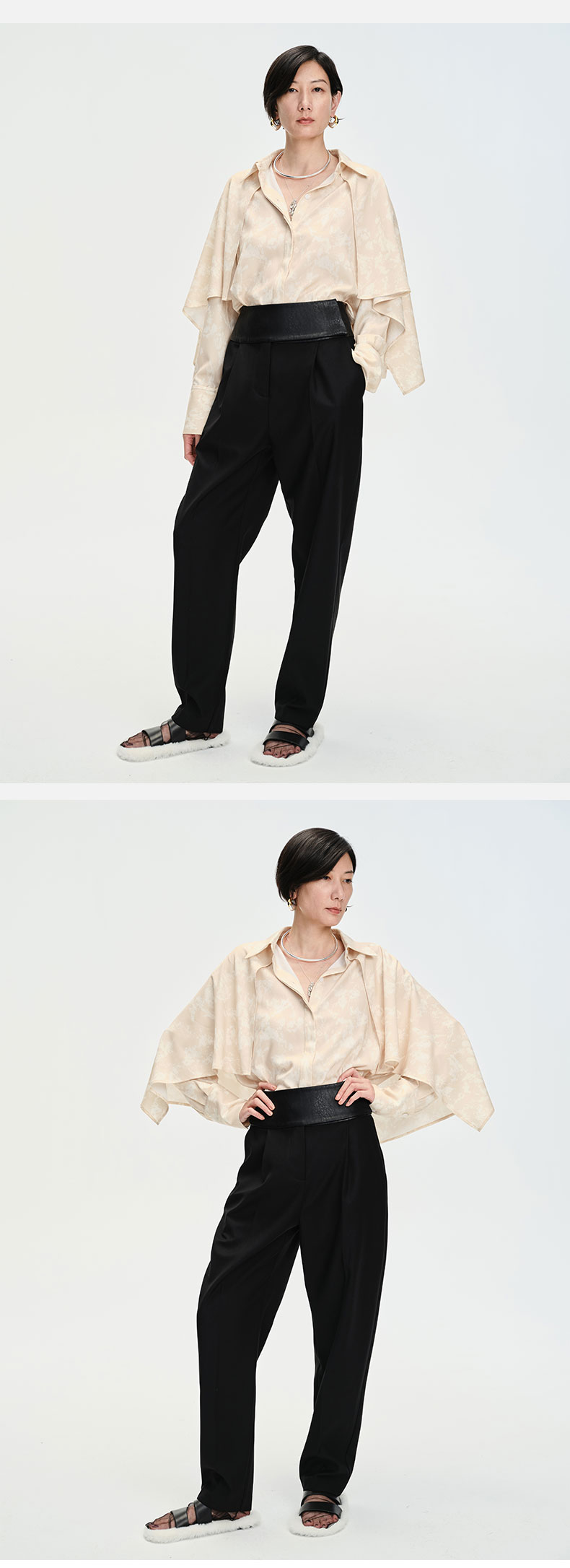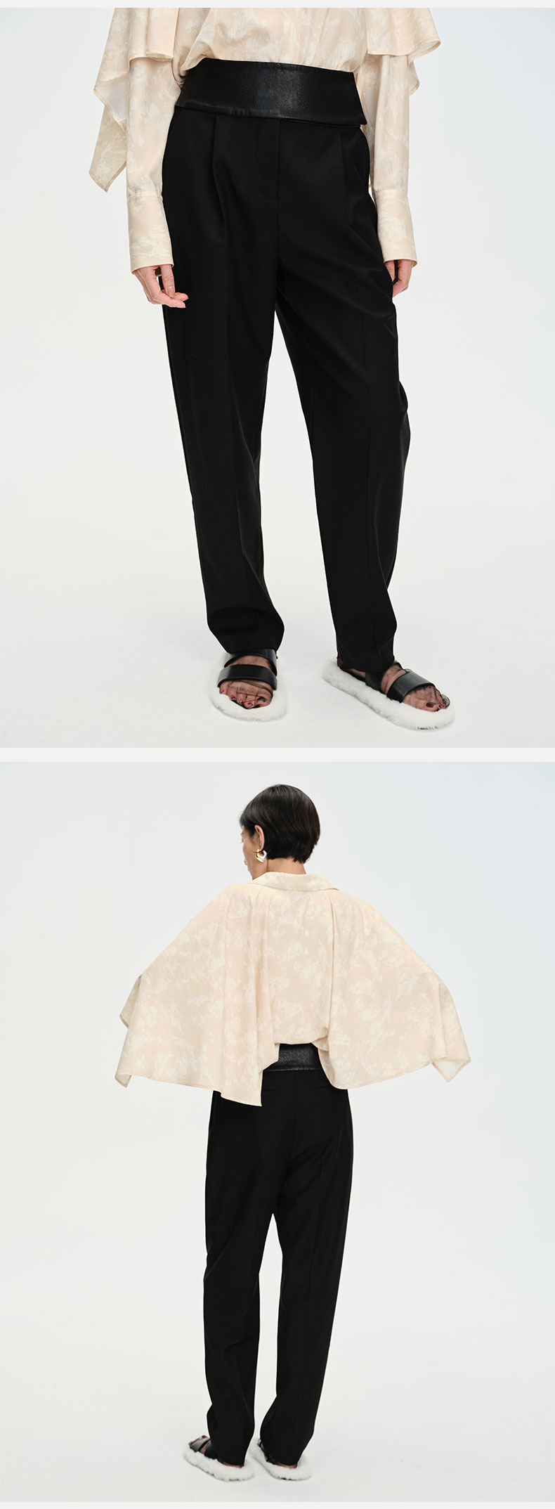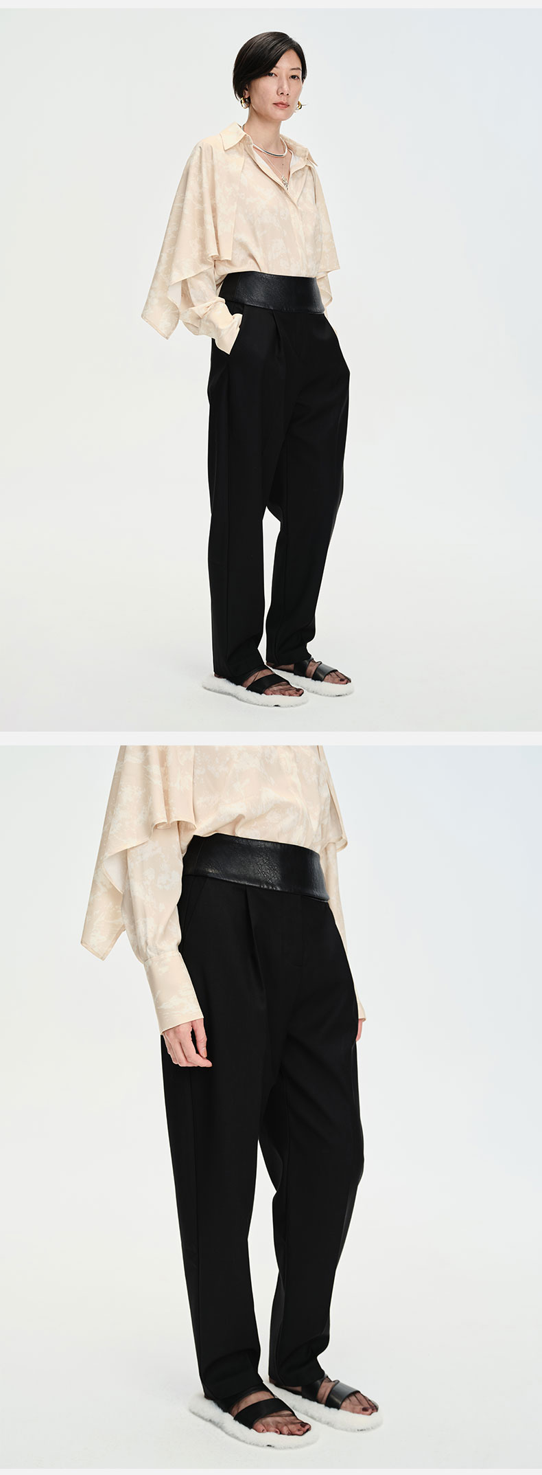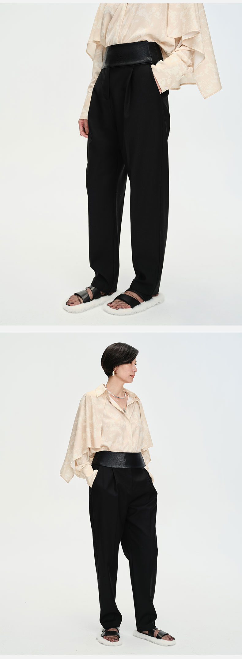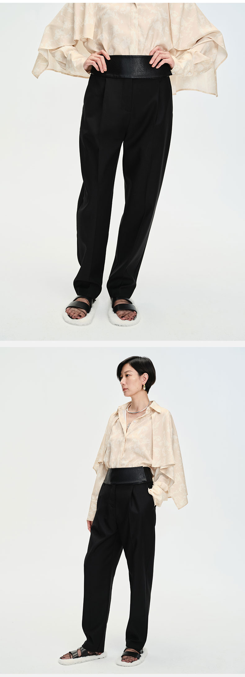 HIDEMI简约设计感v领系带套装 上衣/长裤