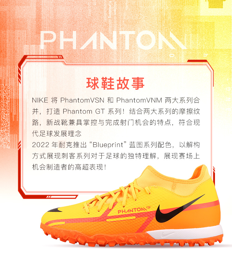 NIKE/耐克PHANTOM GT2中端高帮TF碎钉成人男足球鞋DC0802-808