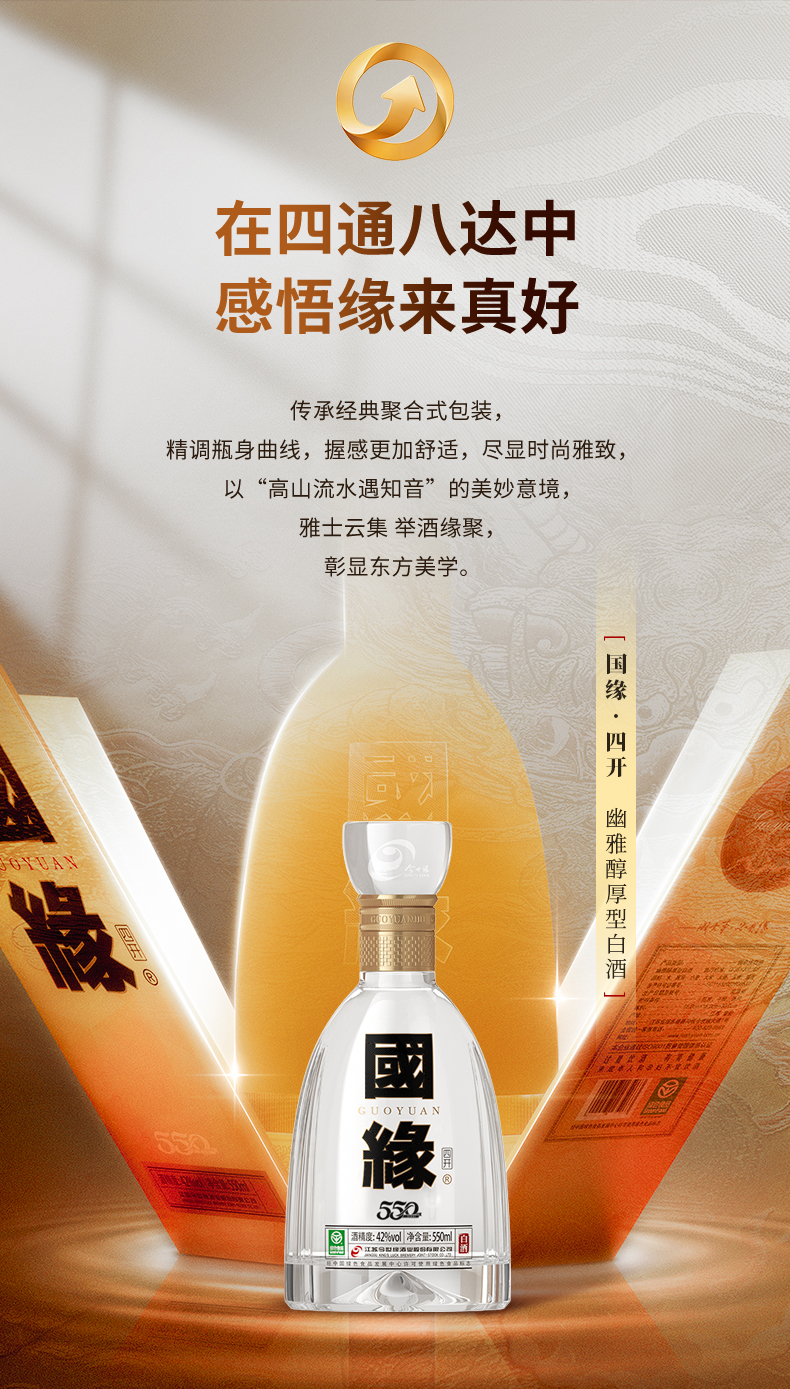 【酒厂直营】国缘四开白酒 42度 550ml 整箱4瓶装(五代)