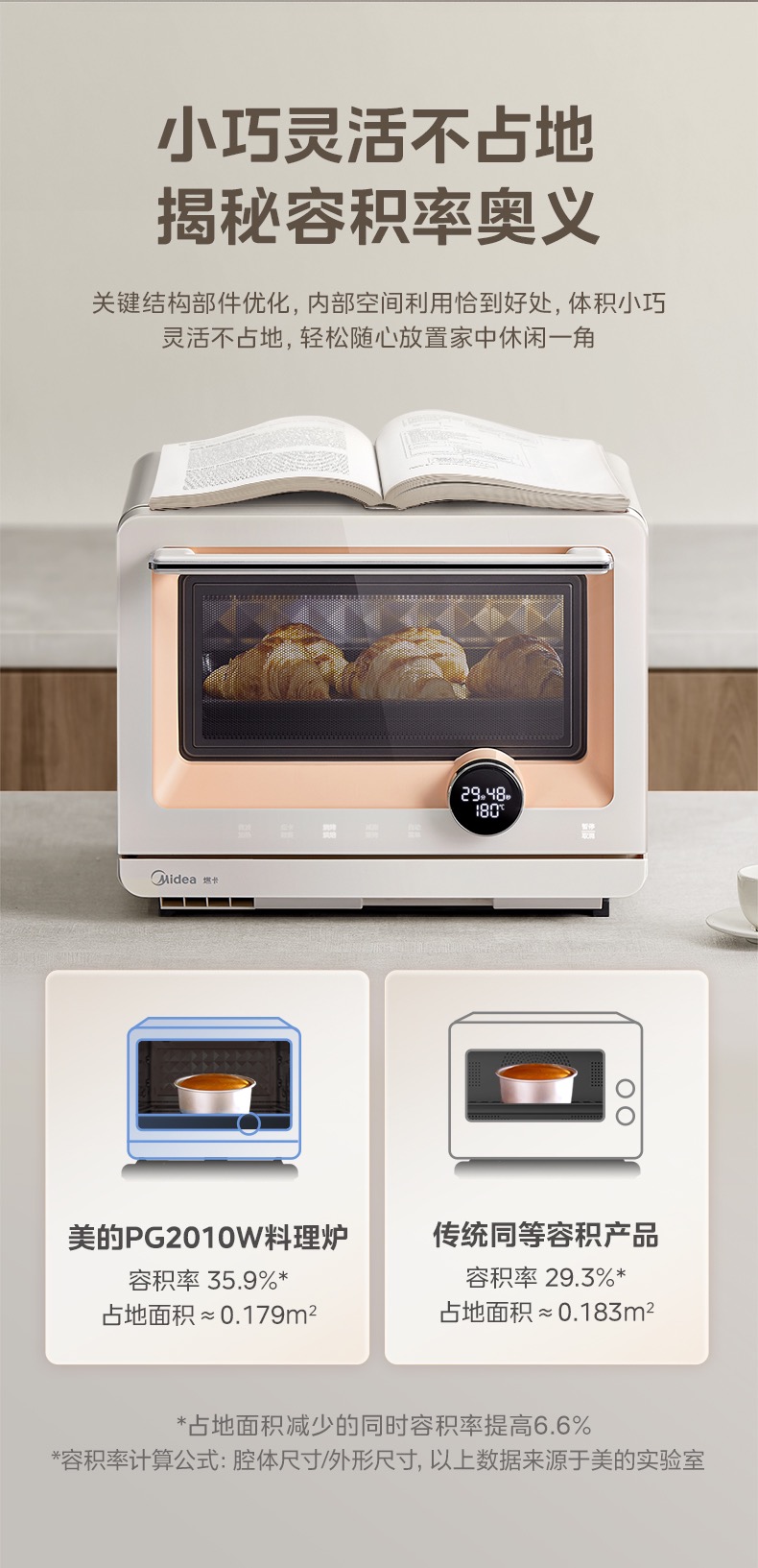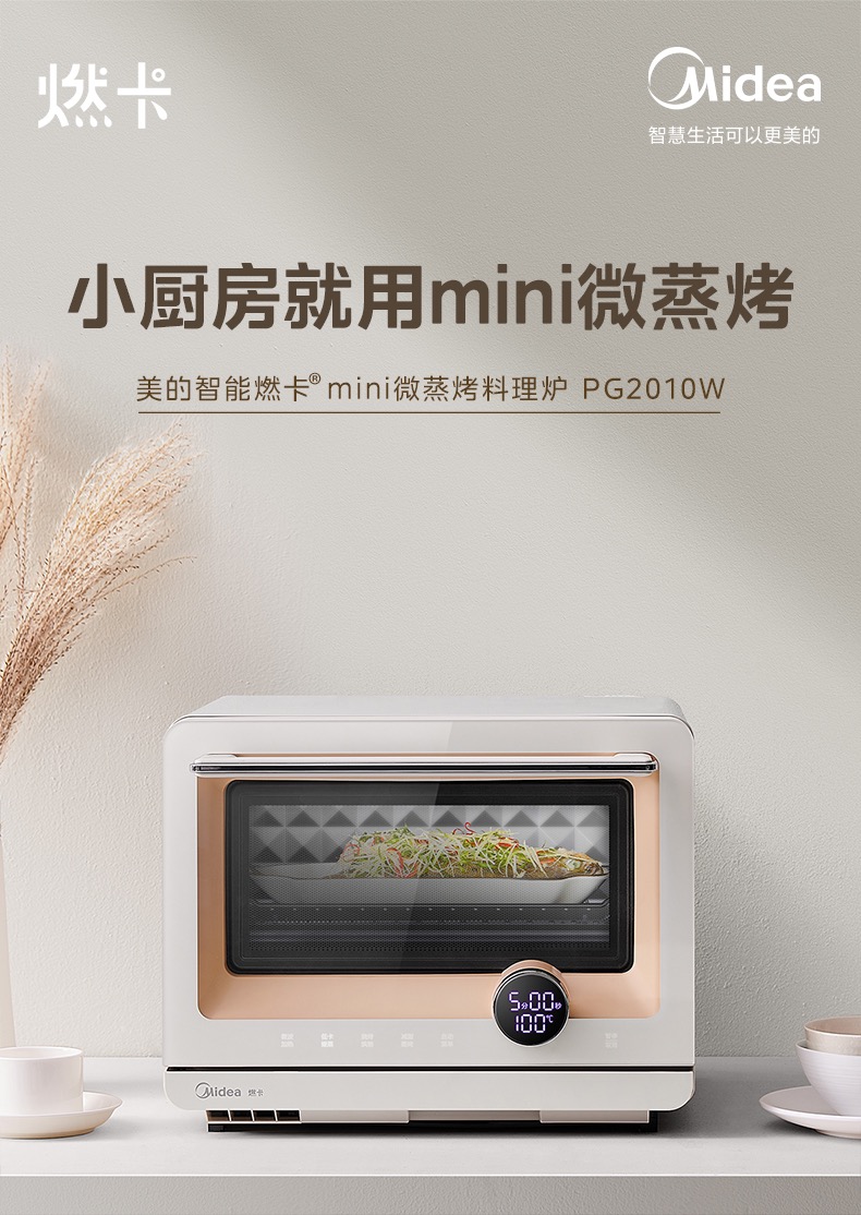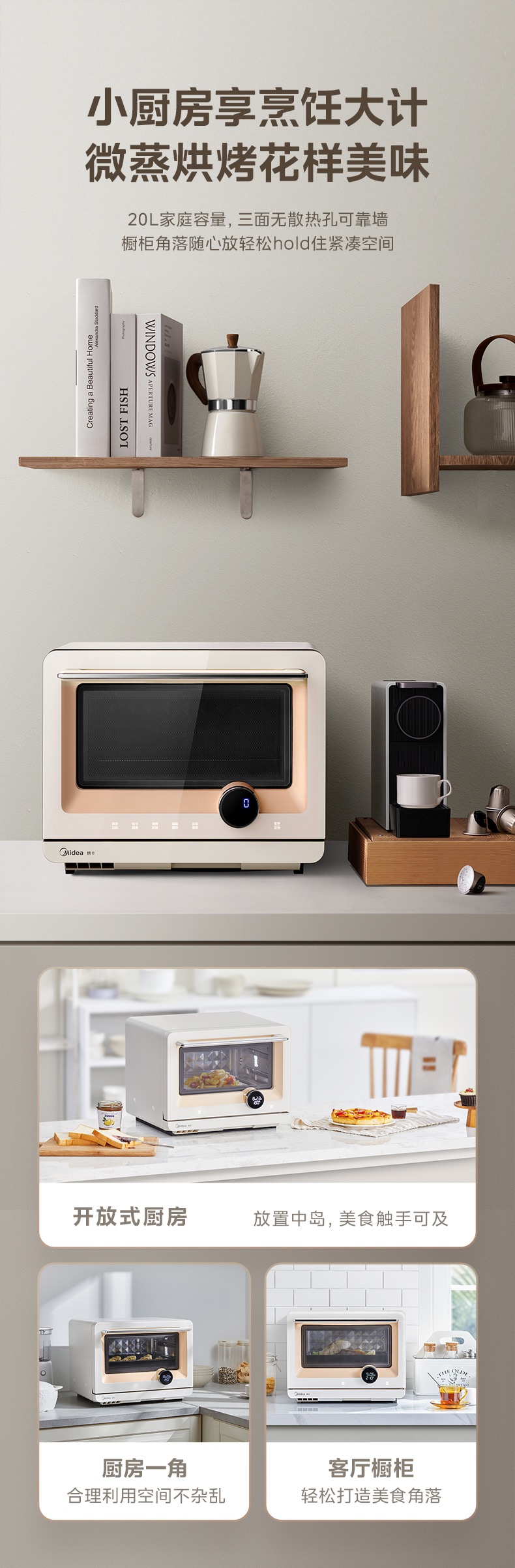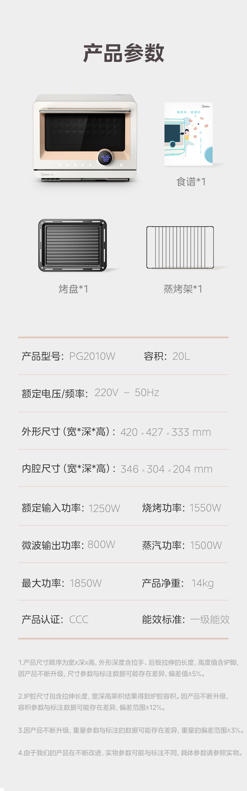 美的(Midea)(509730)微蒸烤一体机 家用三合一微波炉烤箱 PG2010W 变频大火力 脱脂减盐立体烘烤 304不锈钢菱面内胆