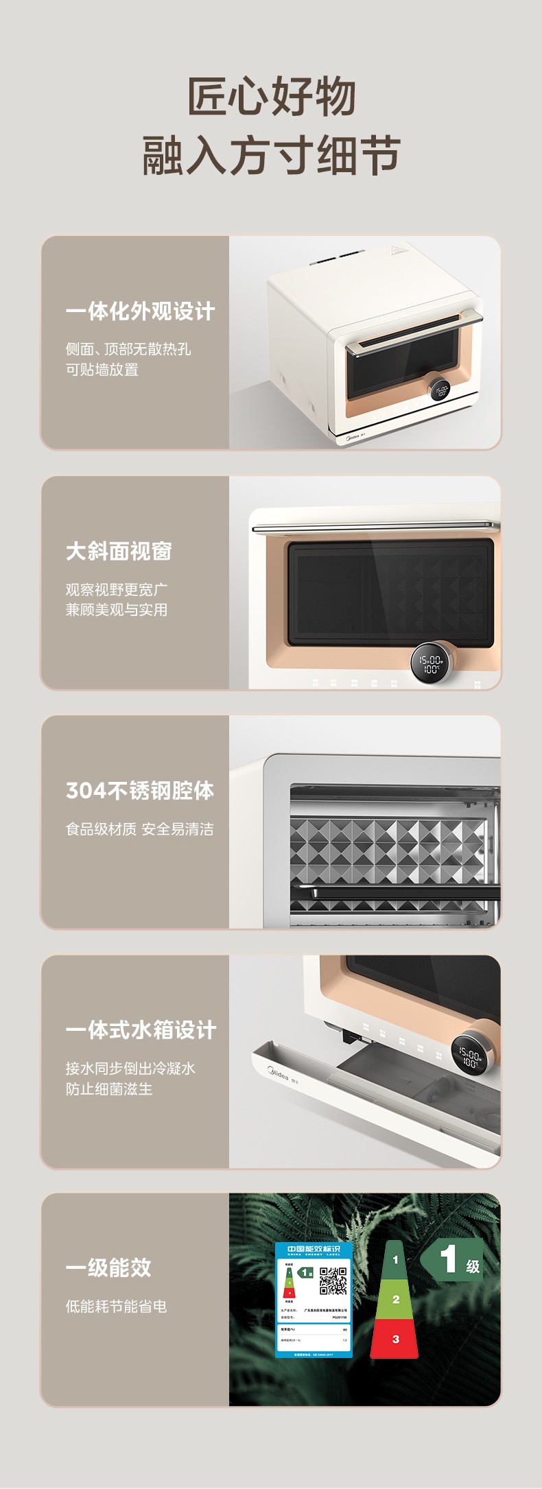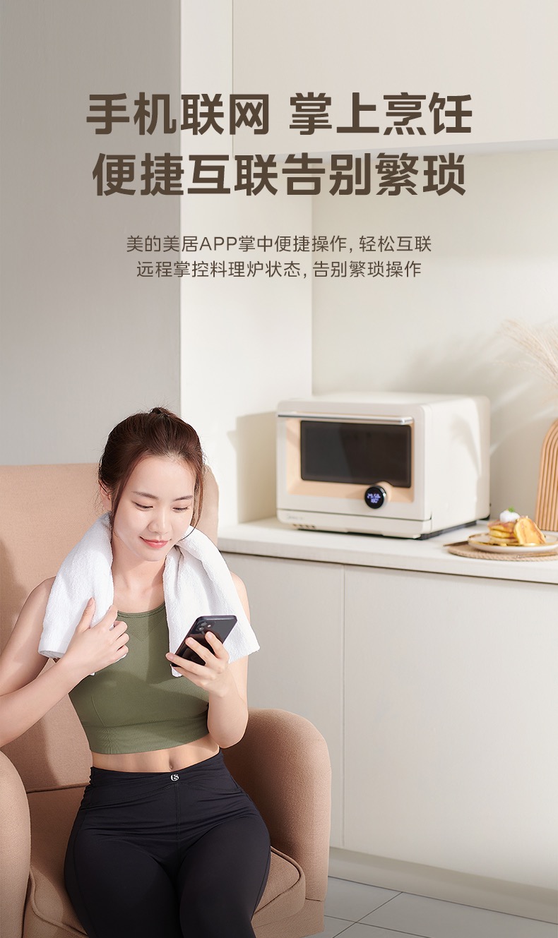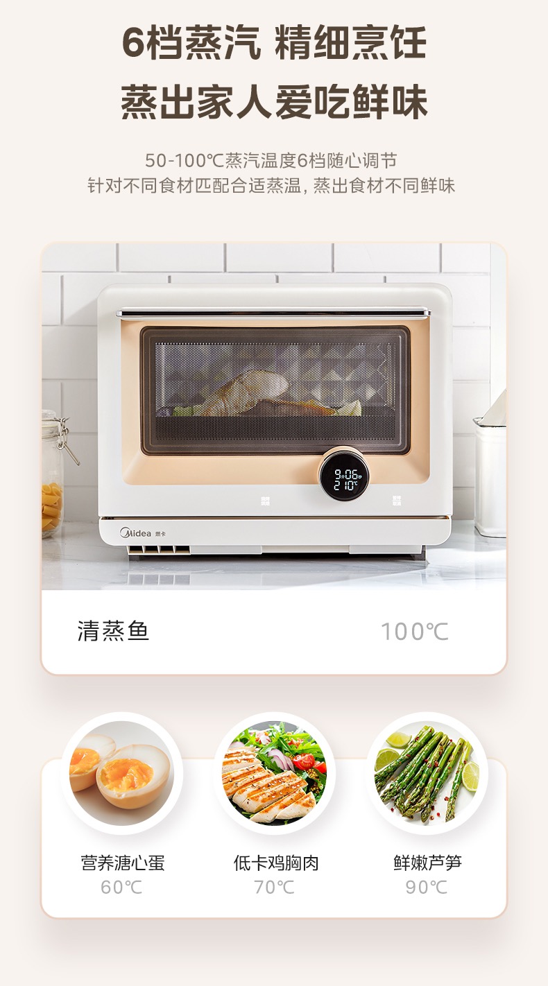 美的(Midea)(509730)微蒸烤一体机 家用三合一微波炉烤箱 PG2010W 变频大火力 脱脂减盐立体烘烤 304不锈钢菱面内胆