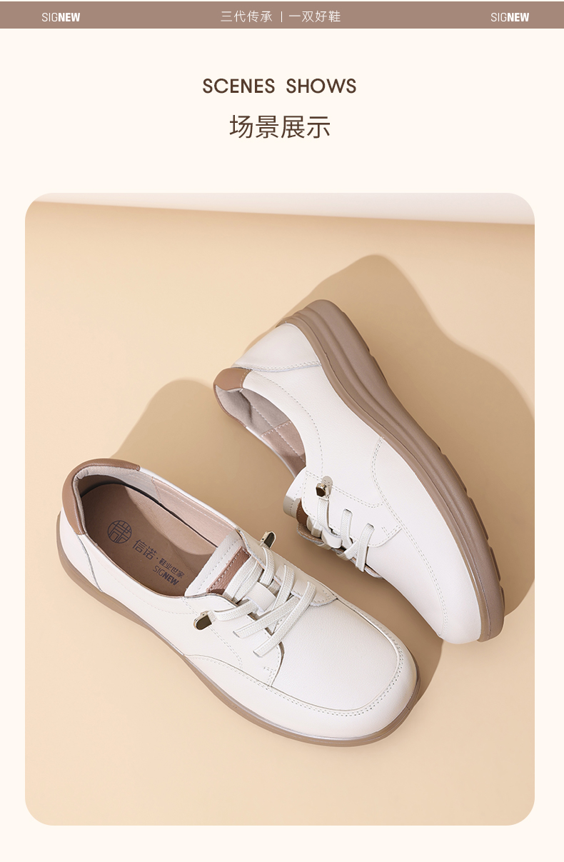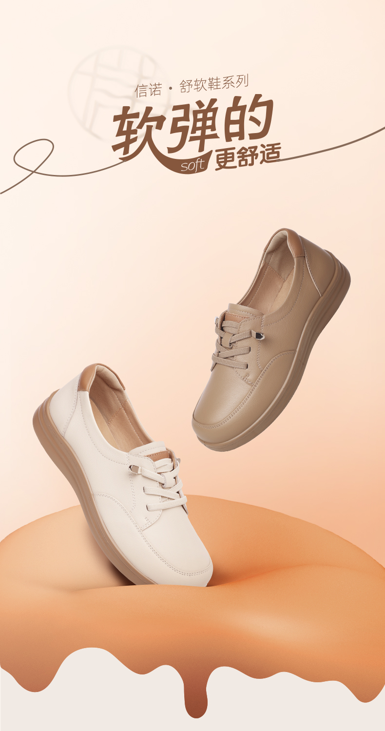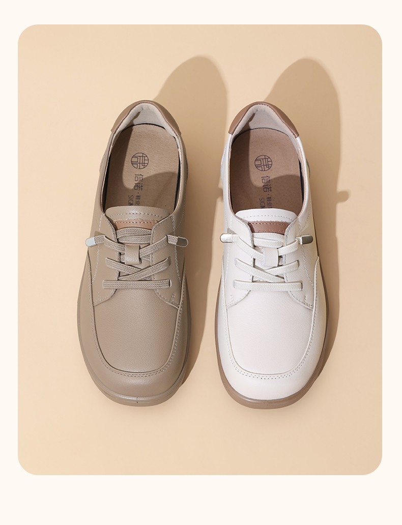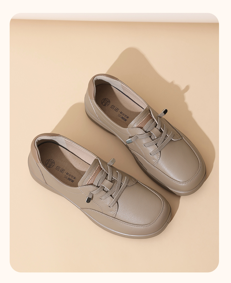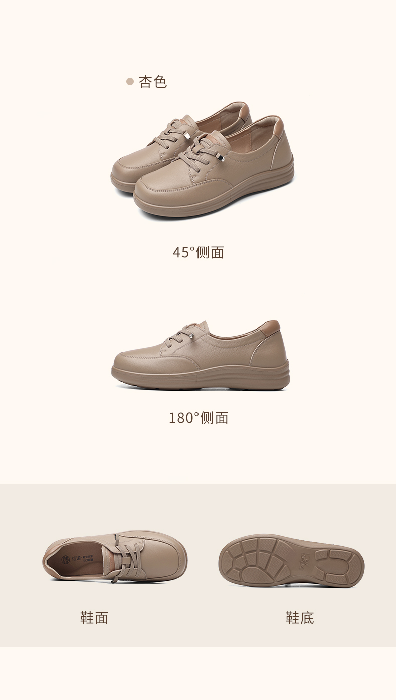 真皮轻便软底妈妈鞋子春秋款舒适中老年不累脚休闲运动皮鞋女单鞋5C8166-12