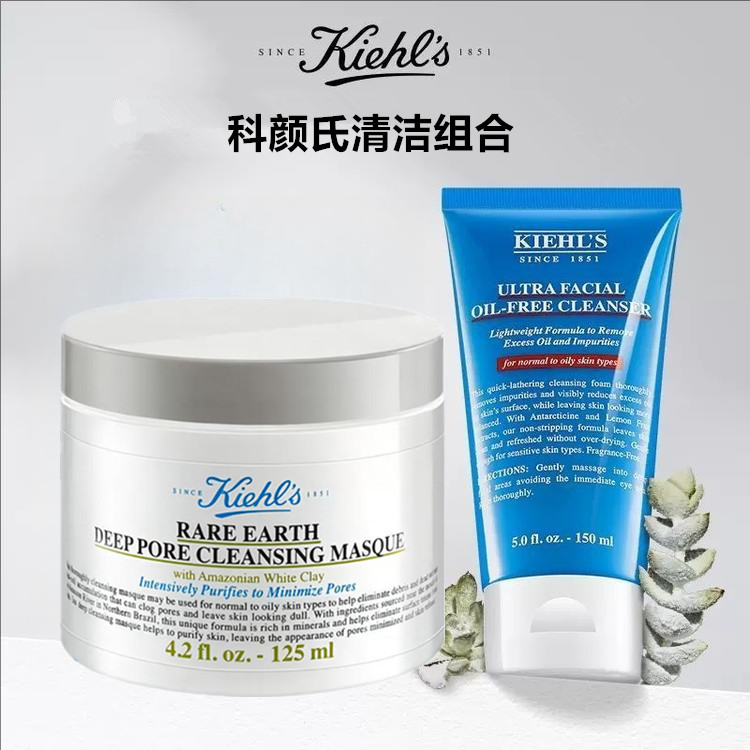 Kiehl's 科颜氏清洁组合(白泥清洁面膜125ml+高保湿洁面乳150ml)