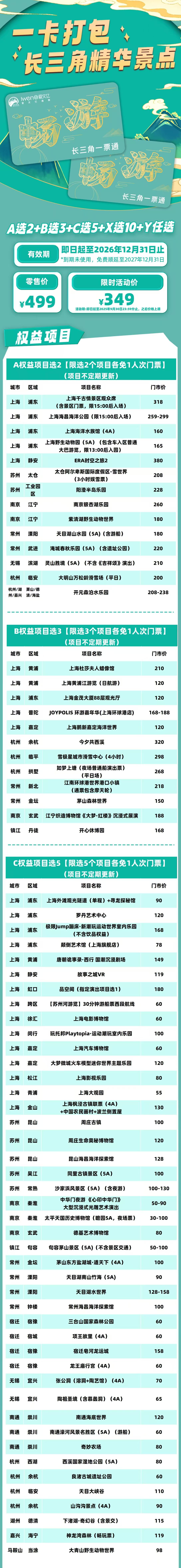 8、2026畅游系列产品的Y权益是什么?答:Y权益(优惠权益)是2026畅游系列产品的增值服务,主要为江浙沪酒店的优惠权益(注:酒店实售价会因淡旺季、促销活动等因素而实时变动,具体优惠幅度请以实际对比为准),优惠价以福点计算,1福点等于10元。