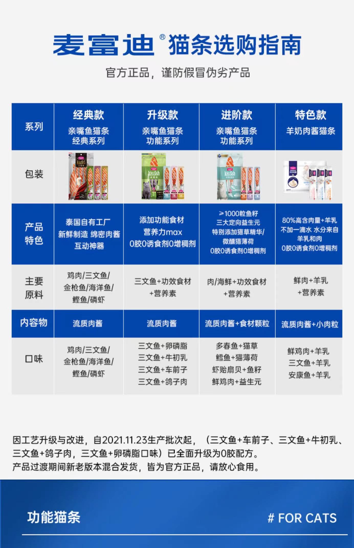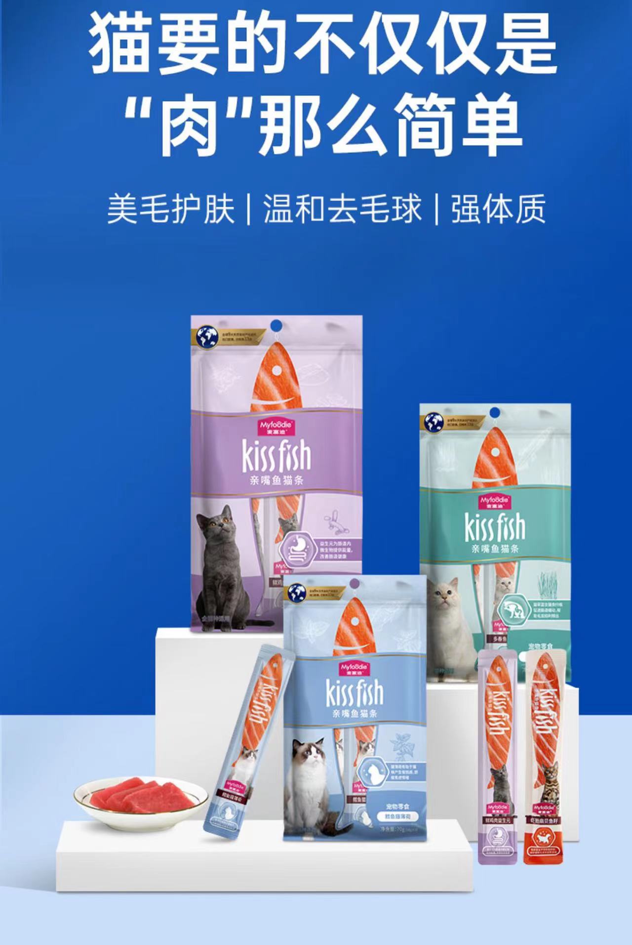 麦富迪猫零食亲嘴鱼功效猫条14g*100支成幼猫条罐头营养增肥发腮零食无诱食剂