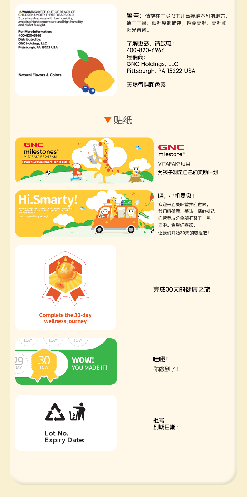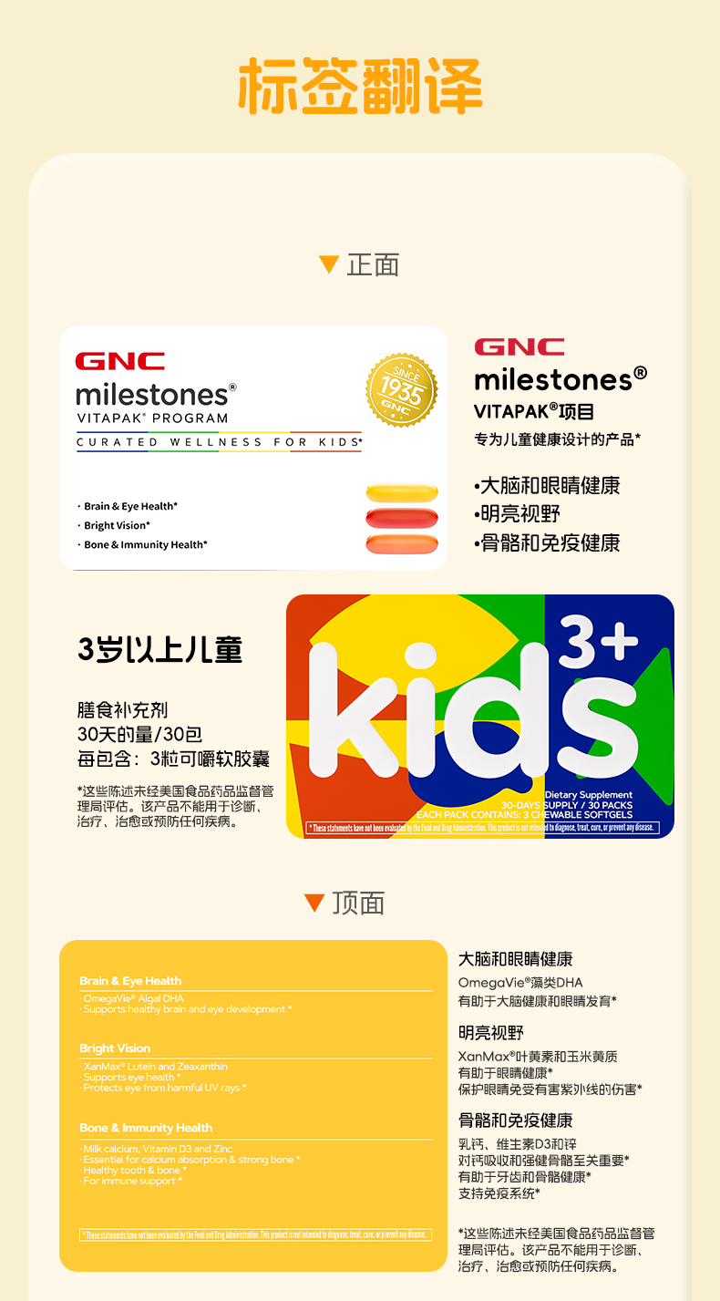 GNC儿童每日营养包 Vitapak儿童营养包
