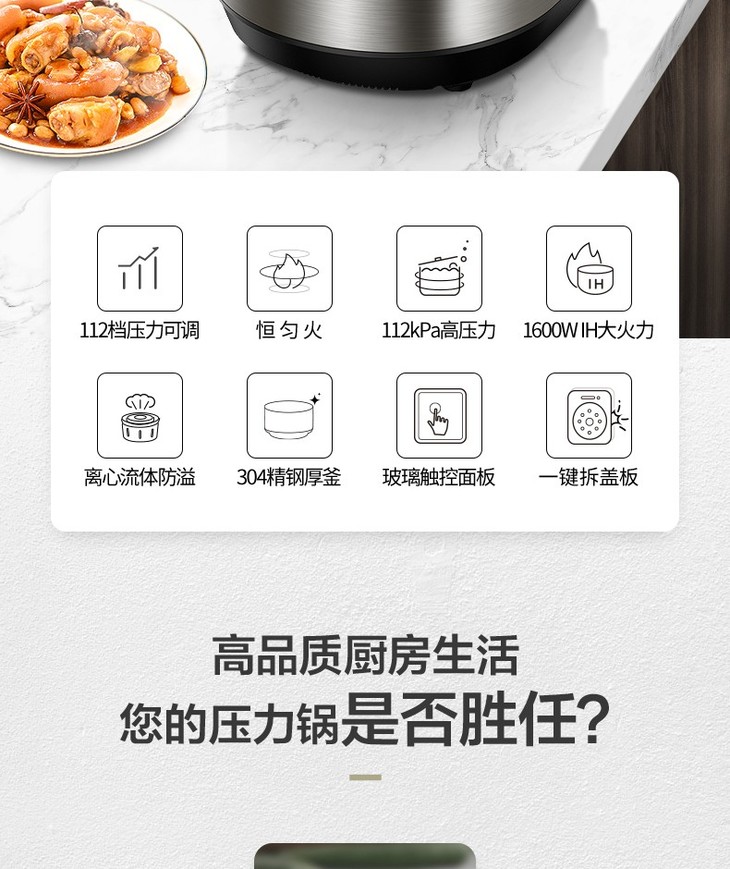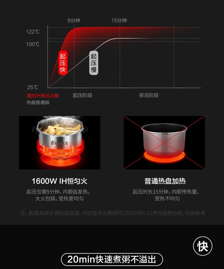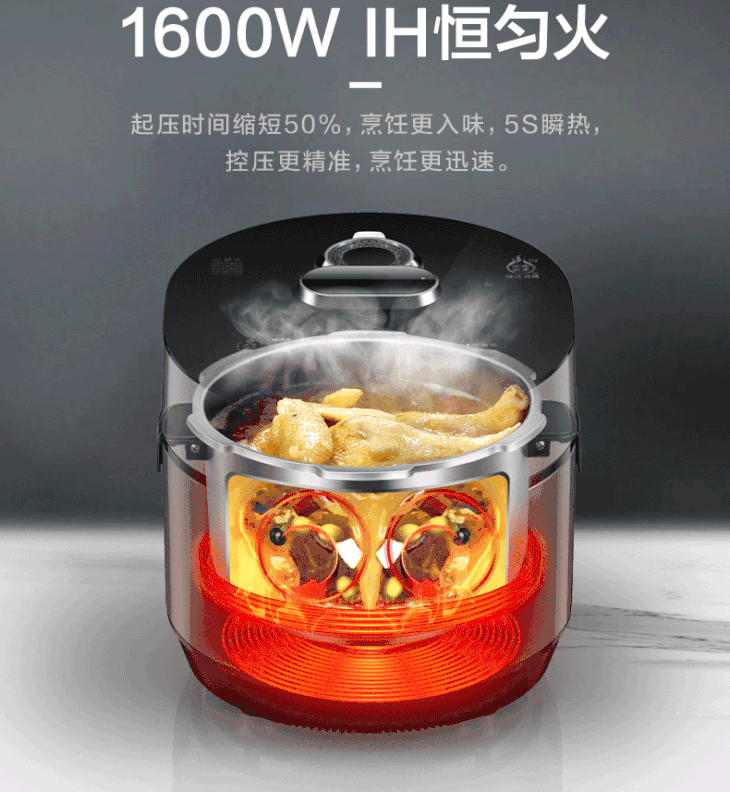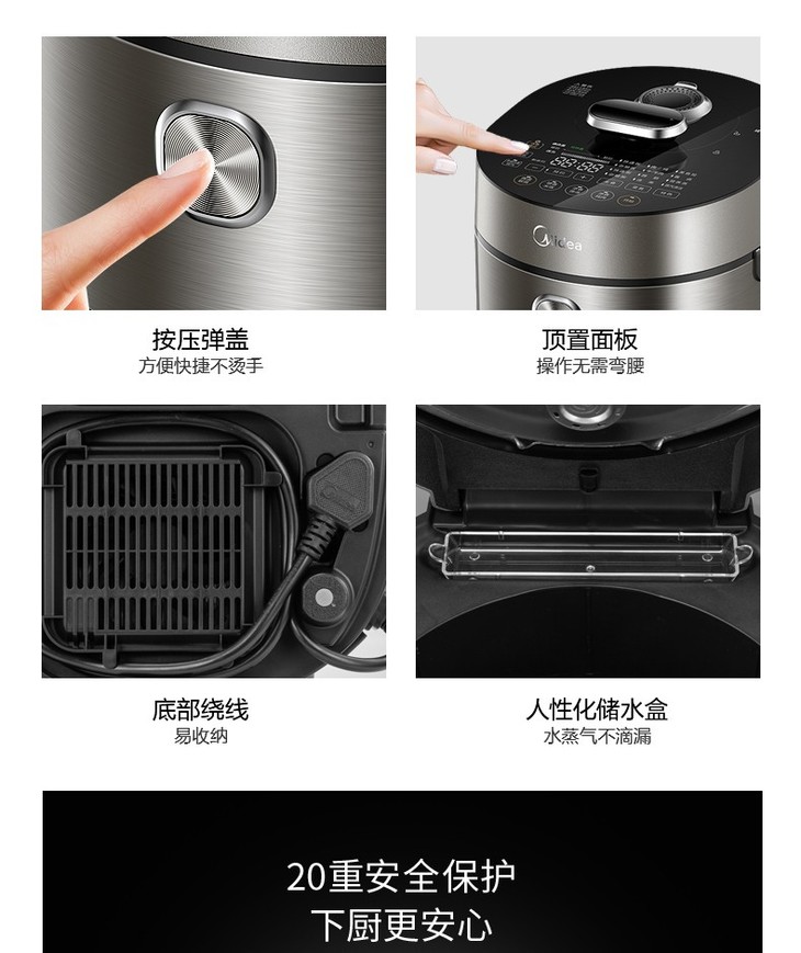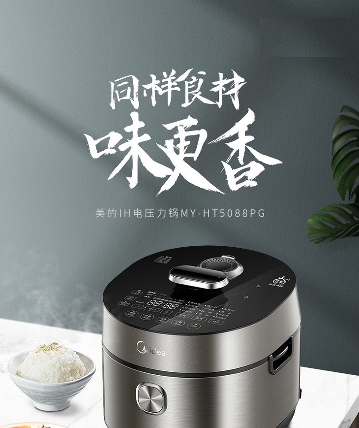 美的(508245) 电压力锅 HT5088PG IH电磁加热恒匀火 5L一锅双胆 精钢厚釜 智能预约 高压锅