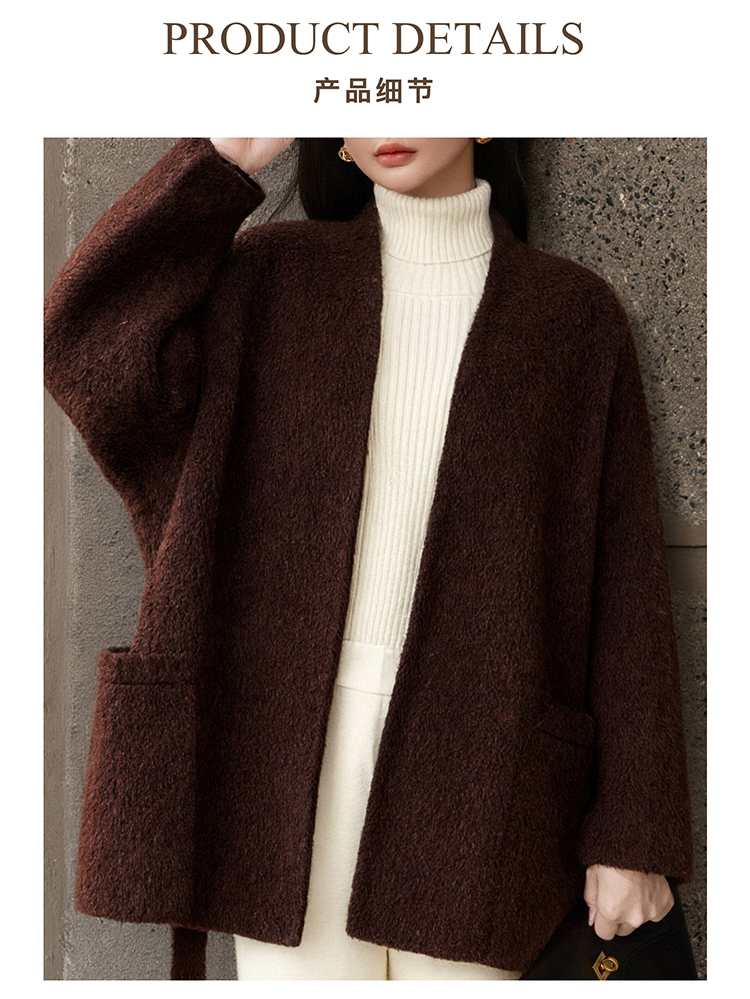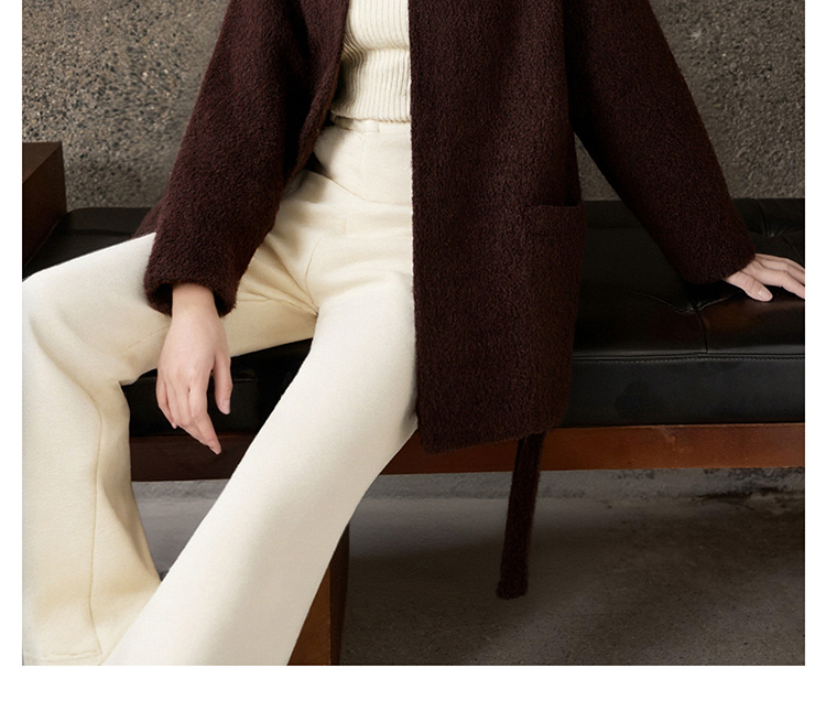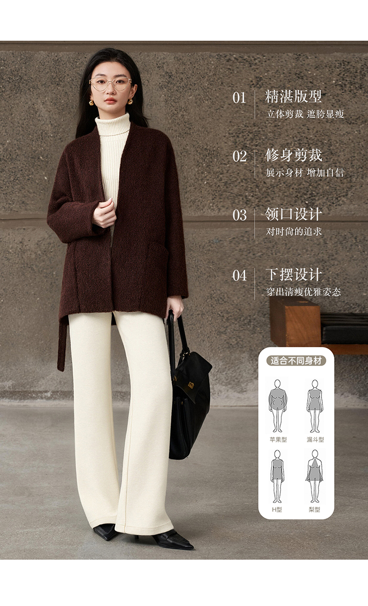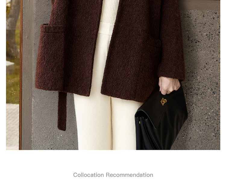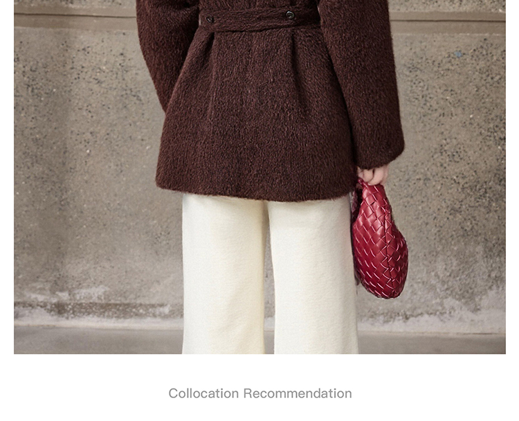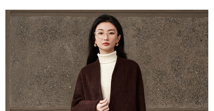 “流动的绒面画布” 苏丽长绒羊毛 × 高支羊毛的高定混纺毛呢大衣 丝滑长绒的柔糯手感 米思阳2025冬新款轻奢老钱法式慵懒短款毛呢大衣女5683