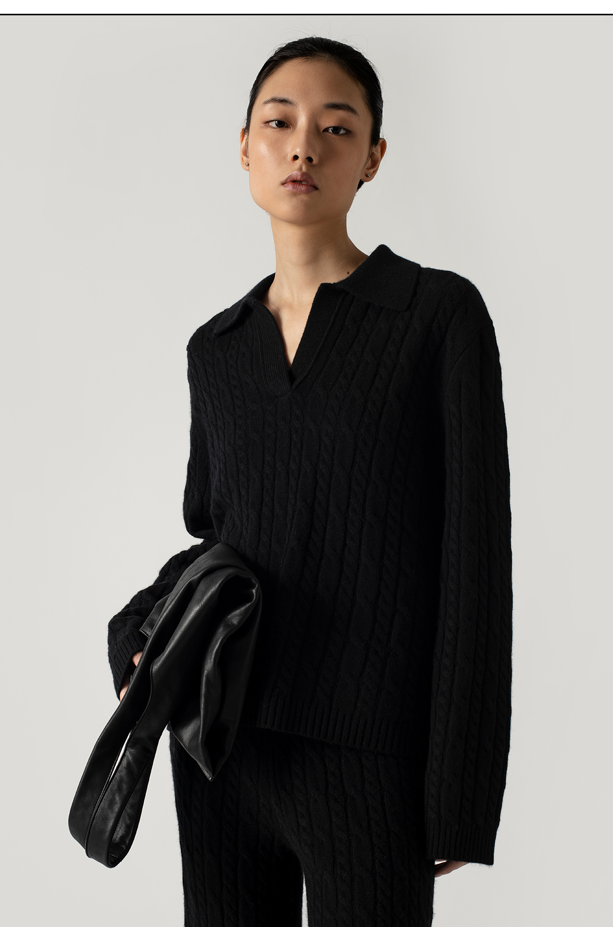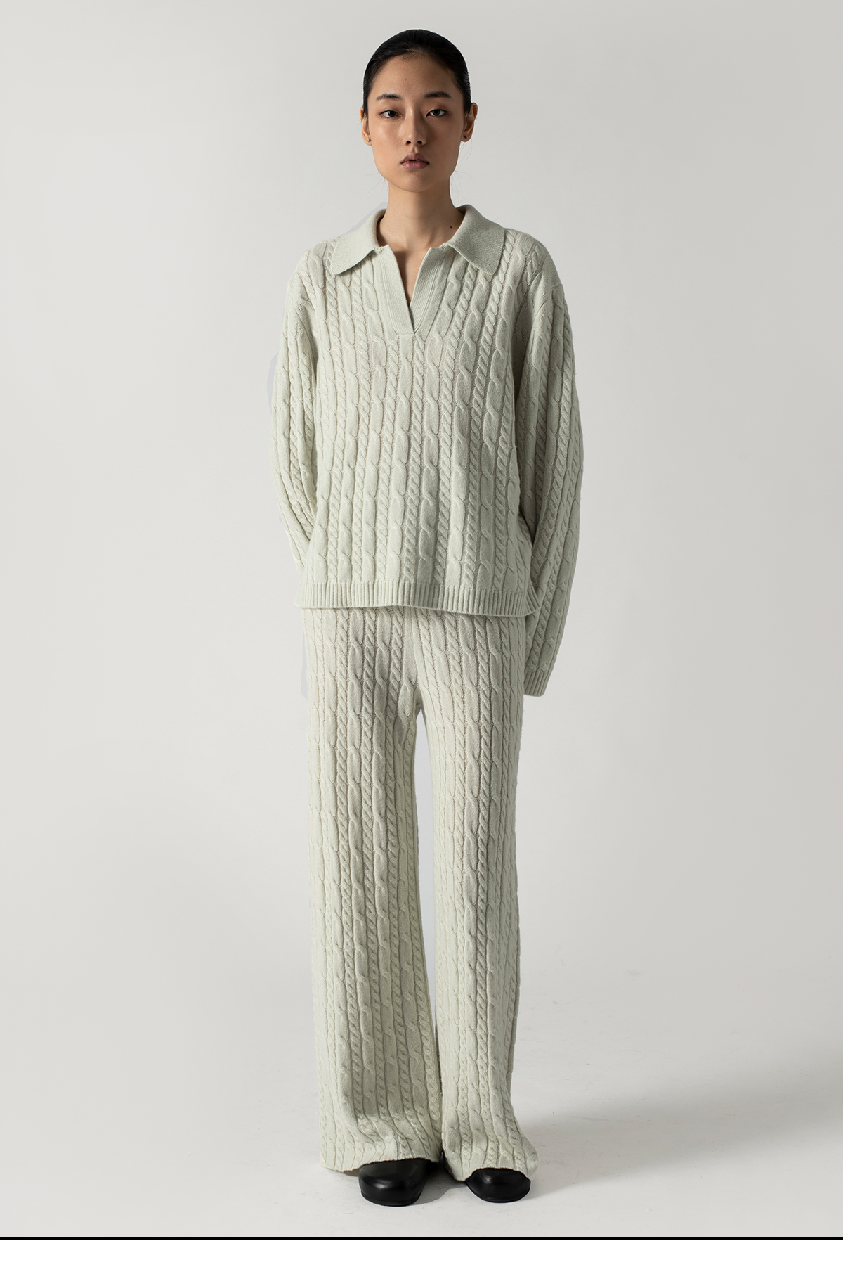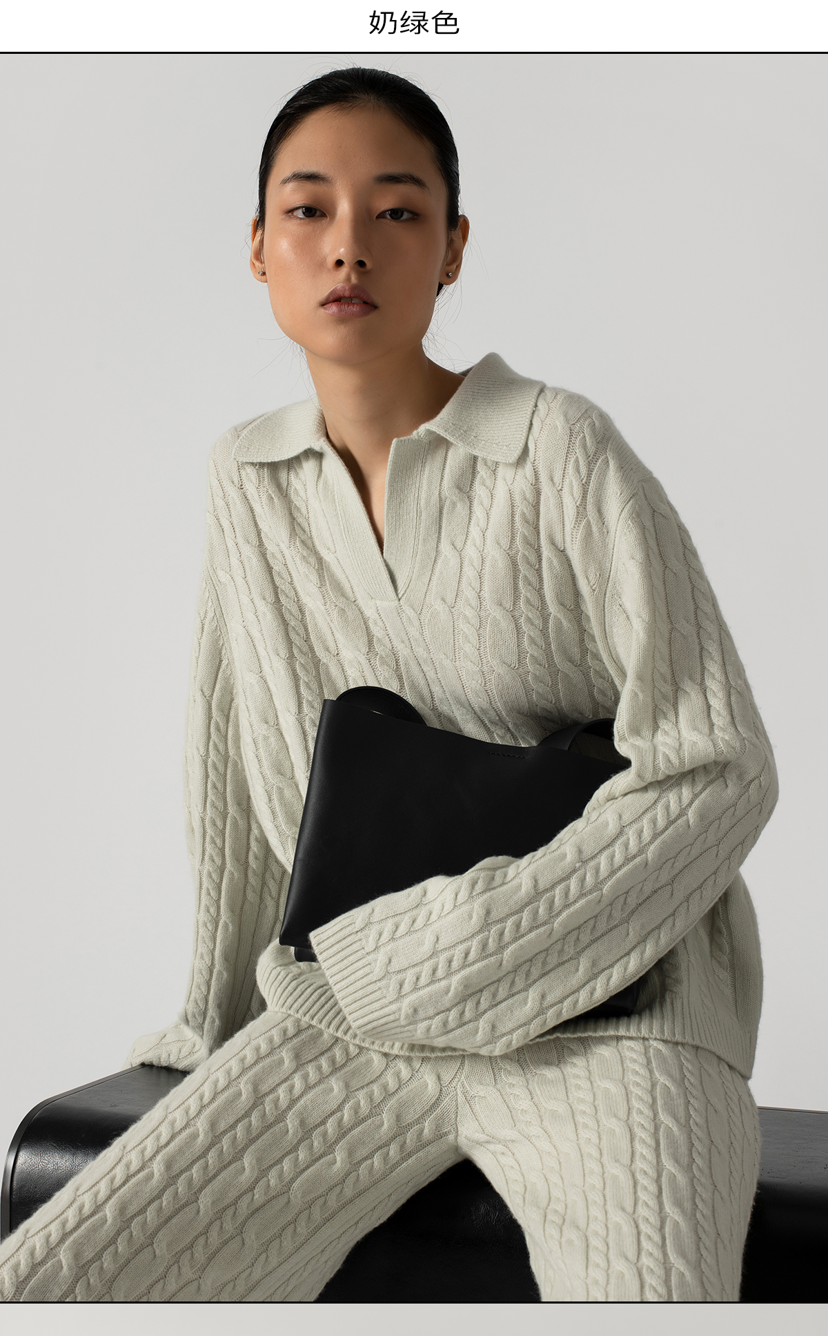 【石榴婆直播专享】 322工房复古绞花polo领针织衫2022新款羊绒羊毛宽松套头衫女A926