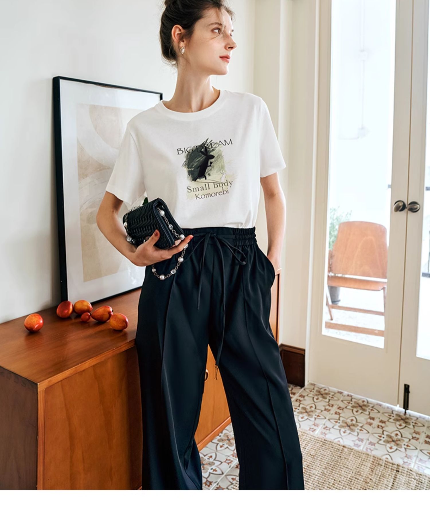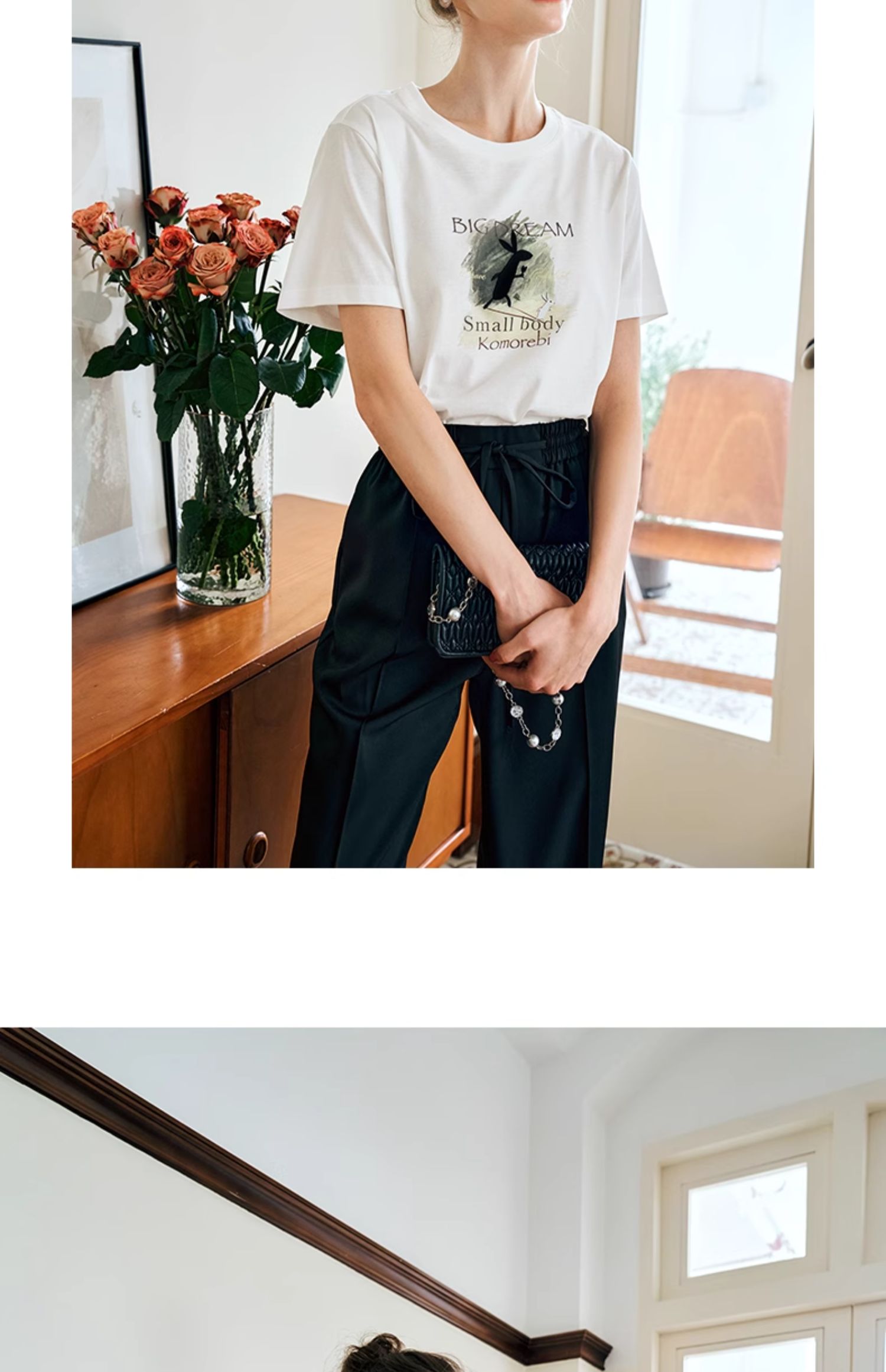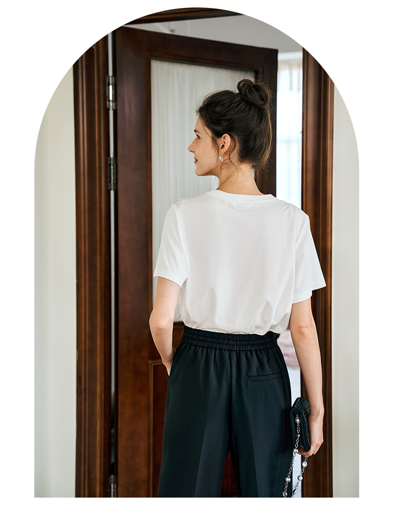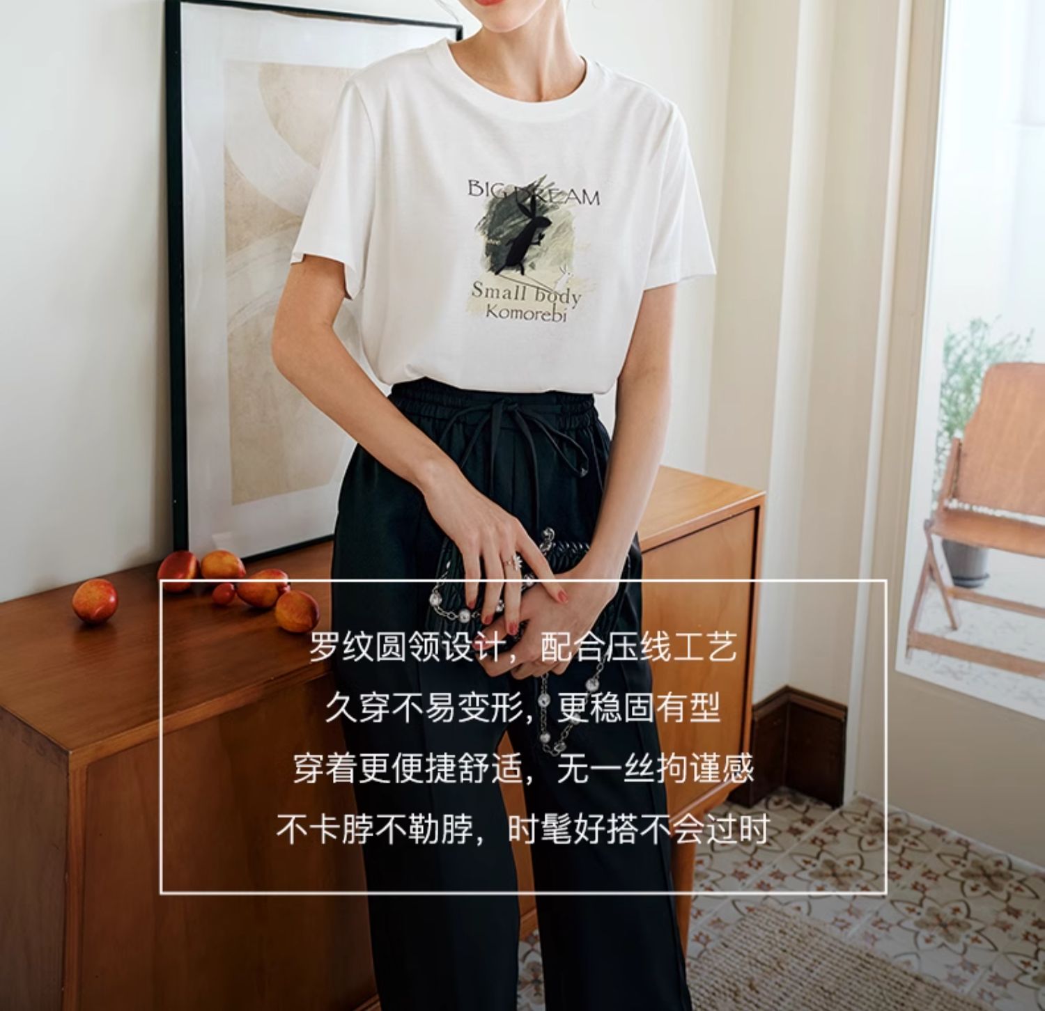 OLrain欧芮儿法式白色短袖T恤女夏2024新款钉珠印花圆领正肩上衣