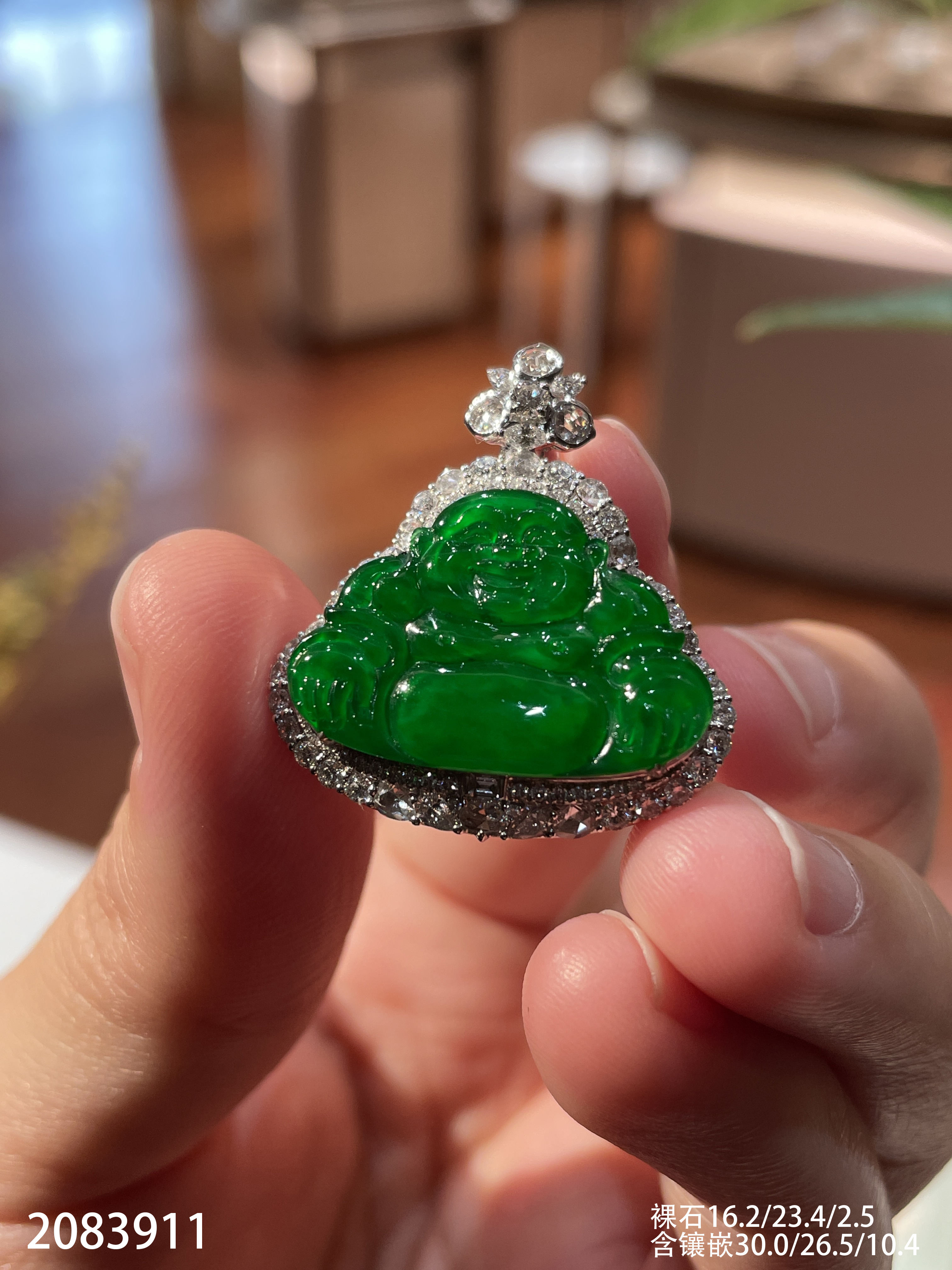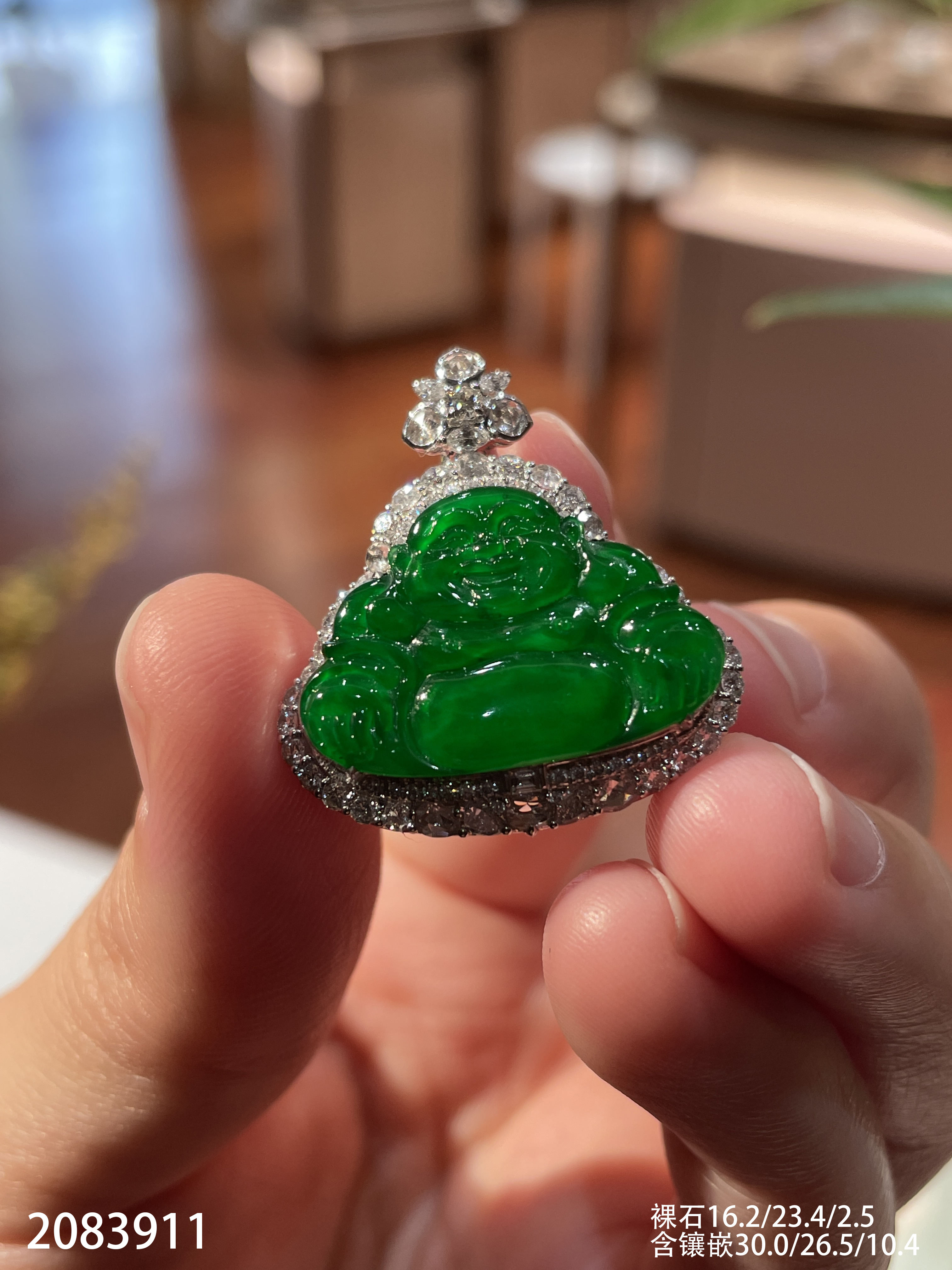 2083911,老坑高冰帝王绿佛公吊坠。具体价格微信咨询