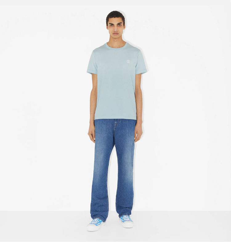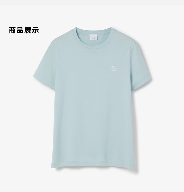 BURBERRY 巴宝莉 男士TB专属标识装饰刺绣棉质圆领短袖T恤 浅蓝色 8065401 B5183