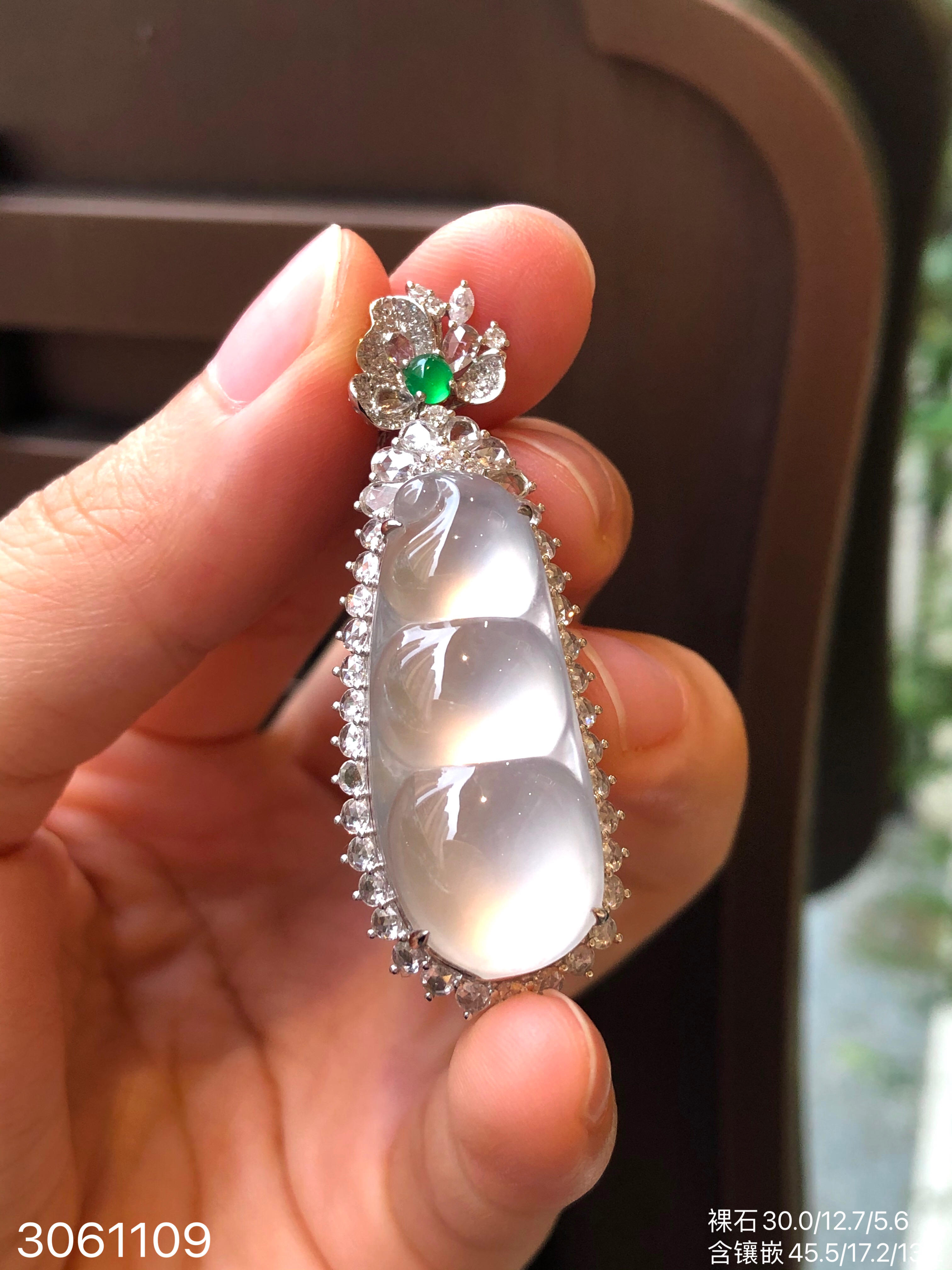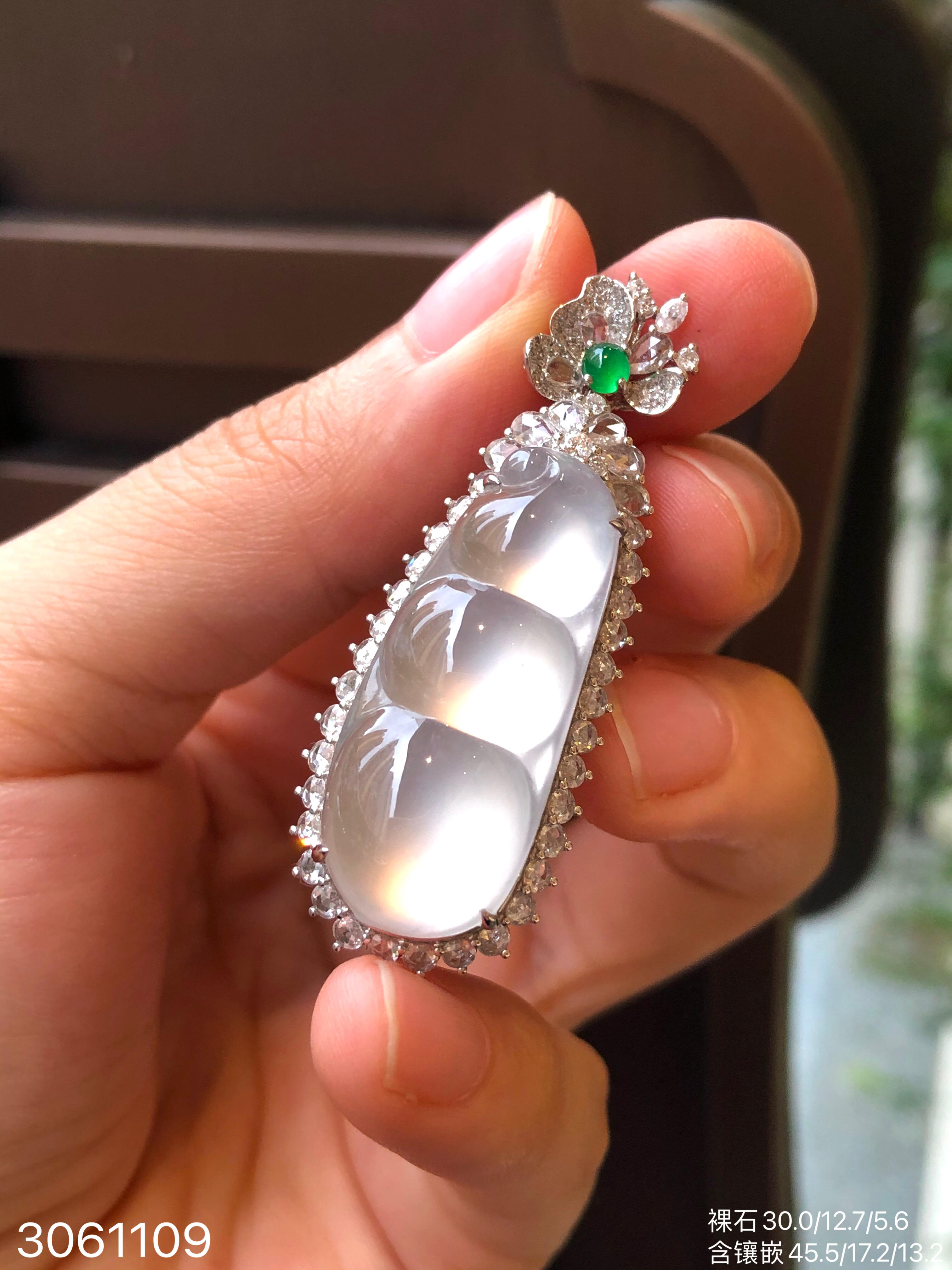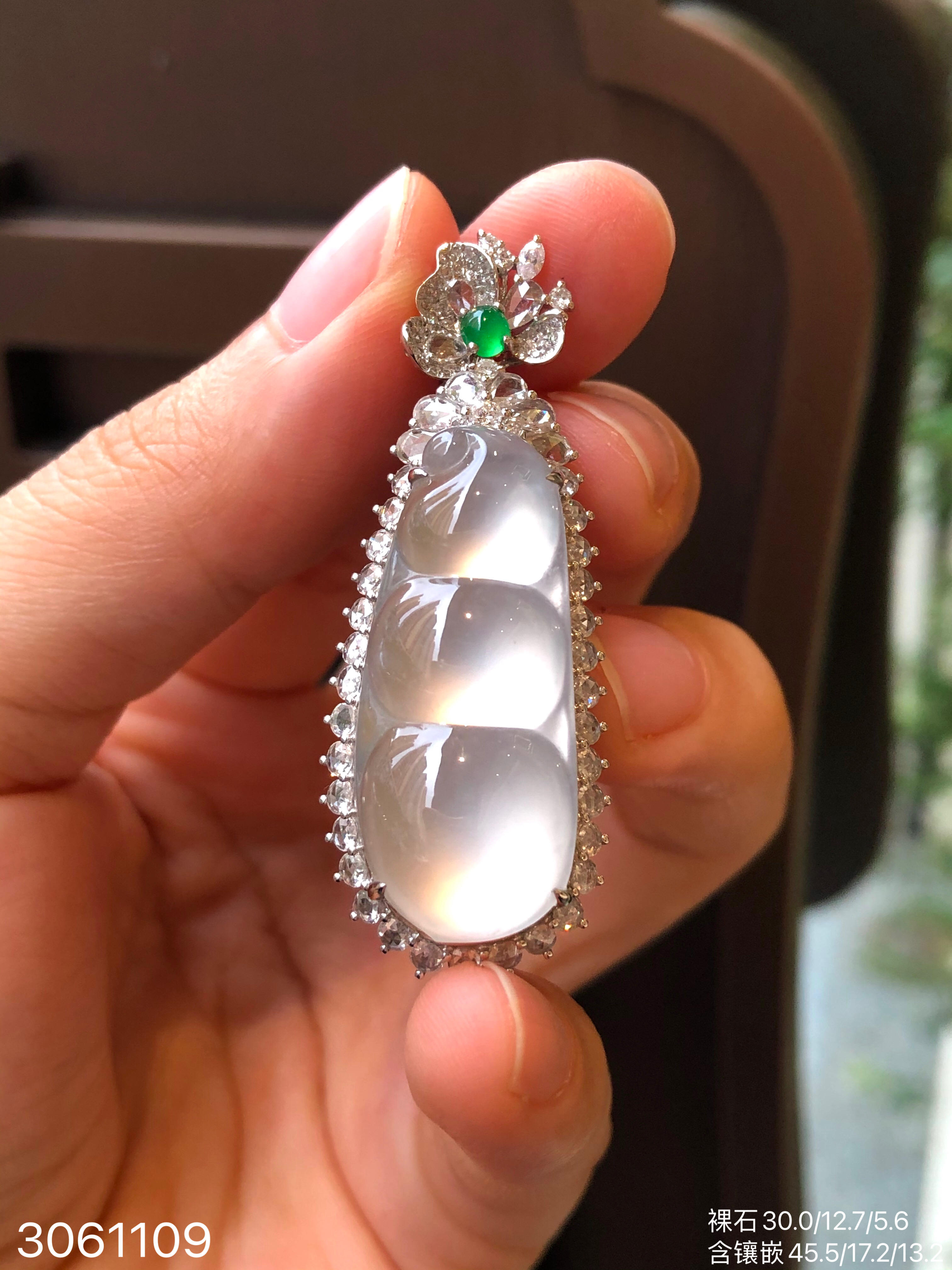 玻璃种飘翠玉兰花吊坠【6250203】具体价格微信咨询