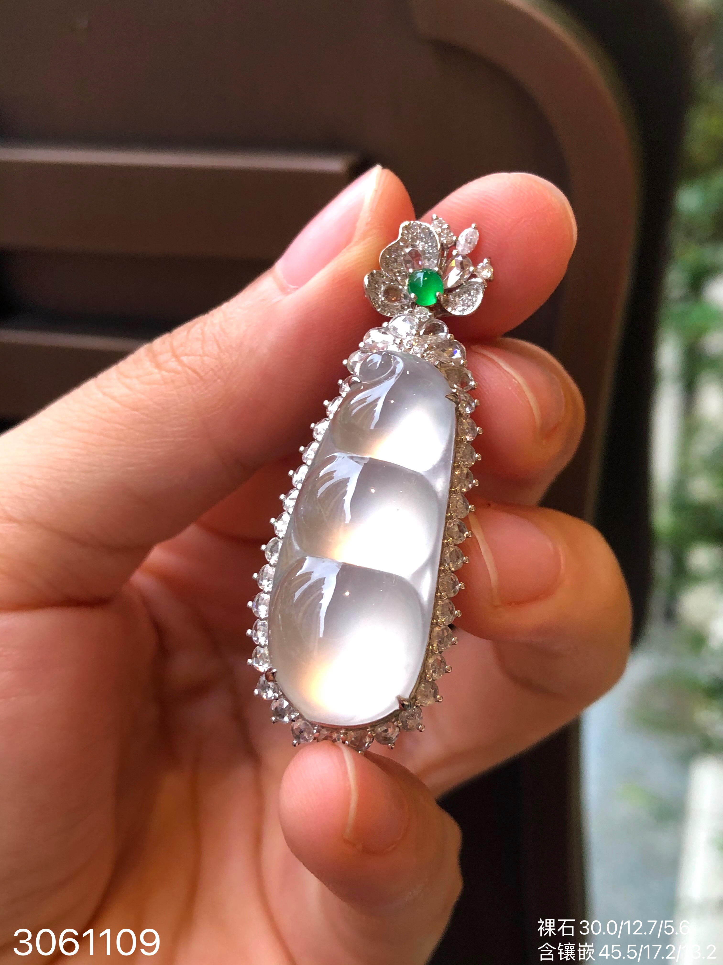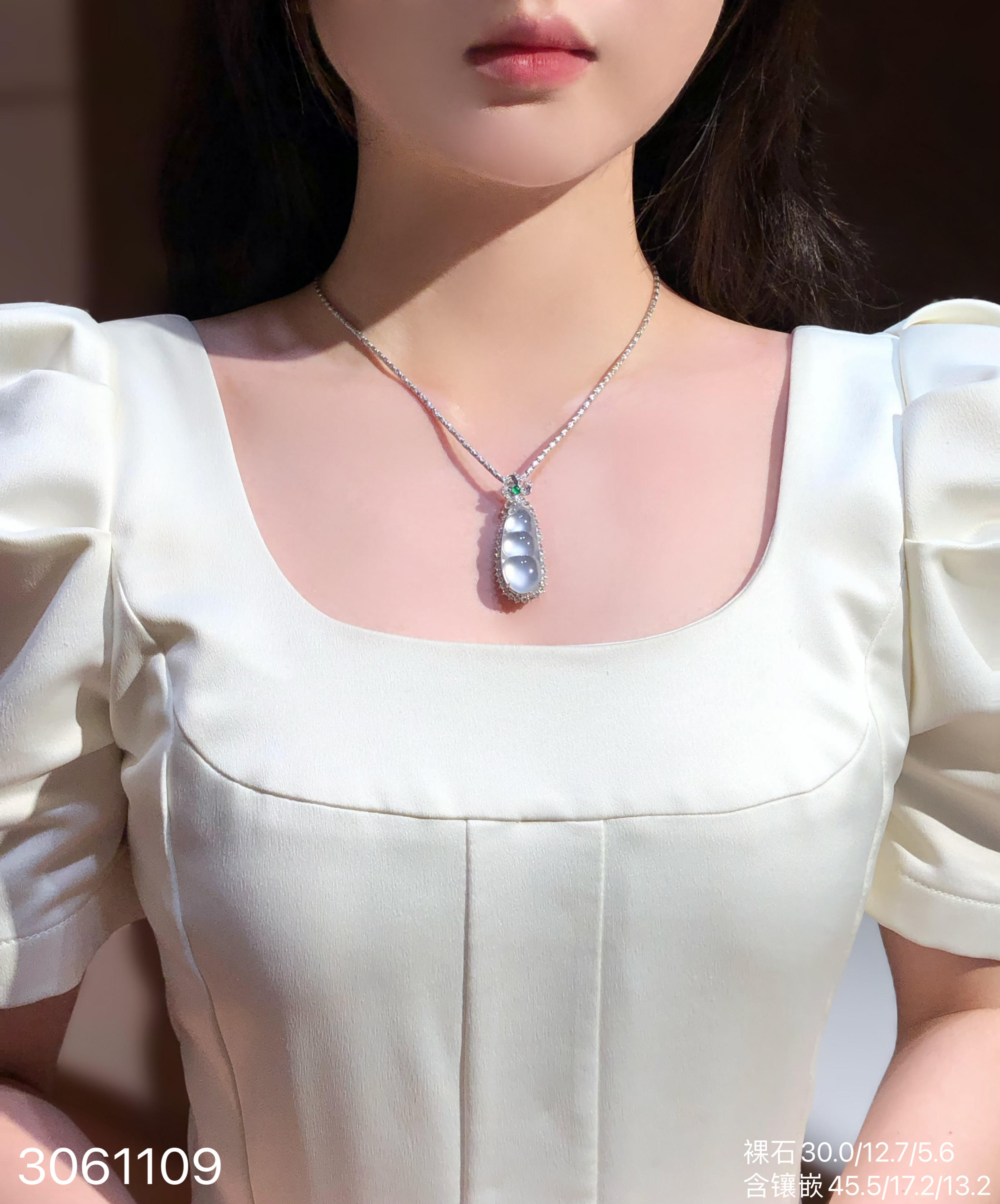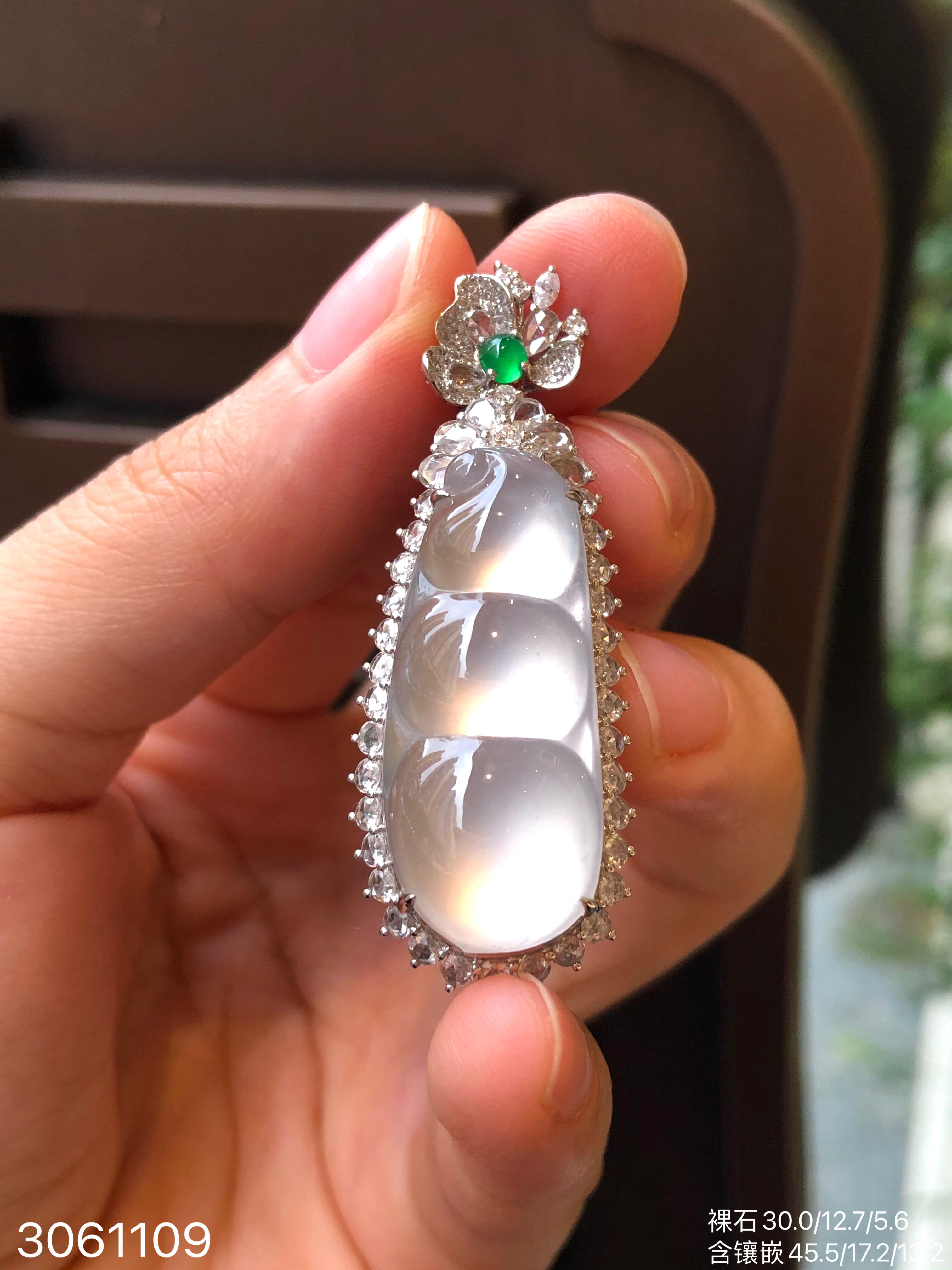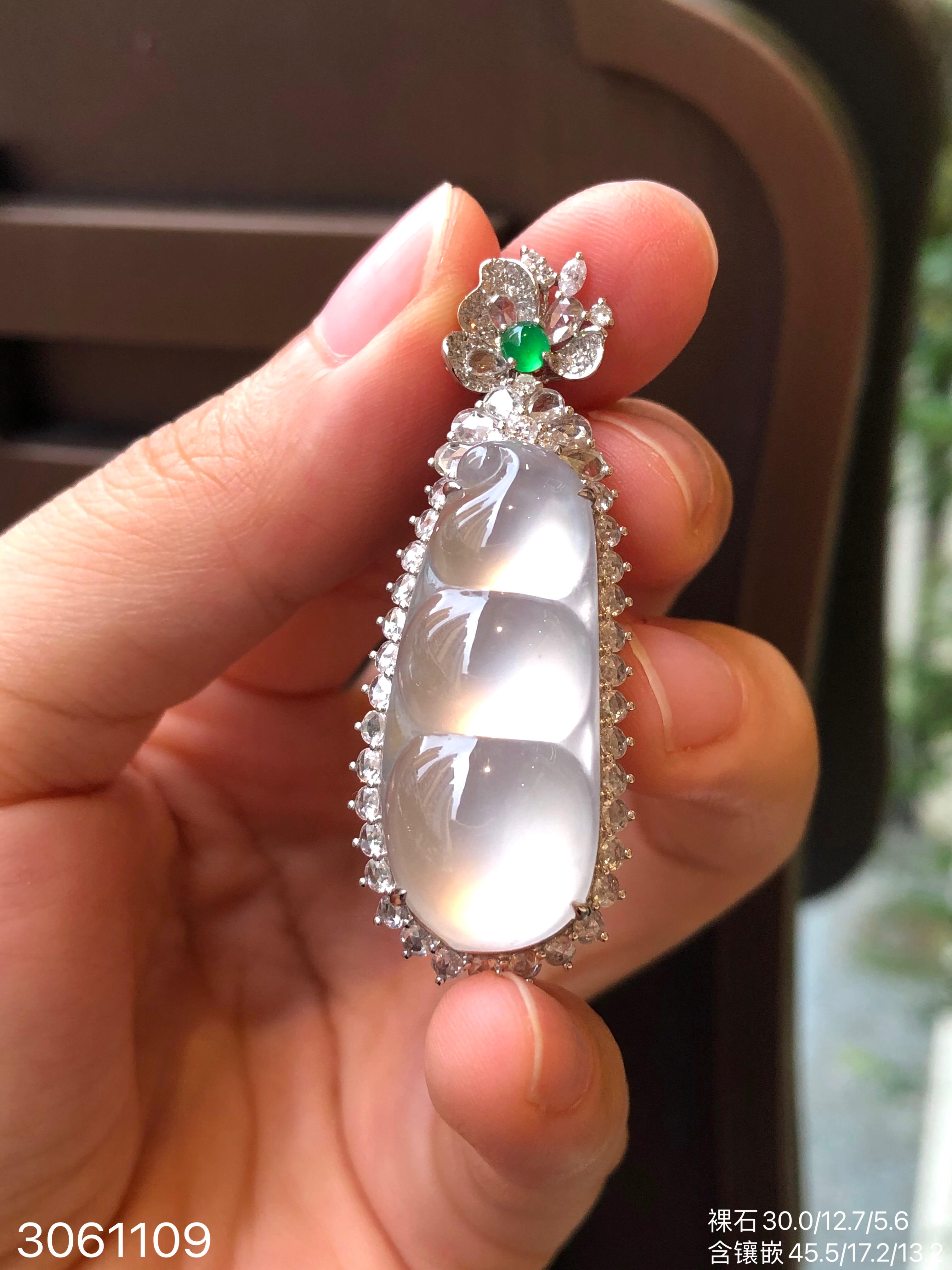 玻璃种飘翠玉兰花吊坠【6250203】具体价格微信咨询