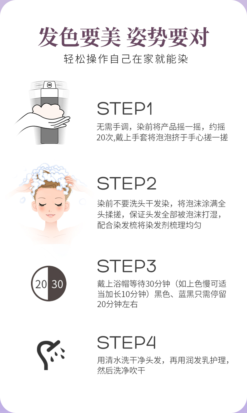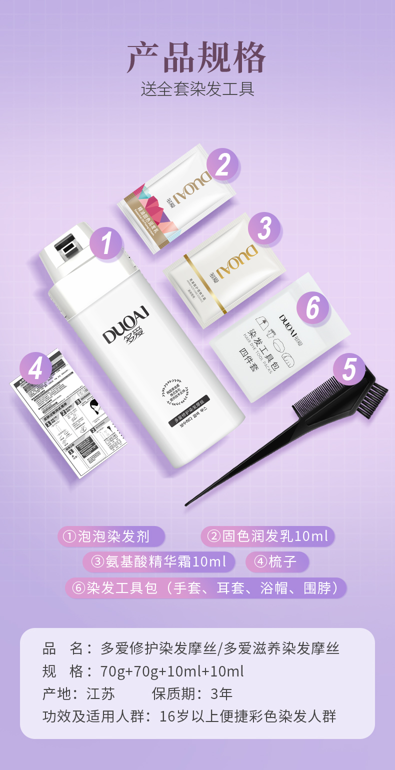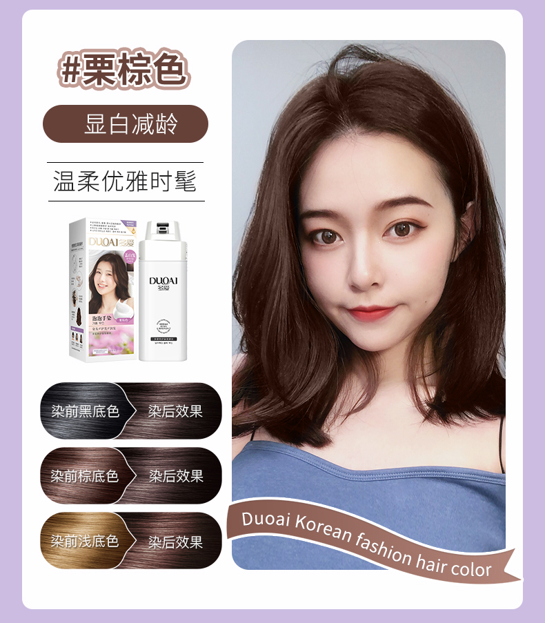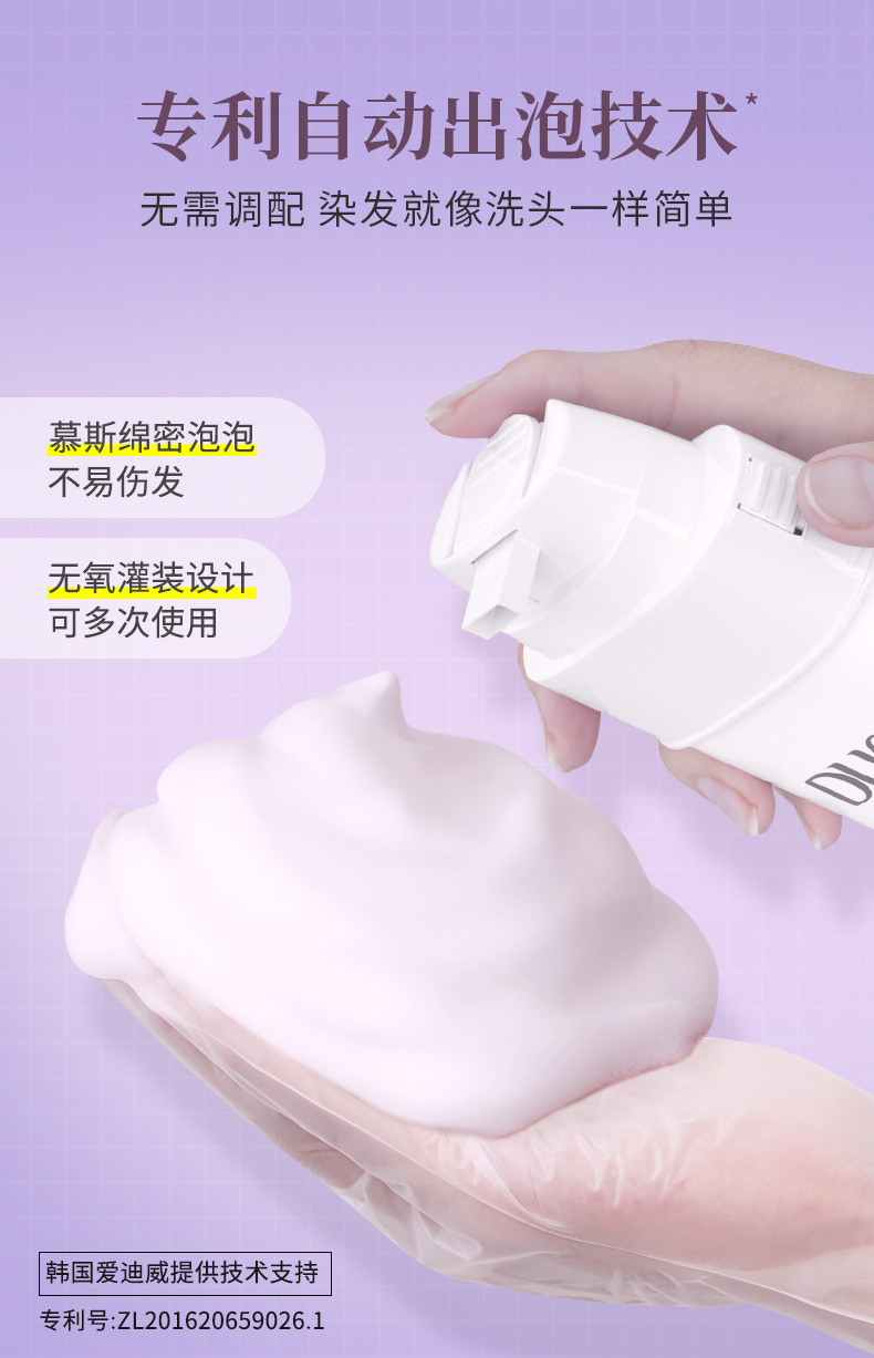 【遮白发】新款多爱染发剂 慕斯泡泡沫膏植物提取 自己在家遮白发 男女可用 泵头设计,无梳子