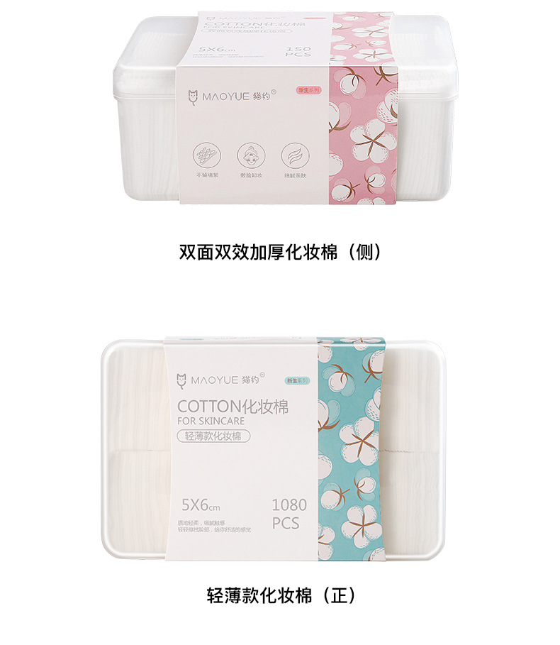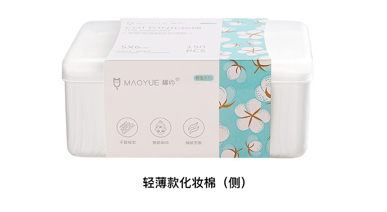 「双面厚款!三层设计」猫约盒装化妆棉三层150片 夹棉压边卸妆棉厚薄款湿敷卸妆棉片彩妆;官网特供