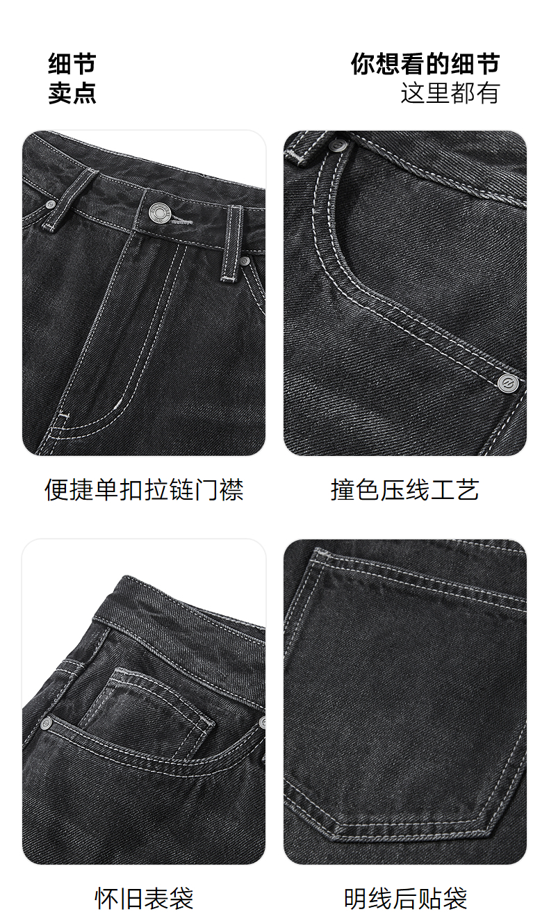 GXG男装 经典明线压线时髦经典宽松直筒牛仔长裤 2025秋季热卖
