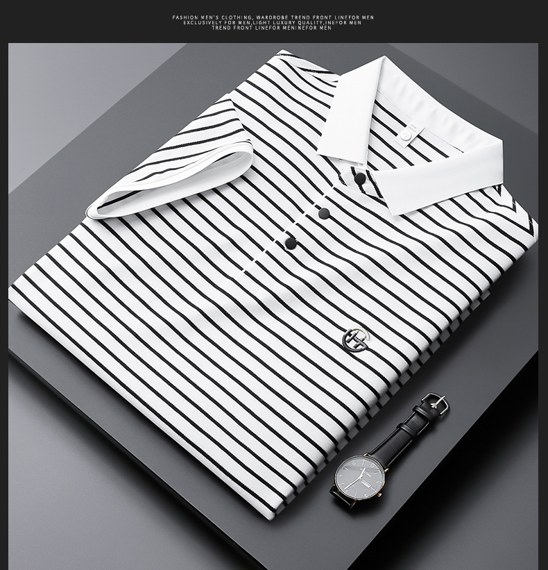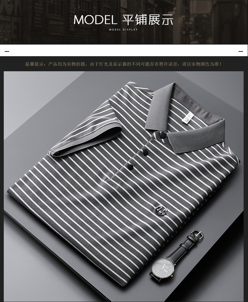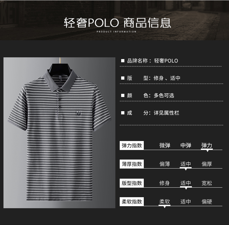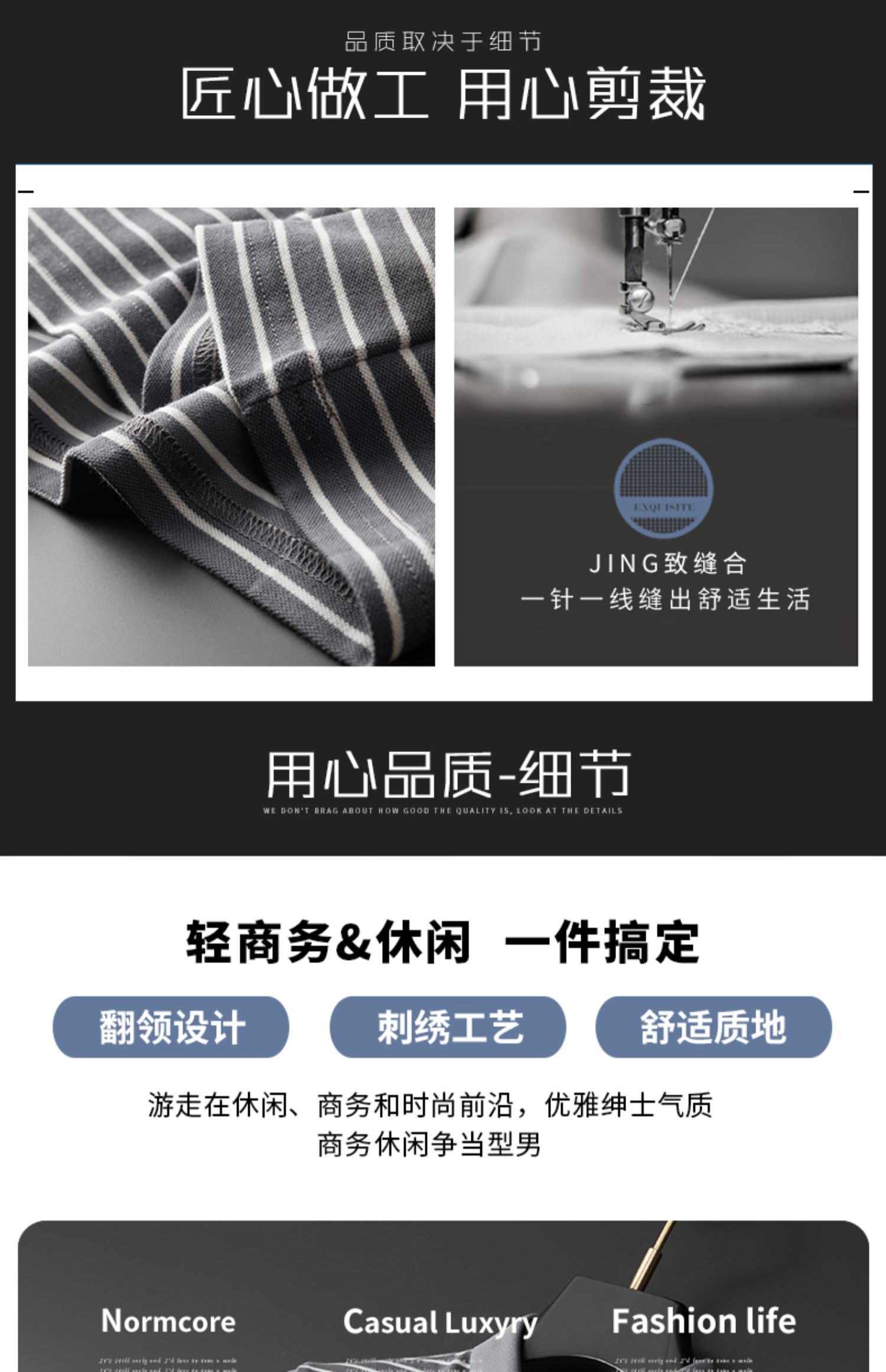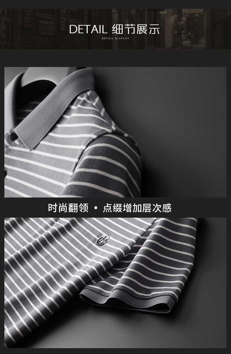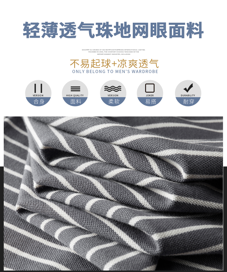 「四款配色!珠地网眼面料」夏季刺绣条纹短袖polo衫 男修身潮休闲商务翻领t恤保罗衫上衣