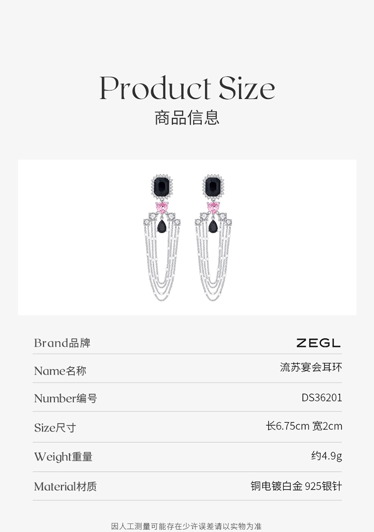 ZEGL设计师宴会系列黑色流苏耳环女2022年新款潮耳钉秋冬复古耳饰