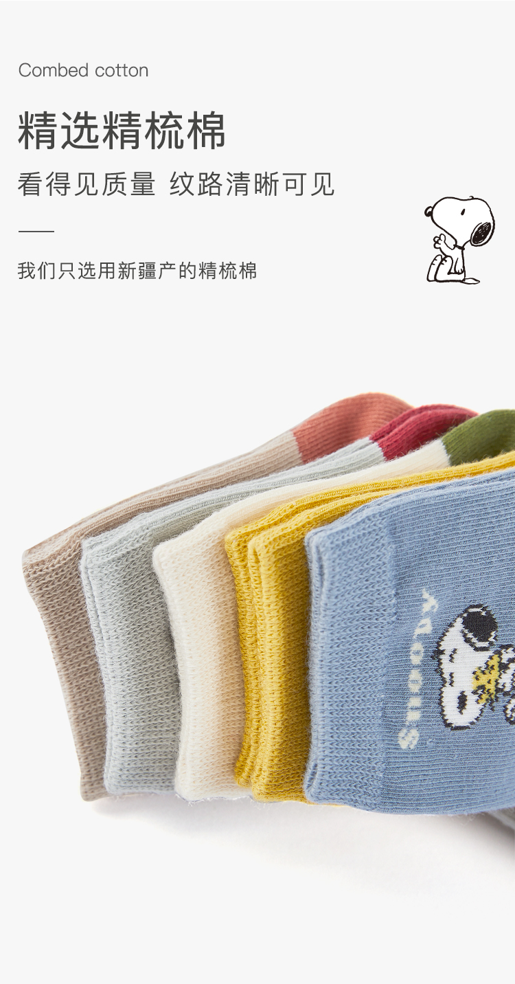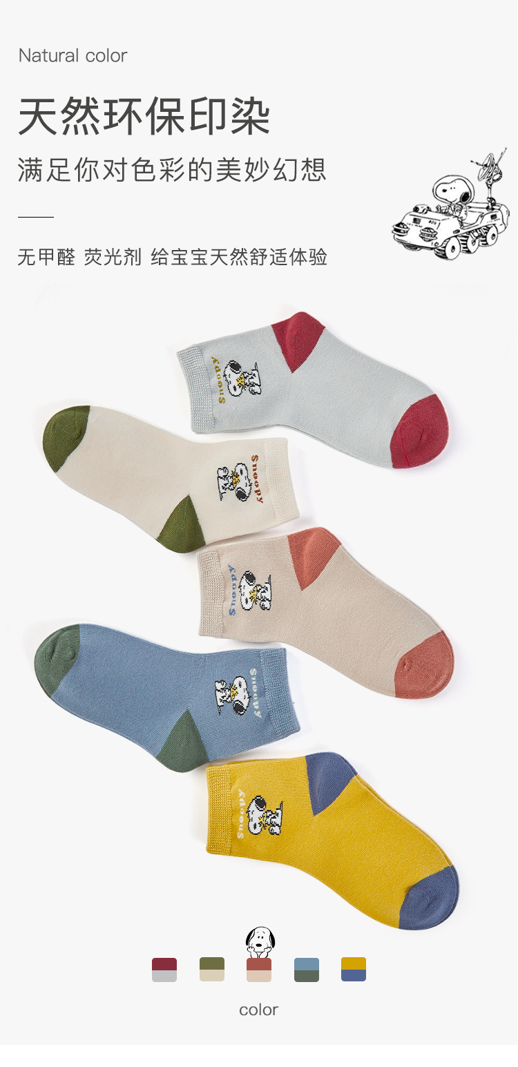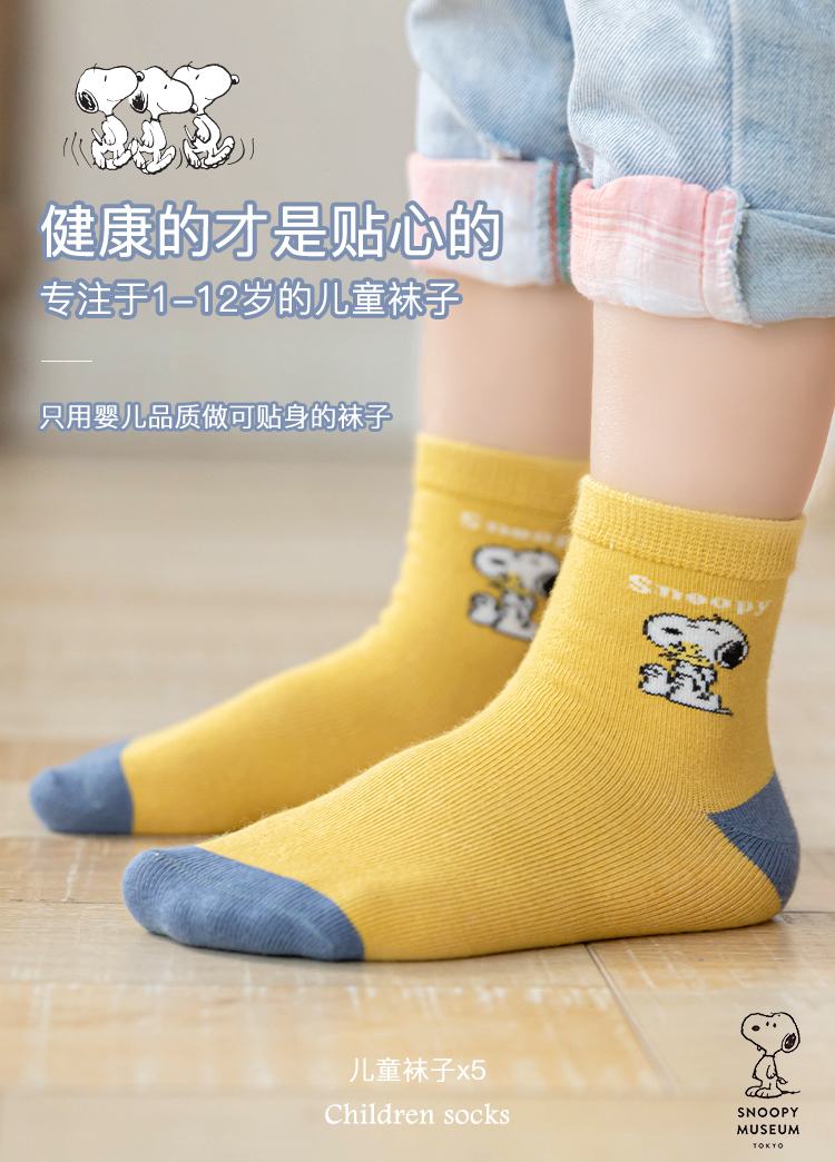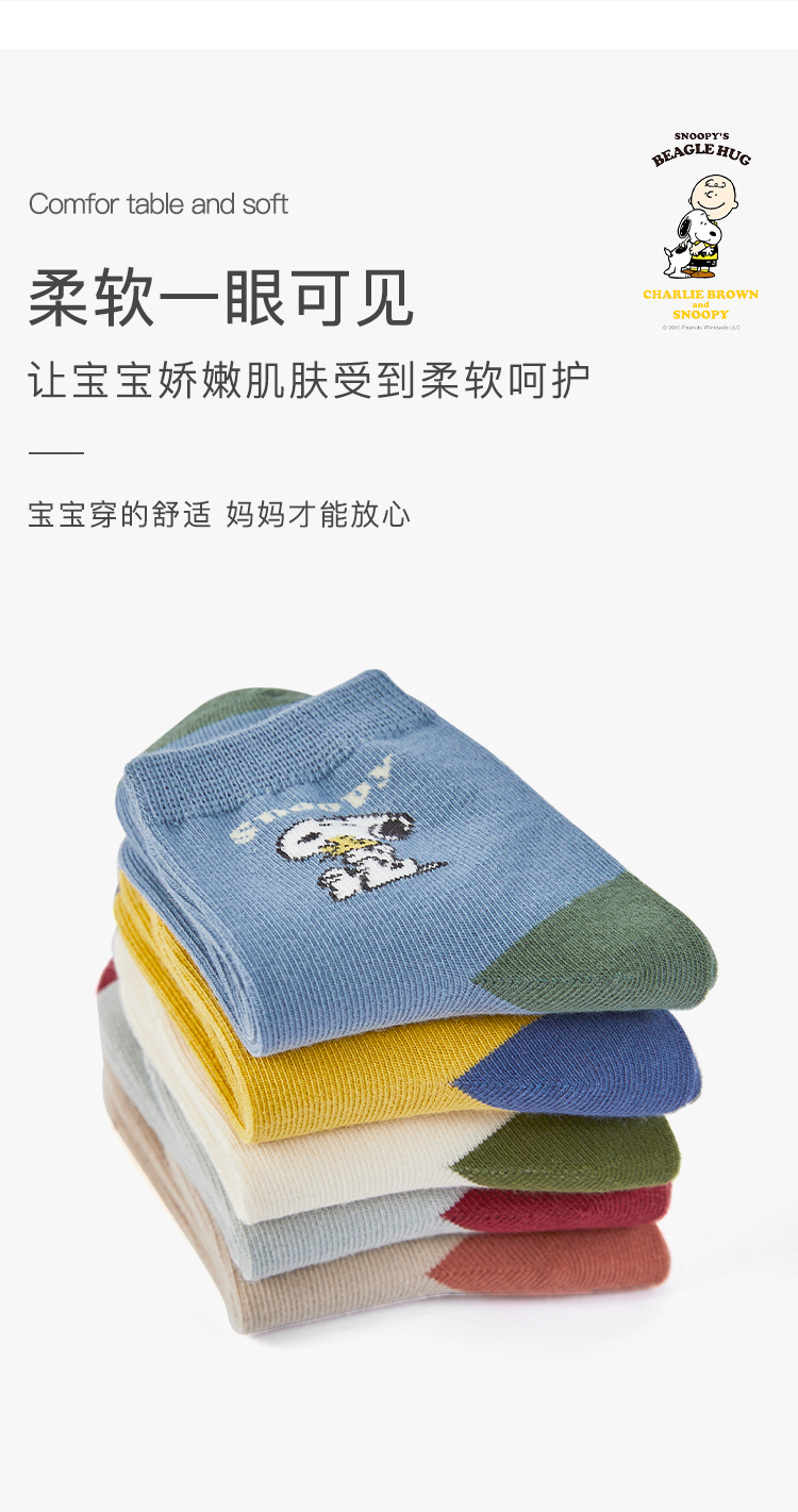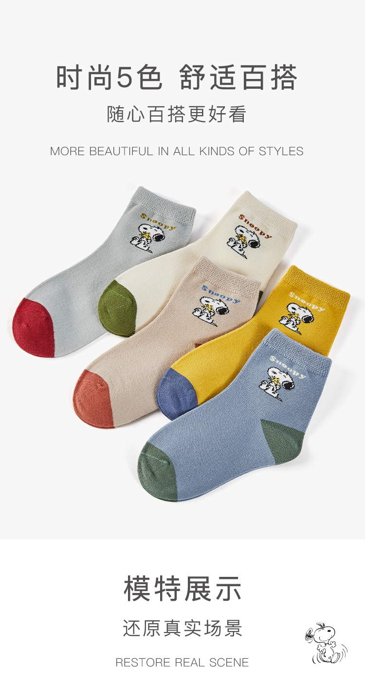 【五双装】史努比春秋卡通男童拼色舒适精梳棉舒适儿童袜