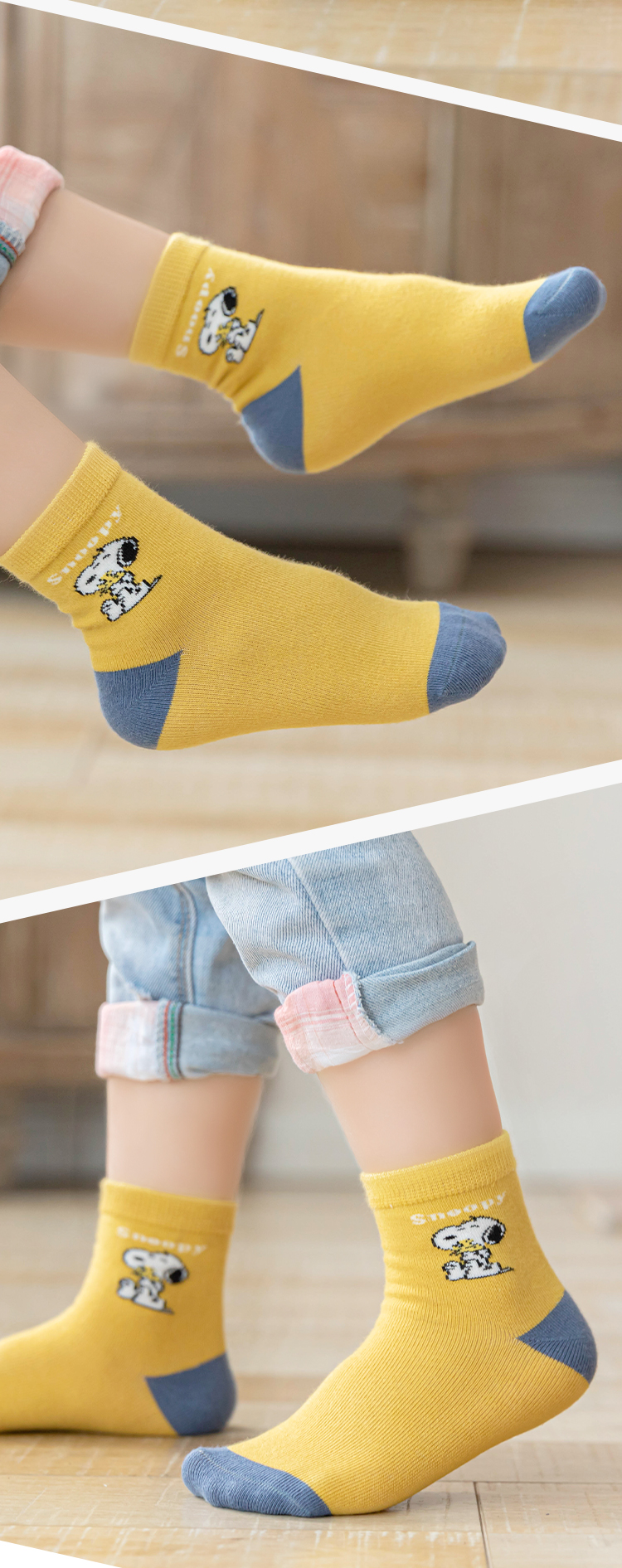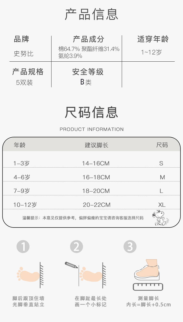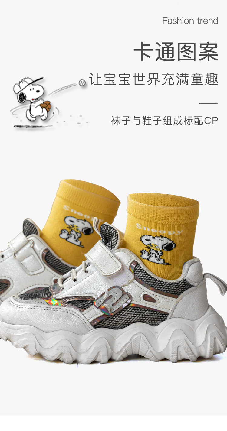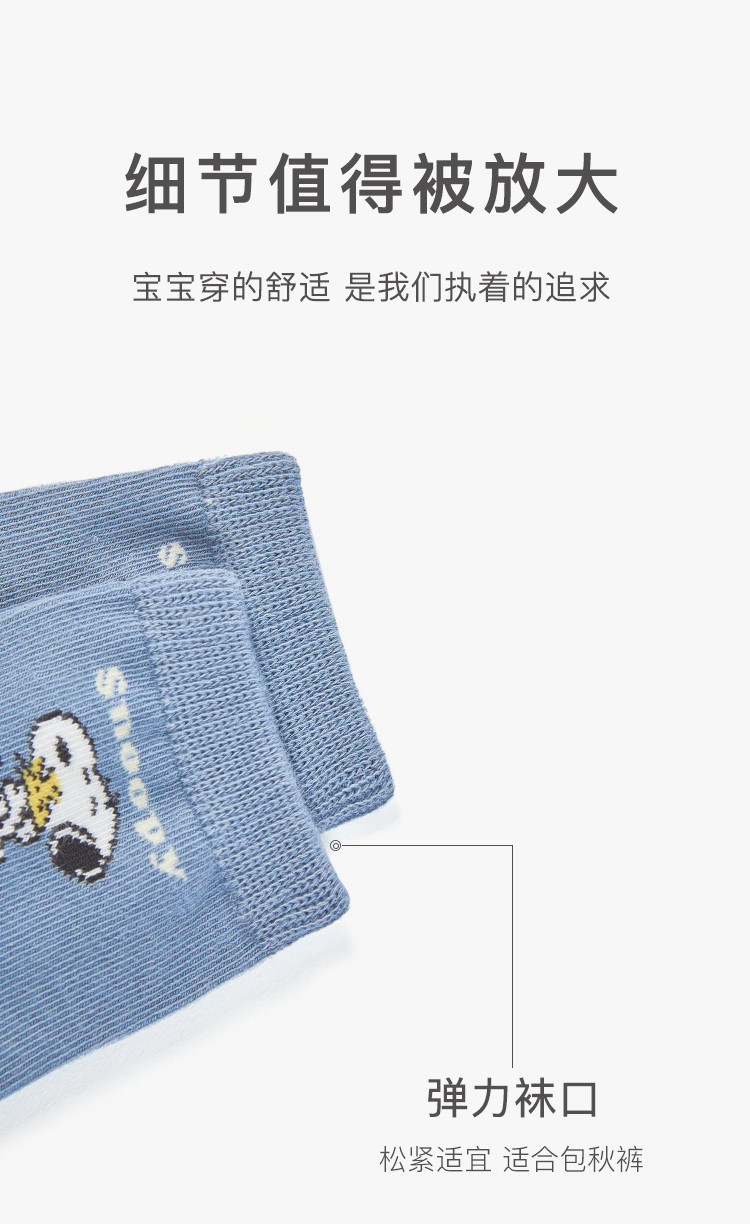 【五双装】史努比春秋卡通男童拼色舒适精梳棉舒适儿童袜
