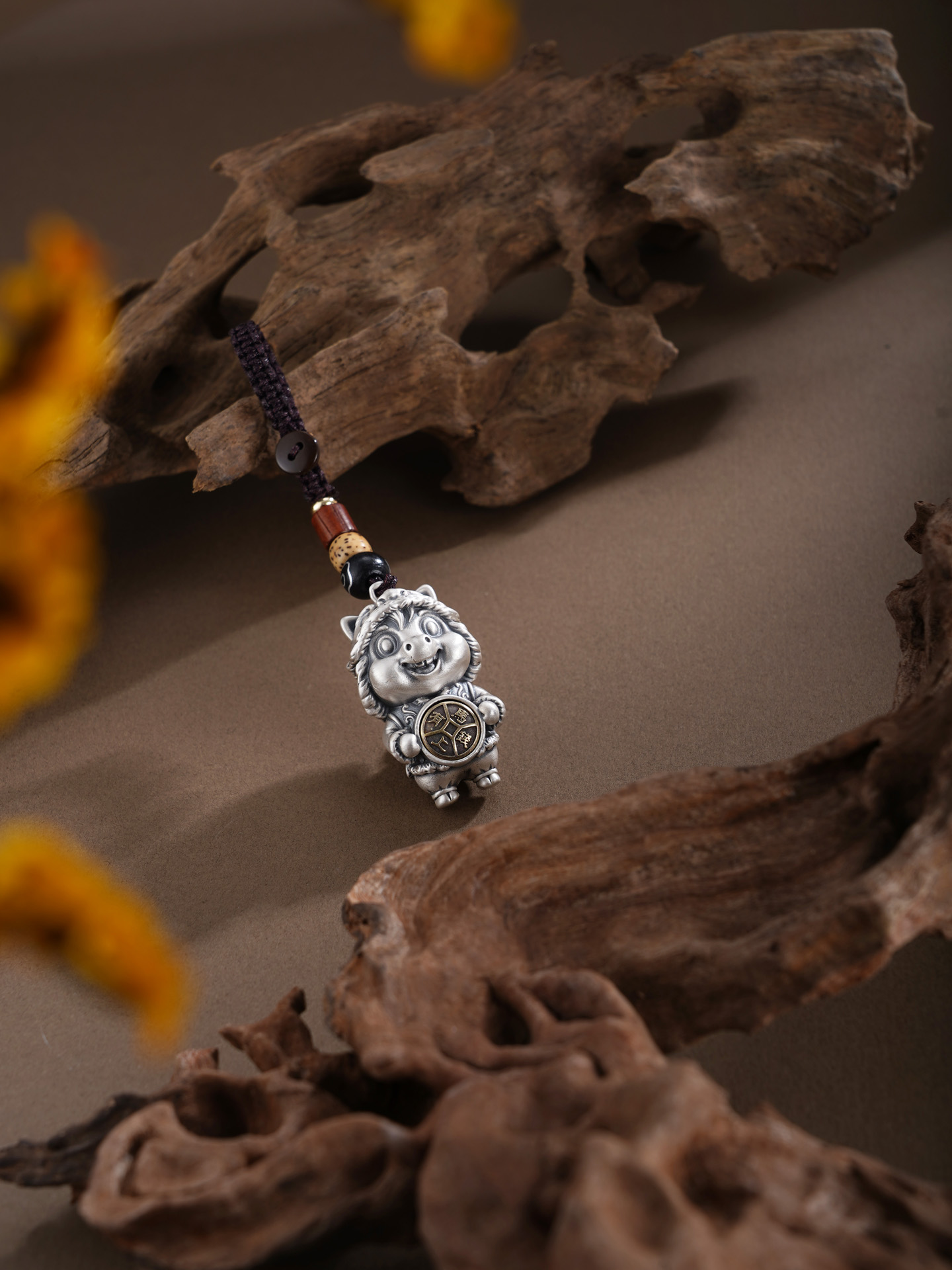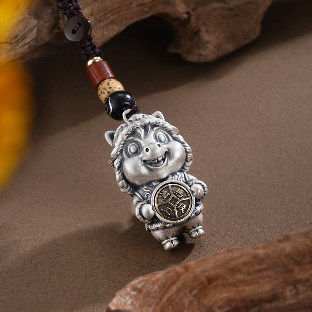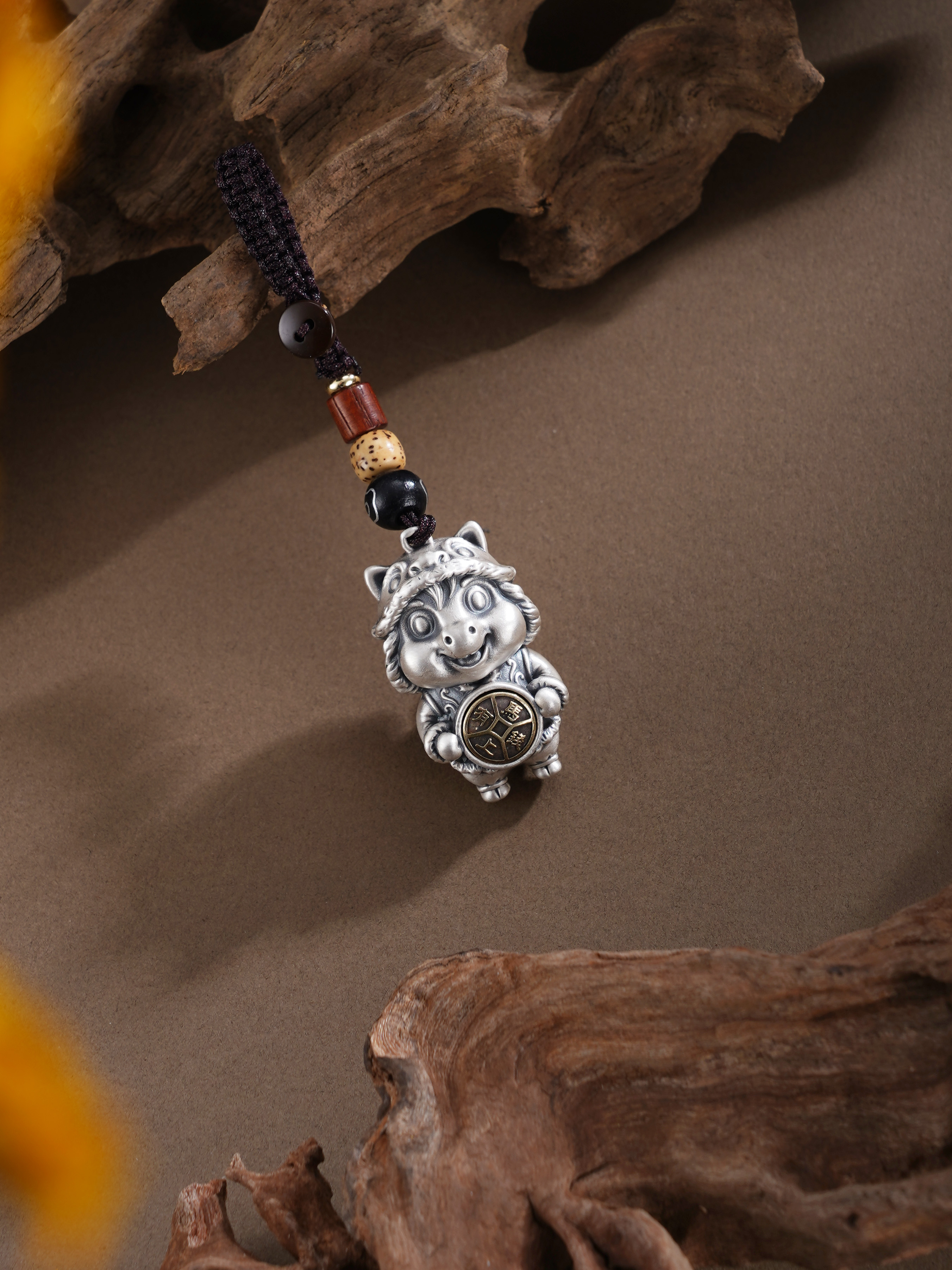 【寓意】:以纯银塑造灵动小马,怀抱可转动铜钱,取“马到成功”之吉兆,融“钱币转动”之巧思。寓意时来运转,好运加马,福运常伴。