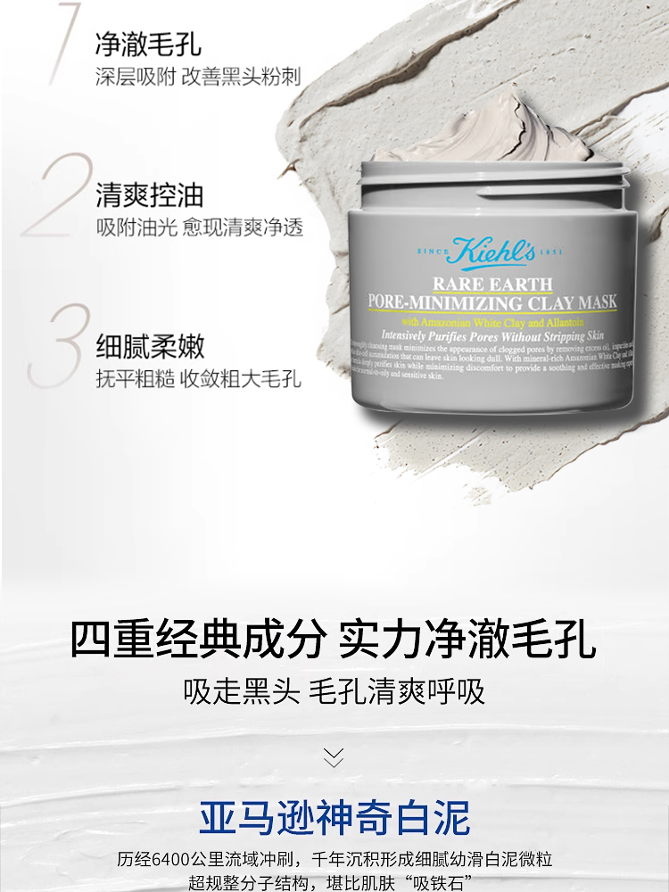 【跨境】Kiehls科颜氏亚马逊白泥面膜2代125ml 25年新版 效期:2028.02
