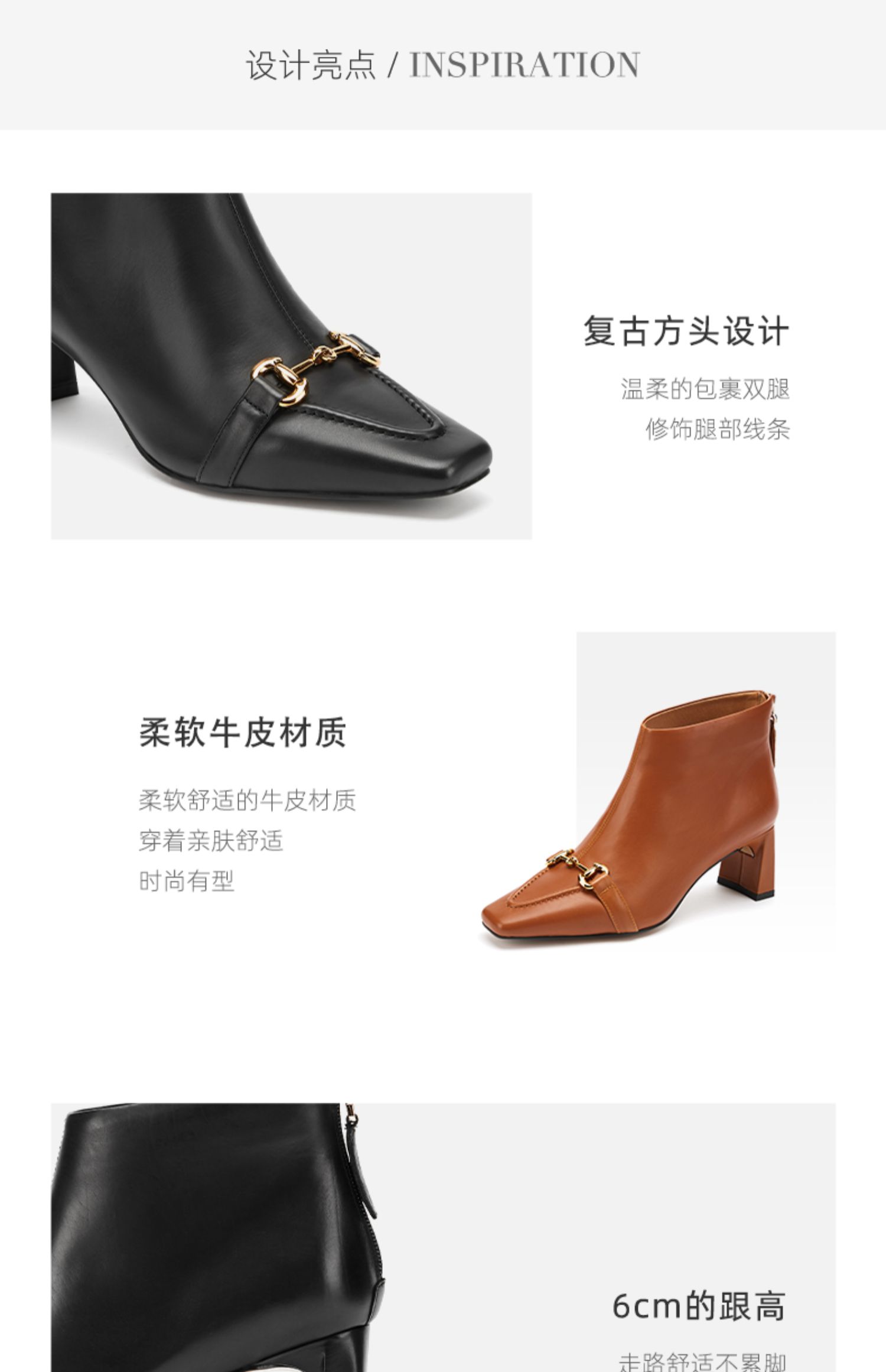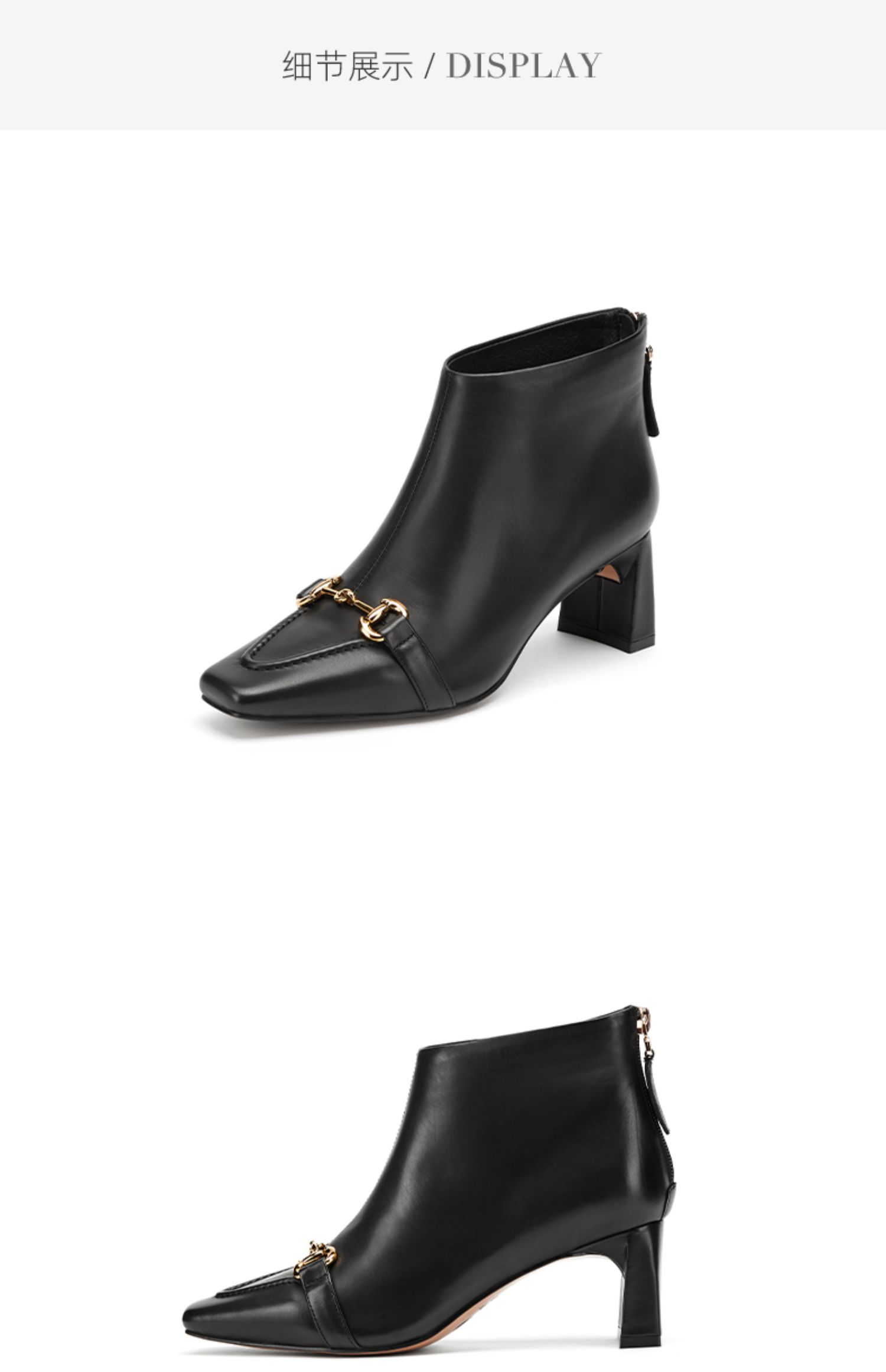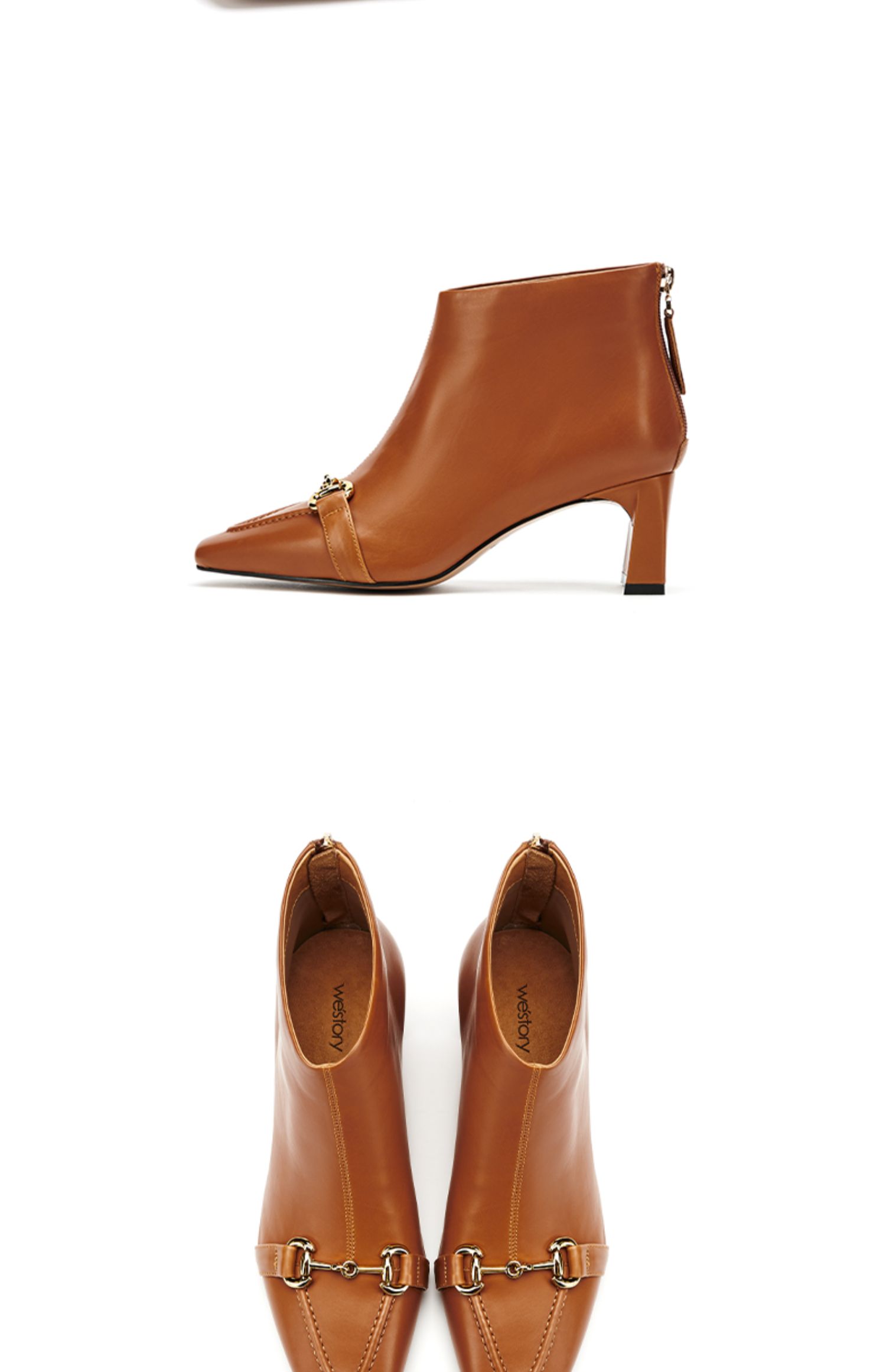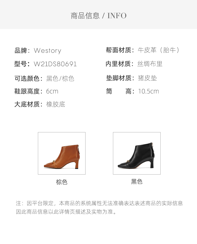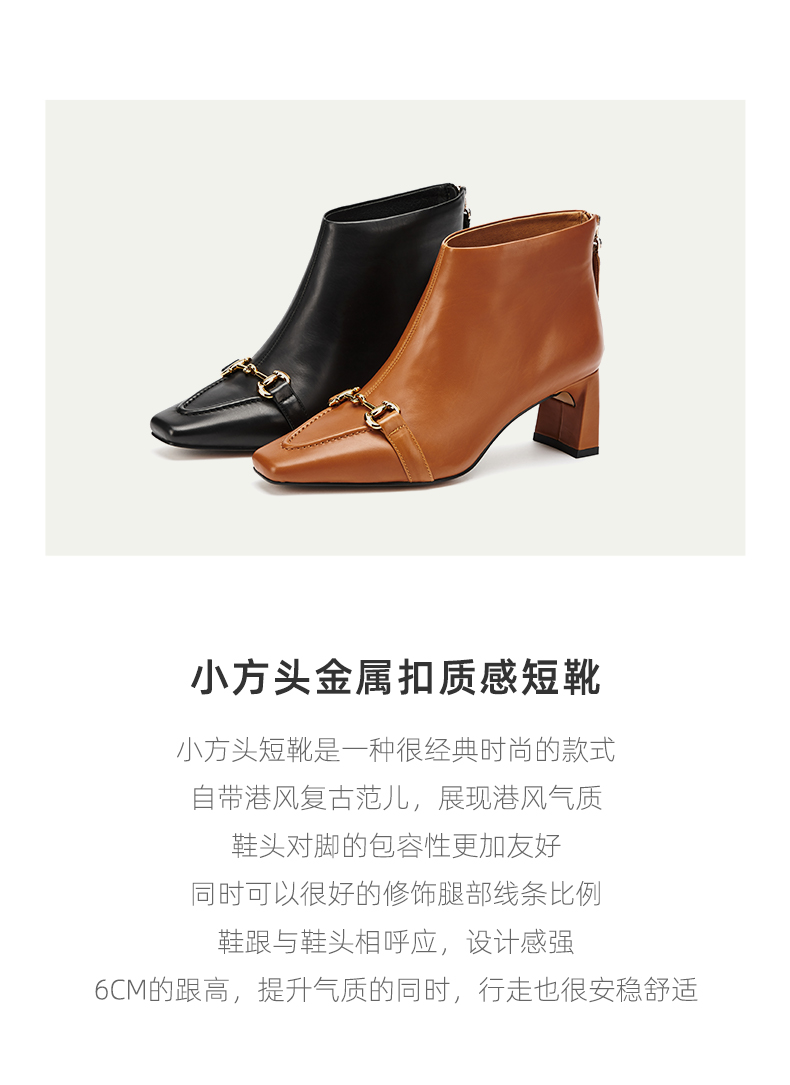westory2021秋季新款英伦风小方头短靴金属扣质感女靴W21DS80691