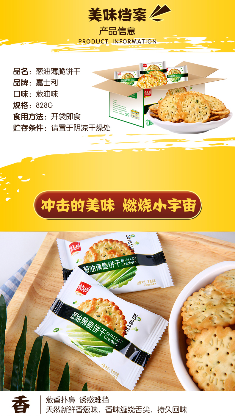 嘉士利葱油薄脆饼干828g/箱 独立包装 香葱饼咸味 食品零食 代餐 早餐 大礼包