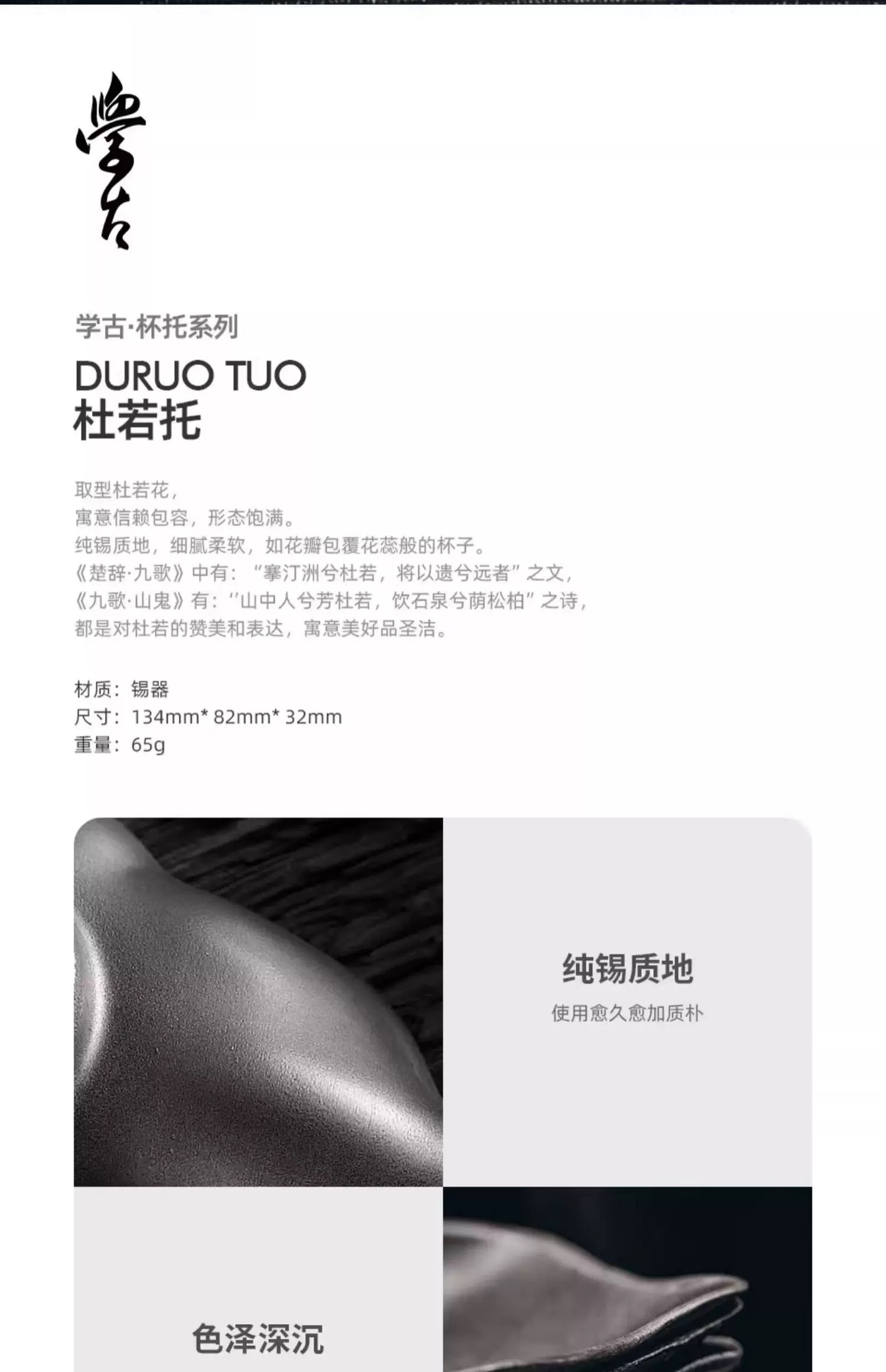 学古|杜若茶托 中式复古纯锡制品茗收藏把玩茶杯托 6只装