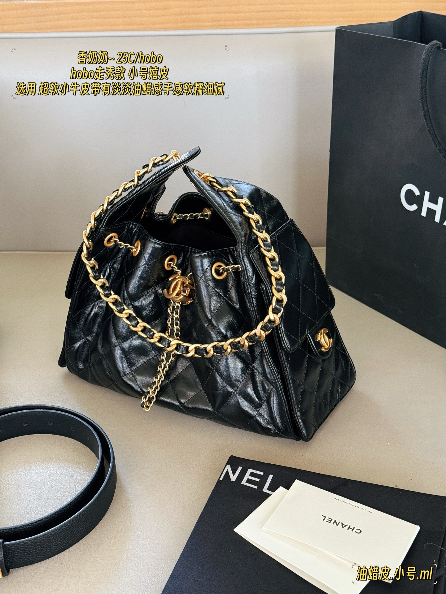 顶级免税版 VIP专柜体验 收到即官网同样 CHANEL香奈儿 25C hobo嬉皮腋下包 酷飒的水桶造型,很复古 包口可调节的抽绳设计很实用,侧面两个小口袋,大小适中,背上身很时髦!