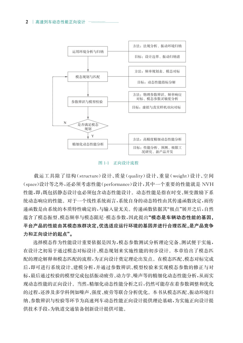 本书为“高速铁路基础研究与技术创新丛书”之分册。本书针对动态性能正向设计体系中的基础理论展开叙述,系统阐述高速列车动态性能正向设计的基础问题,是作者最新研究成果及其应用的总结。正向设计以分析和归纳运用环境、模态族群拣选、模态规划与匹配设计作为出发点,包括模态对标、快速设计、模型校验、模型参数辨识和性能设计与校验等环节,并通过大量试验验证完成产品设计,然后通过在线测试、运营考验和反馈不断优化演进。本书在模态匹配、振动环境归纳、参数辨识、模型校验等环节为高速列车动态性能正向设计奠定理论基础,为实施正向设计提供技术手段,为轨道交通装备创新设计提供可能路径。